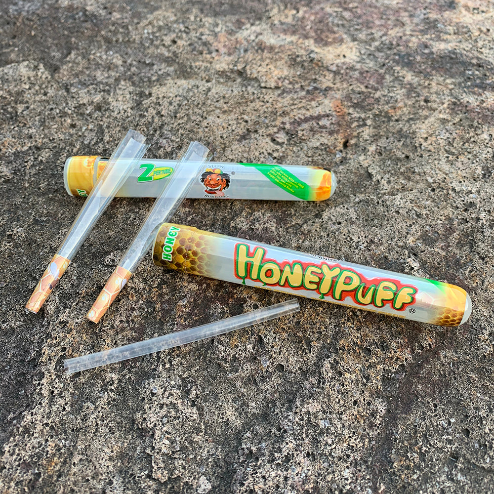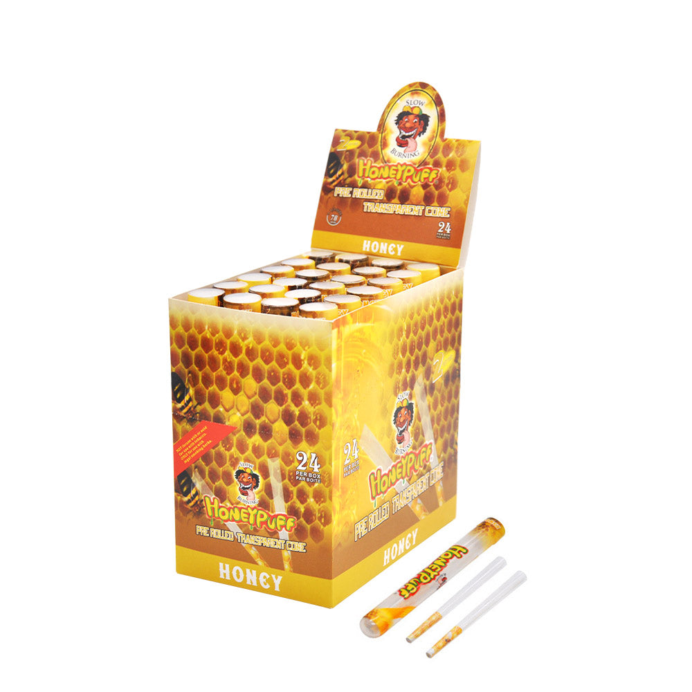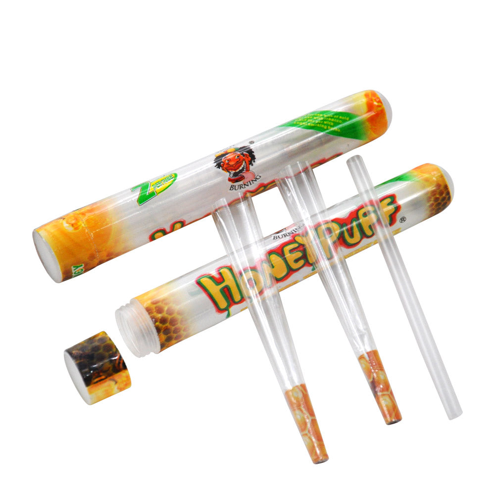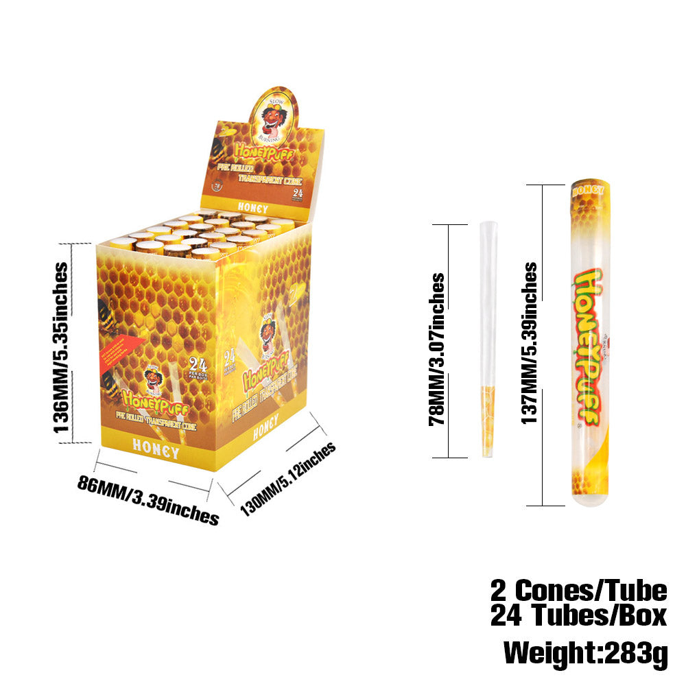HONEYPUFF Vorgerollte Tüten mit Honiggeschmack, durchsichtige Zigarettenpapiere, vorgerollte Zigarettenpapiere der Größe 1 1/4 mit Tips, 2 Stück pro Tube