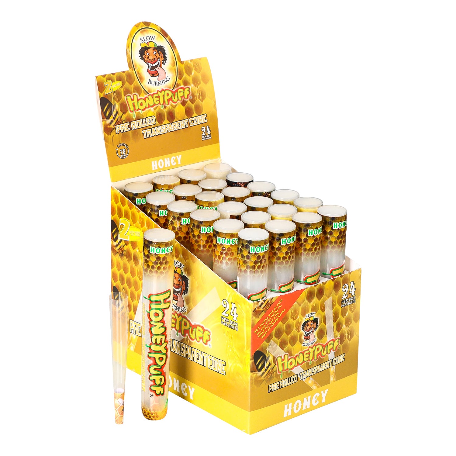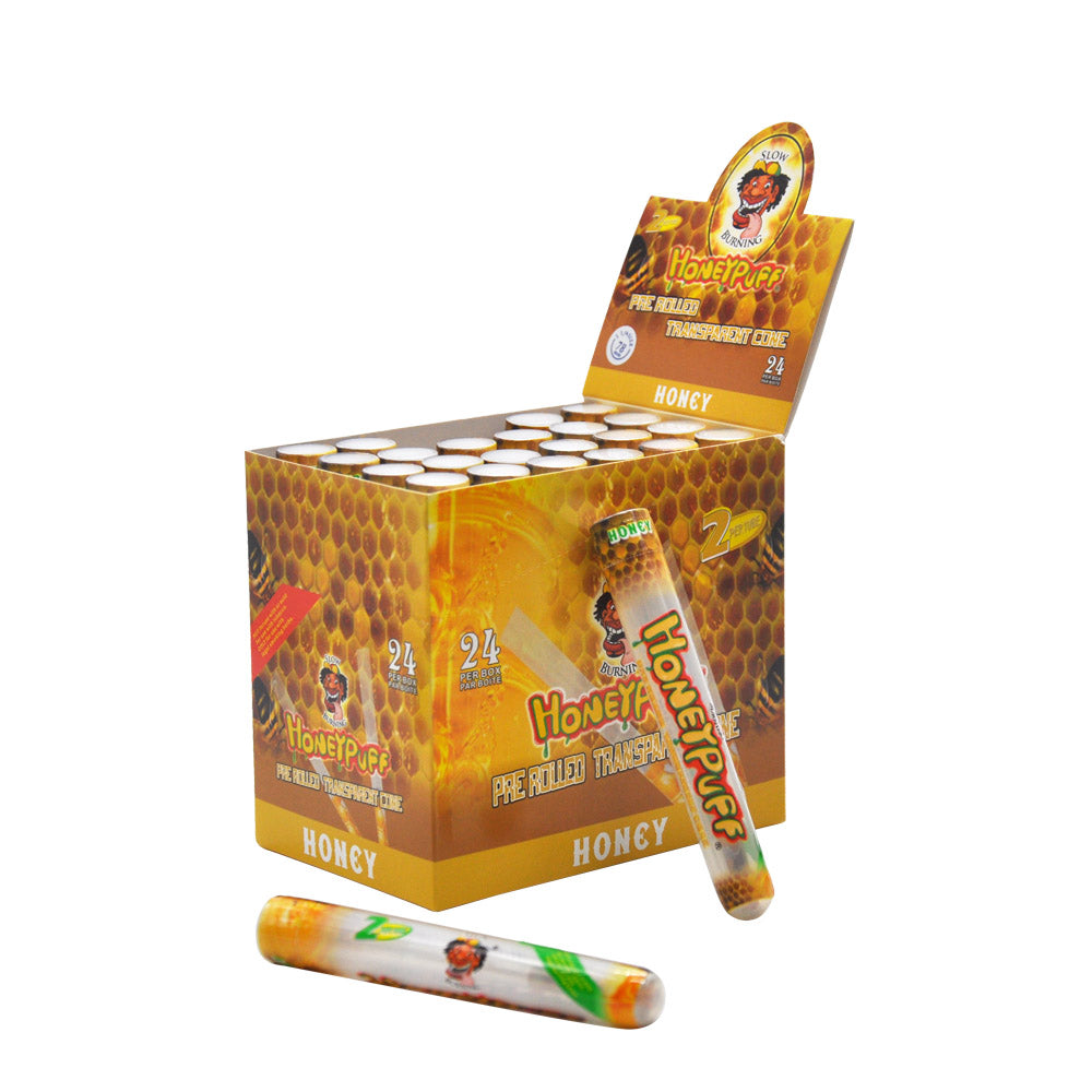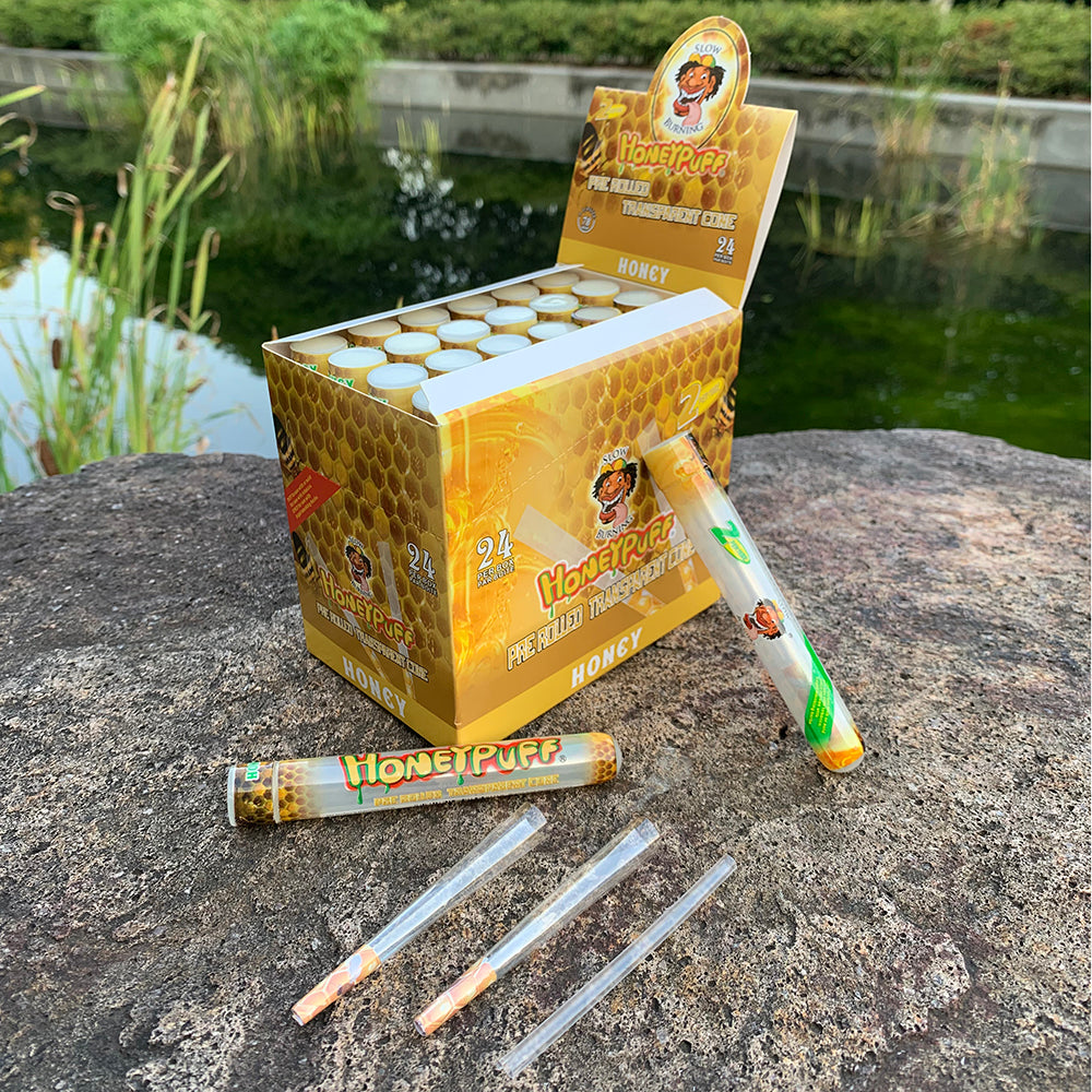 HONEYPUFF Vorgerollte Tüten mit Honiggeschmack, durchsichtige Zigarettenpapiere, vorgerollte Zigarettenpapiere der Größe 1 1/4 mit Tips, 2 Stück pro Tube