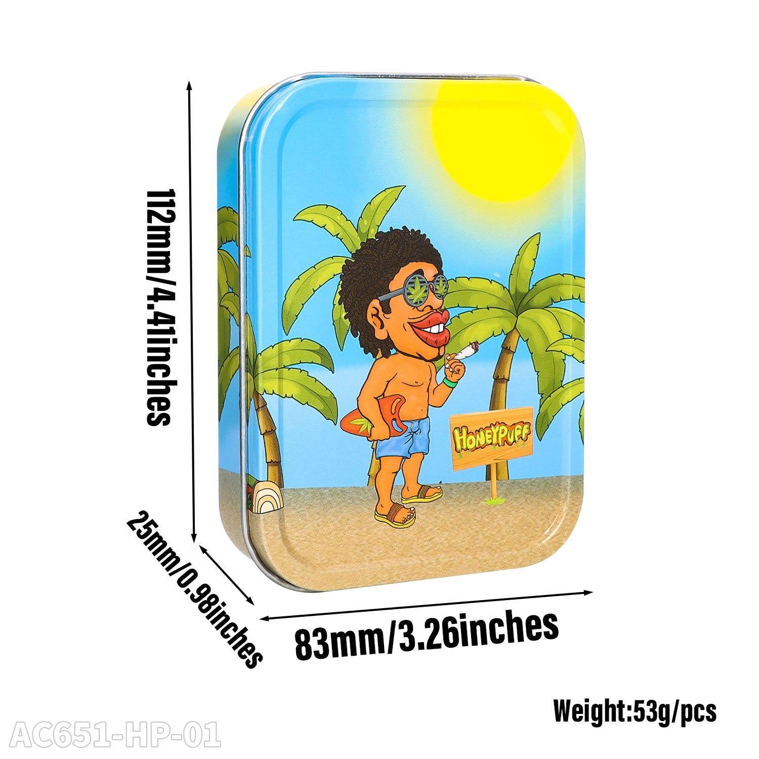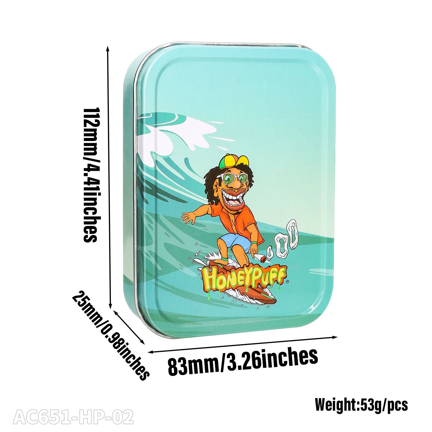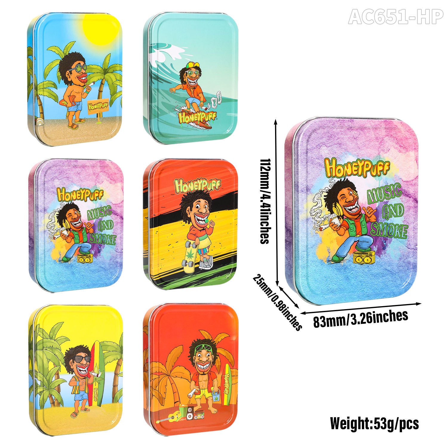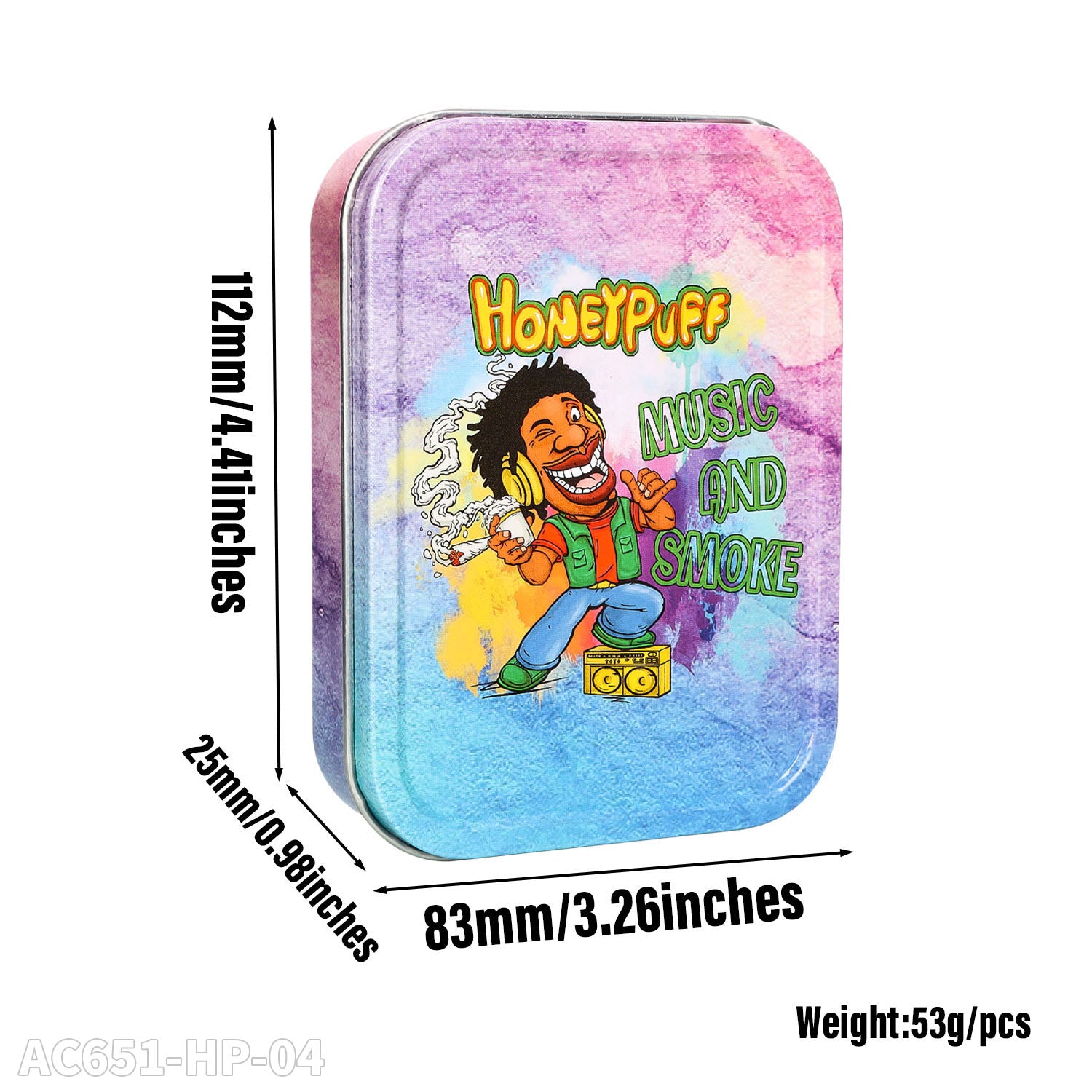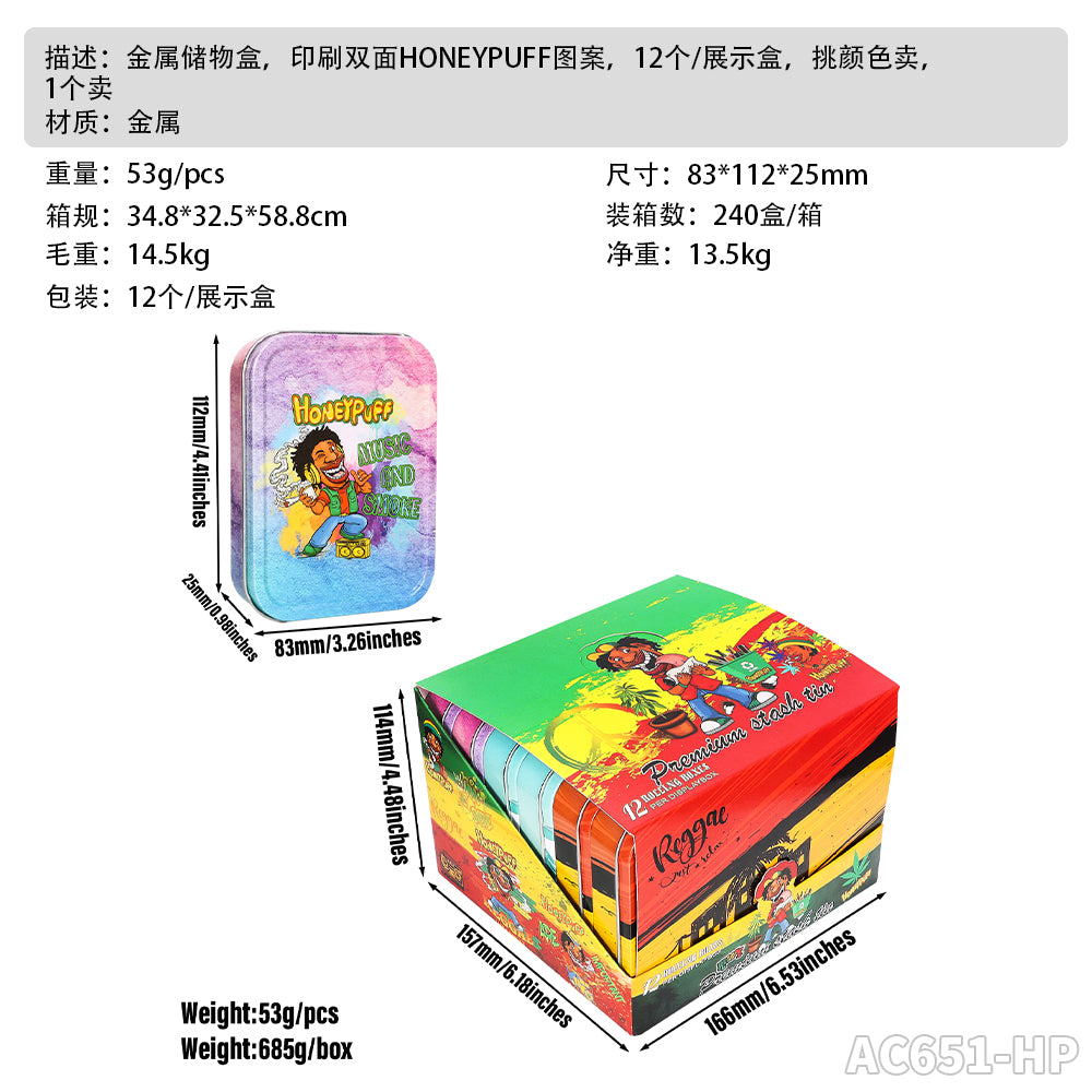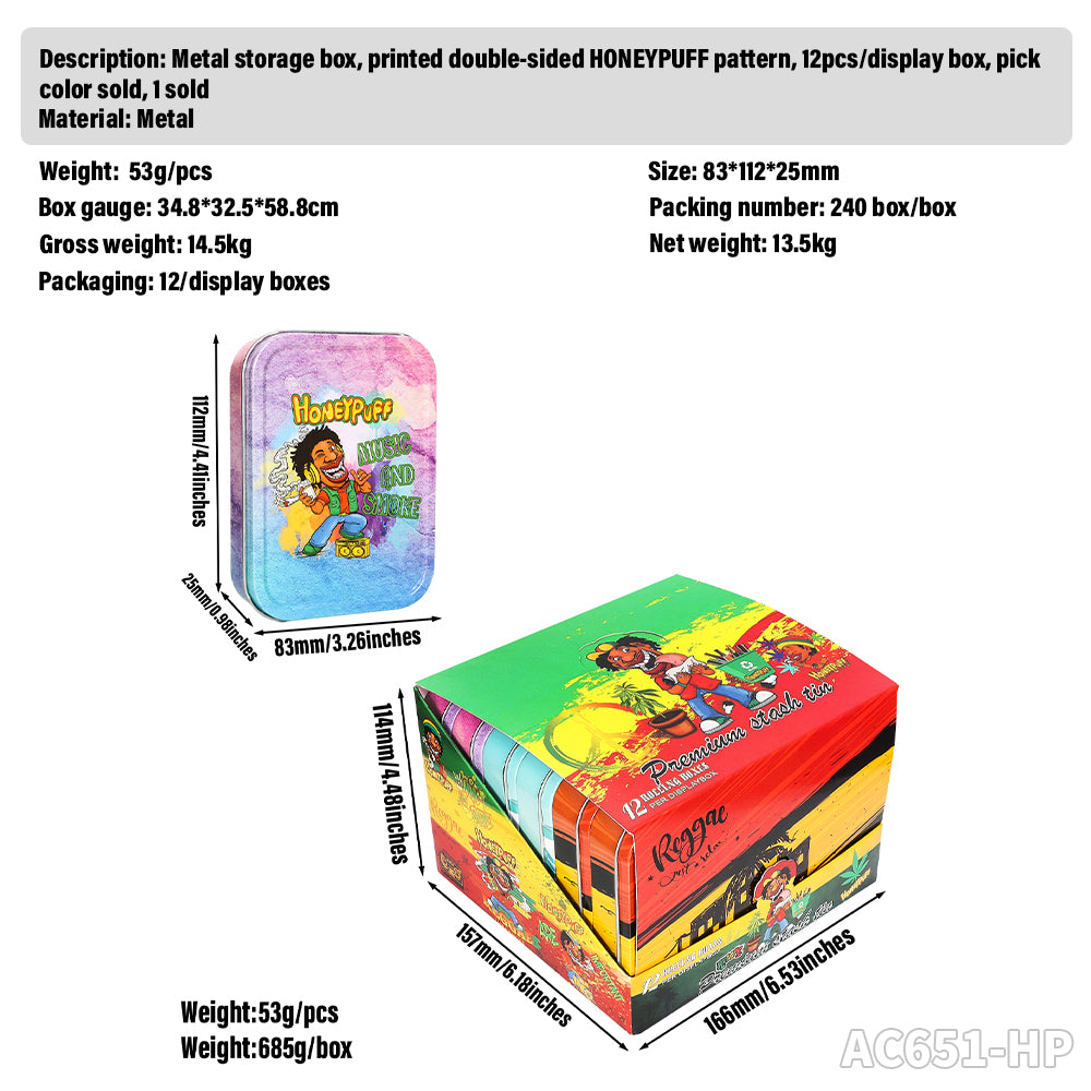 Honeypuff 102 x 83 mm tragbarer Weißblech-Tabak aus Metall, mehrfarbige Kräuterbox, Zigarettenzubehör