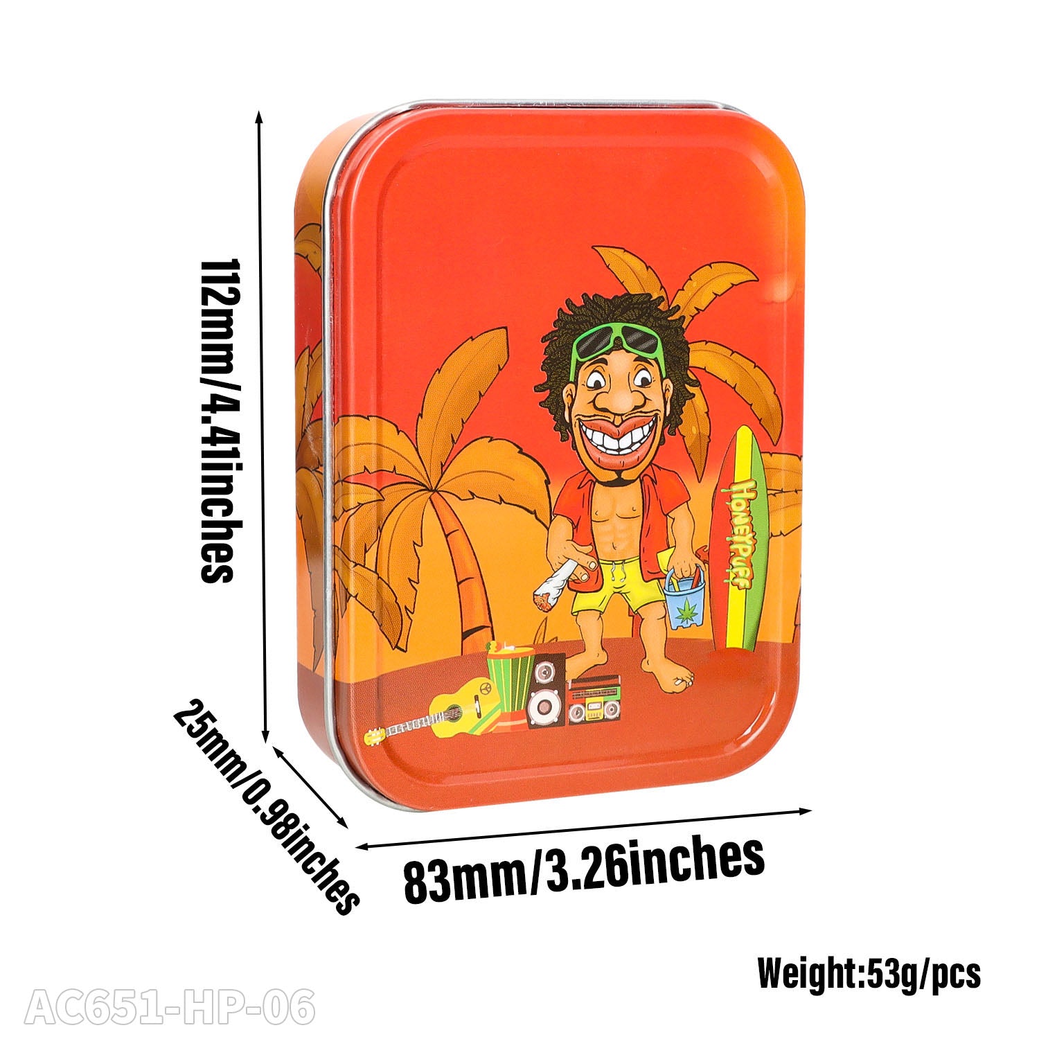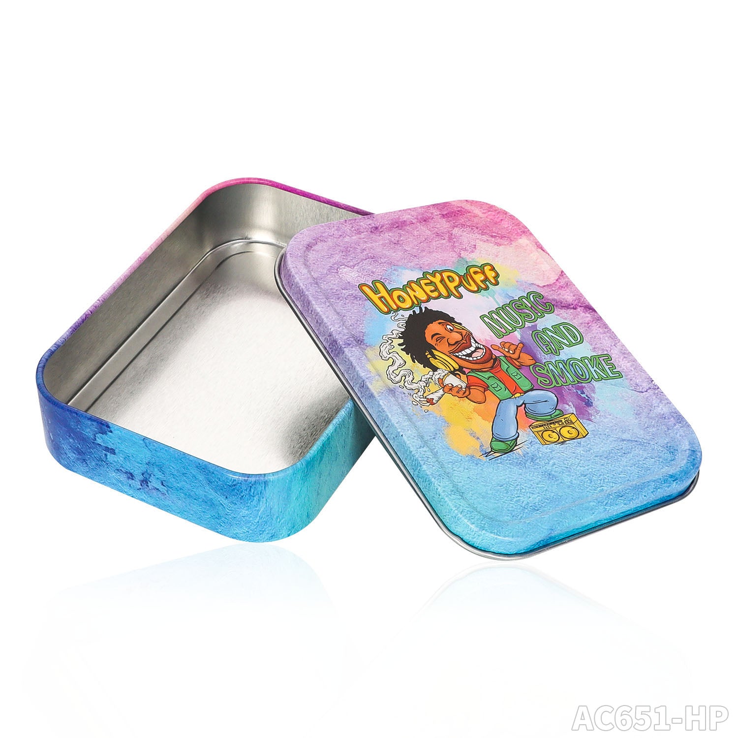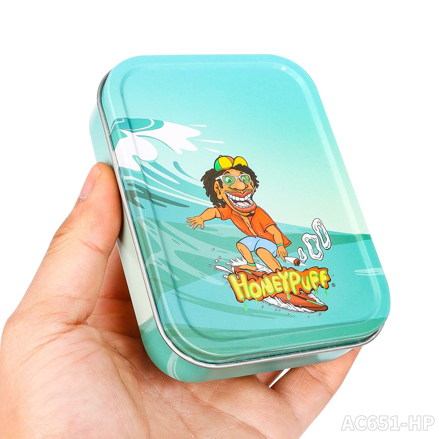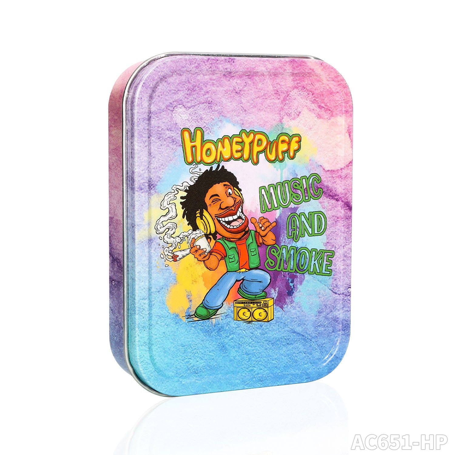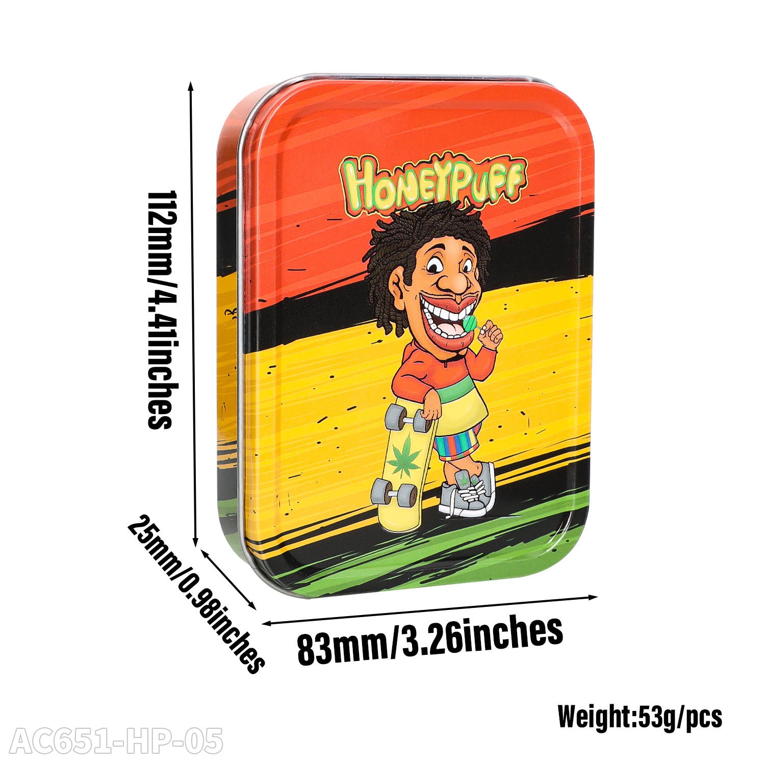 Honeypuff 102 x 83 mm tragbarer Weißblech-Tabak aus Metall, mehrfarbige Kräuterbox, Zigarettenzubehör