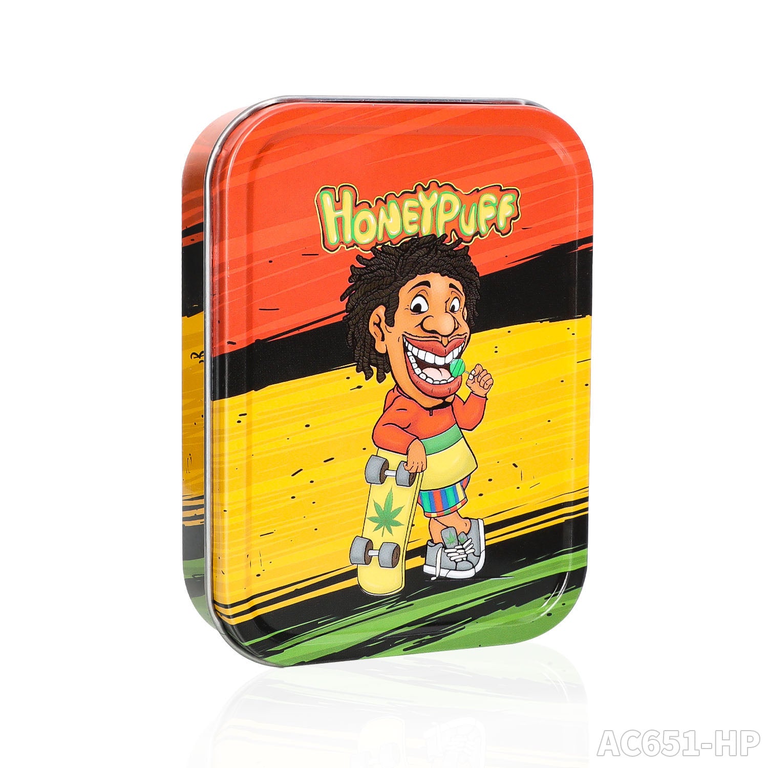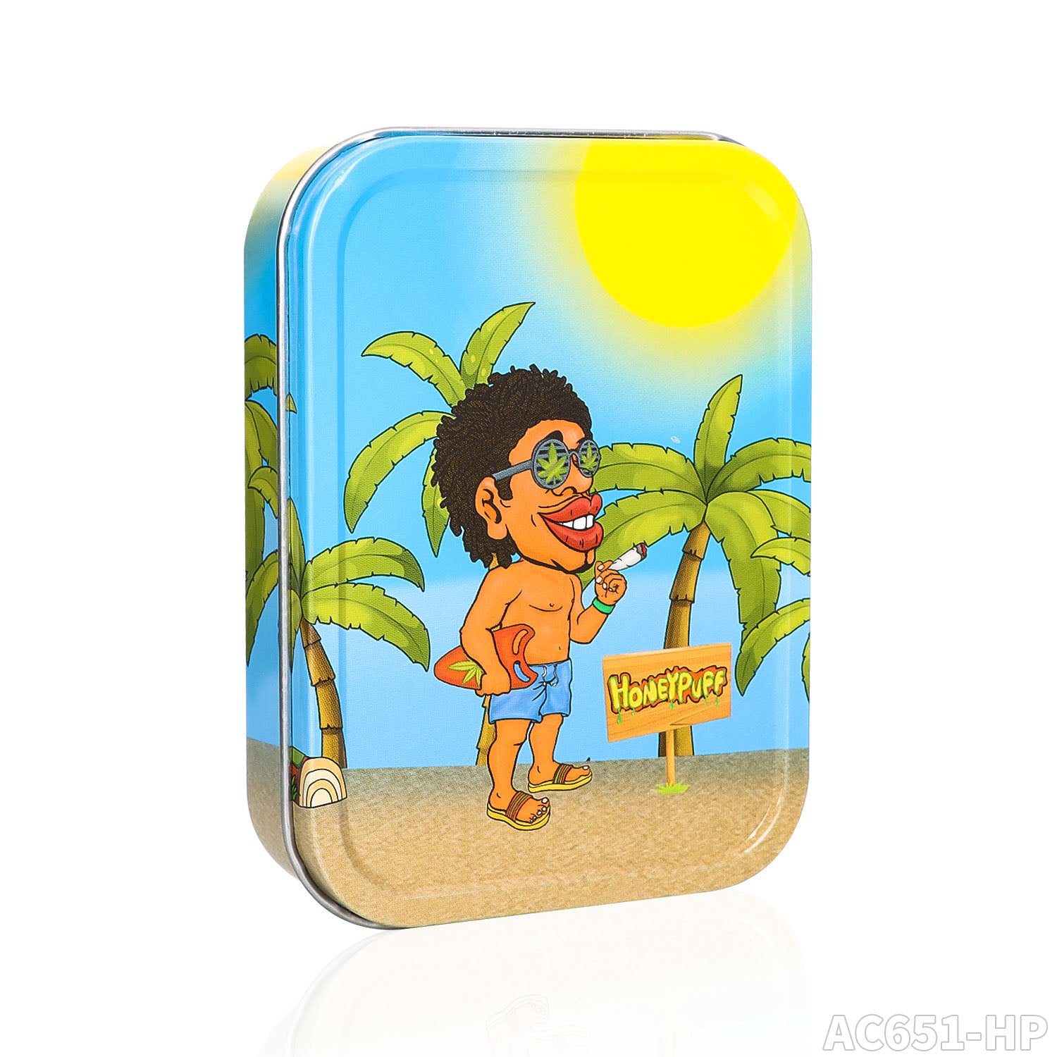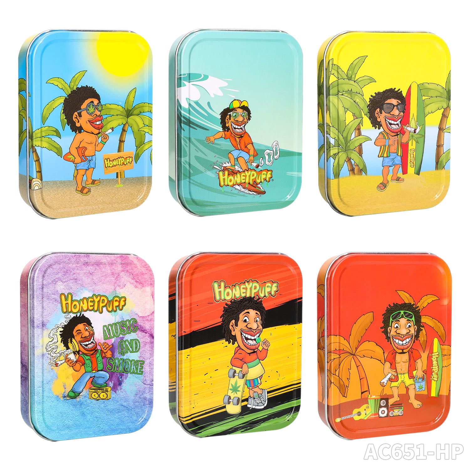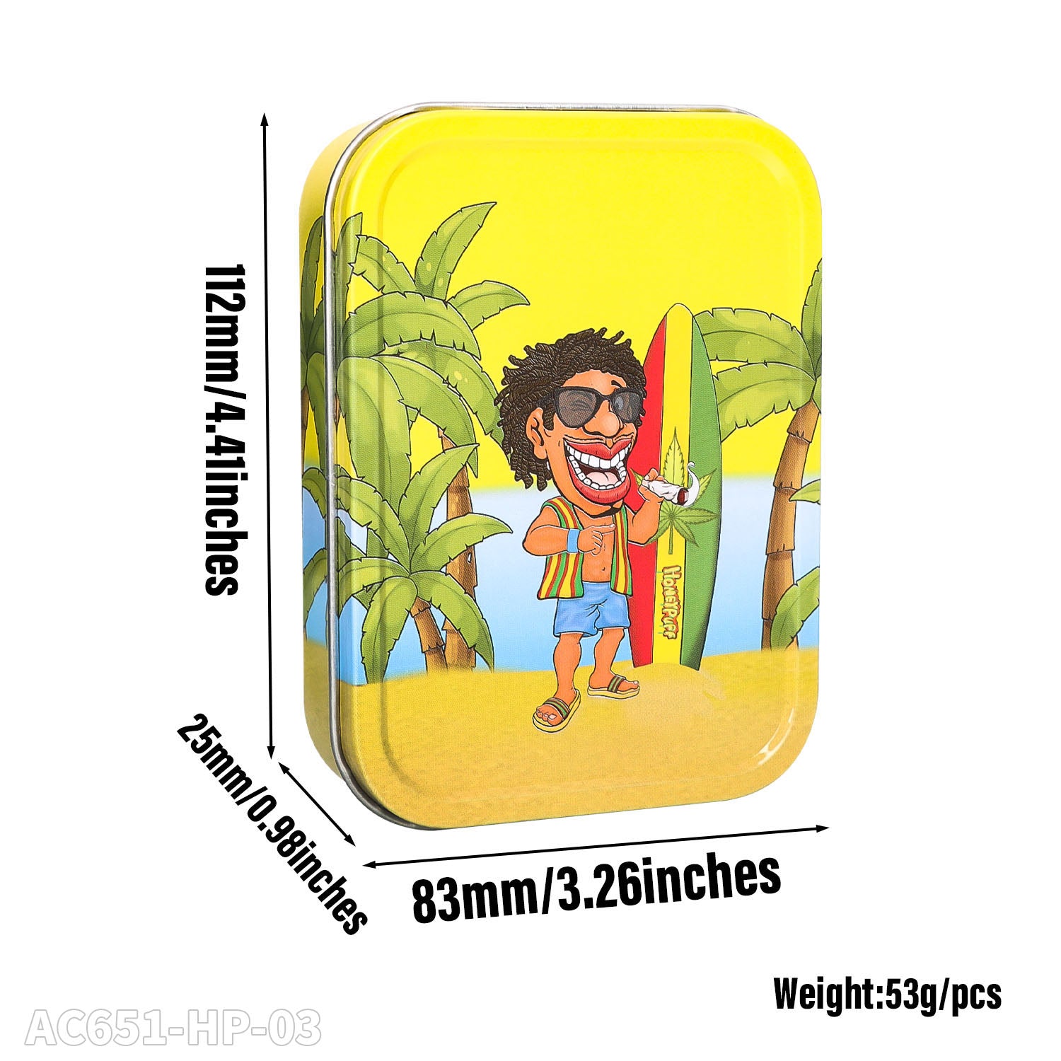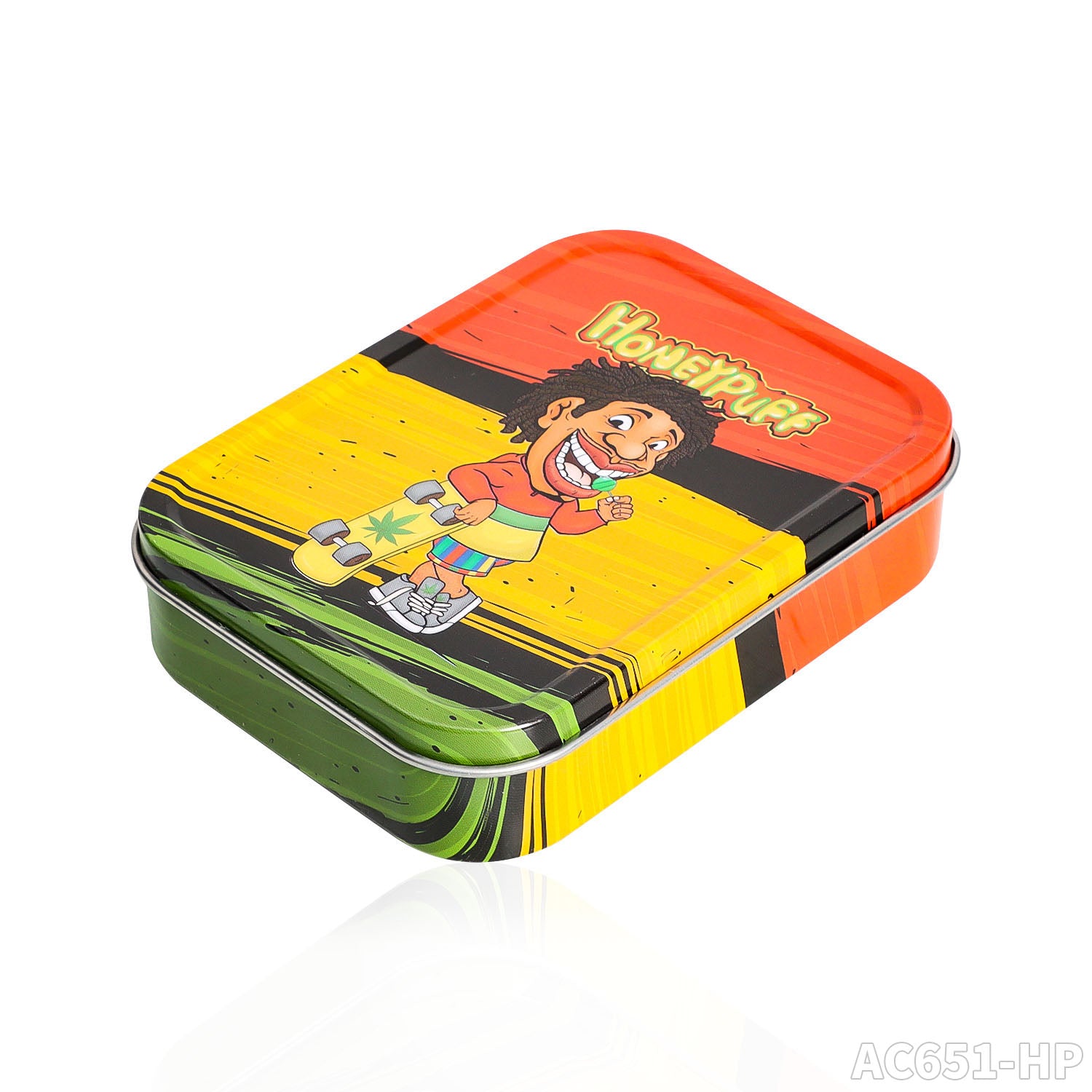 Honeypuff 102 x 83 mm tragbarer Weißblech-Tabak aus Metall, mehrfarbige Kräuterbox, Zigarettenzubehör