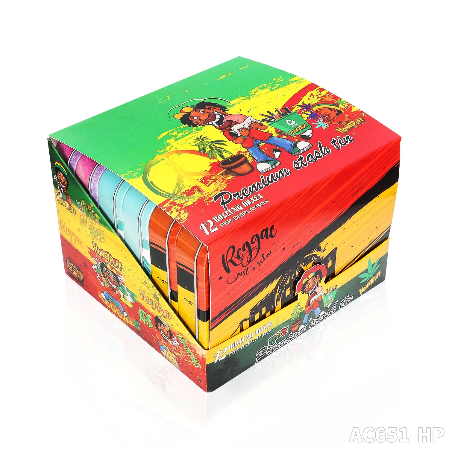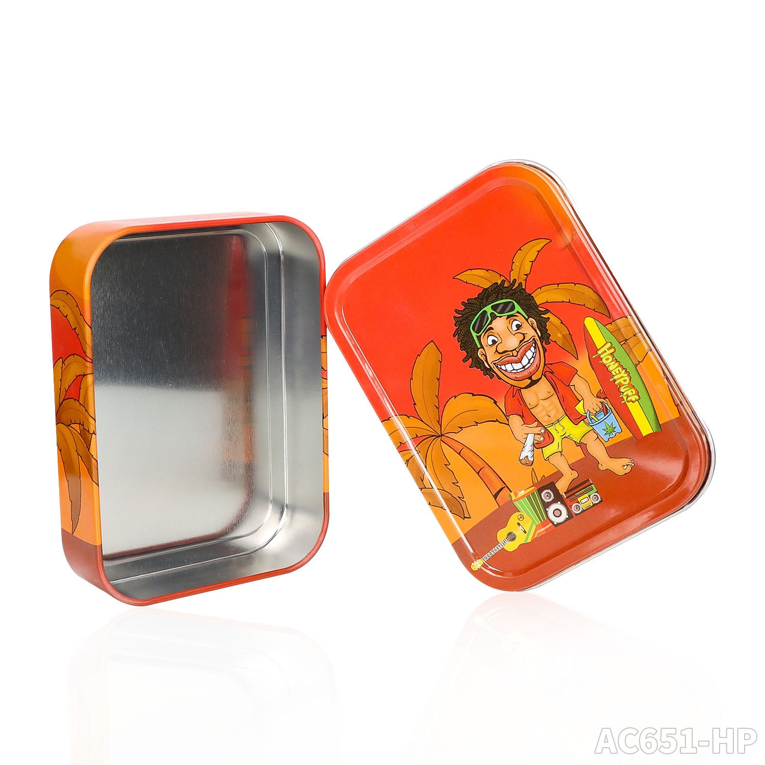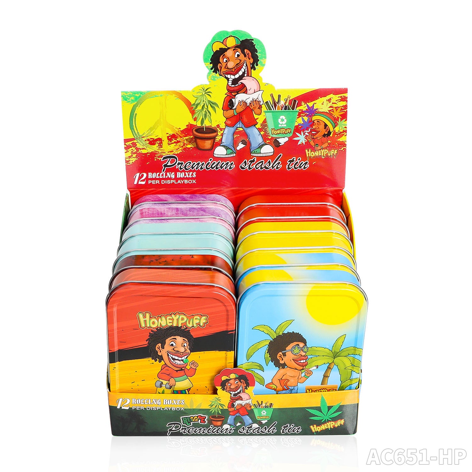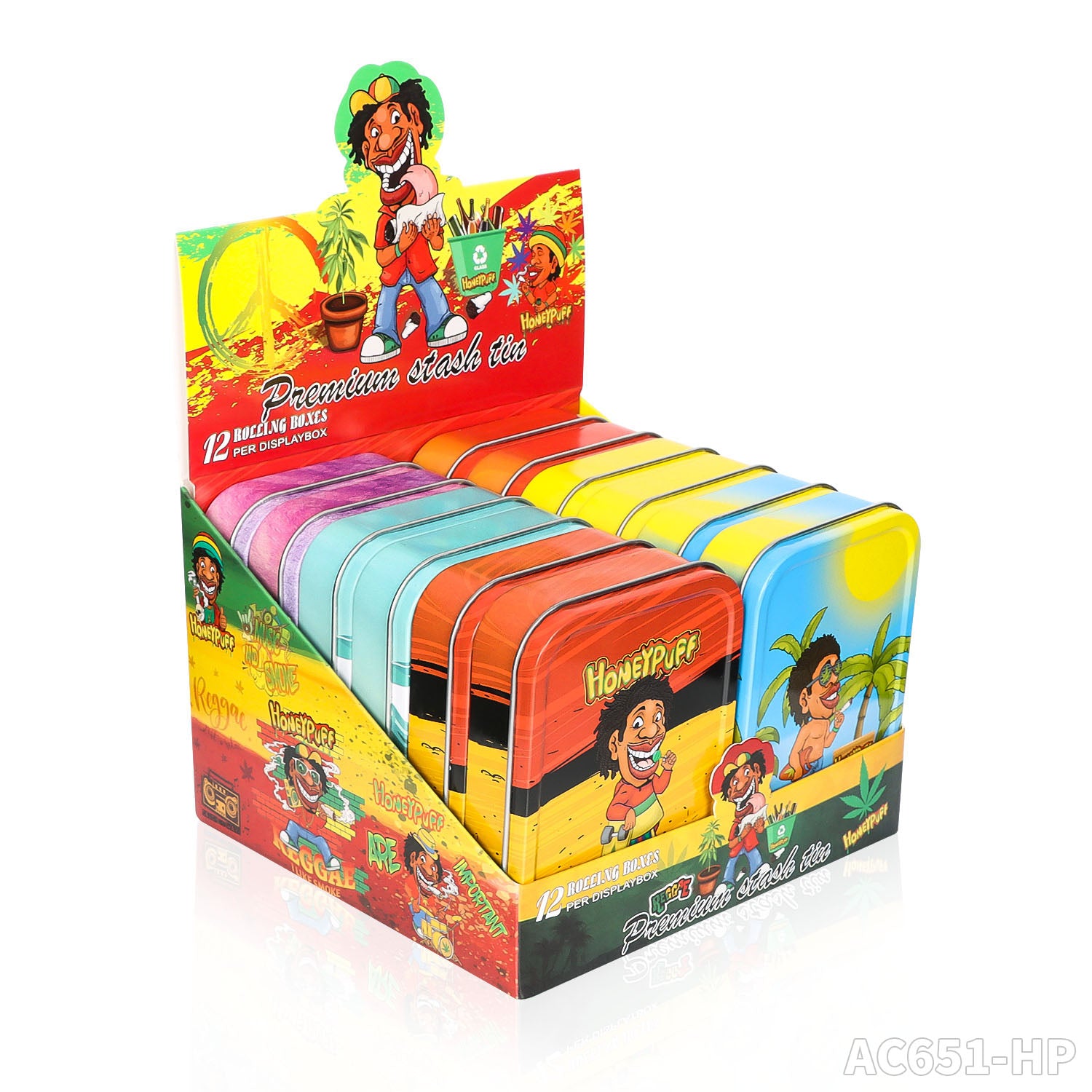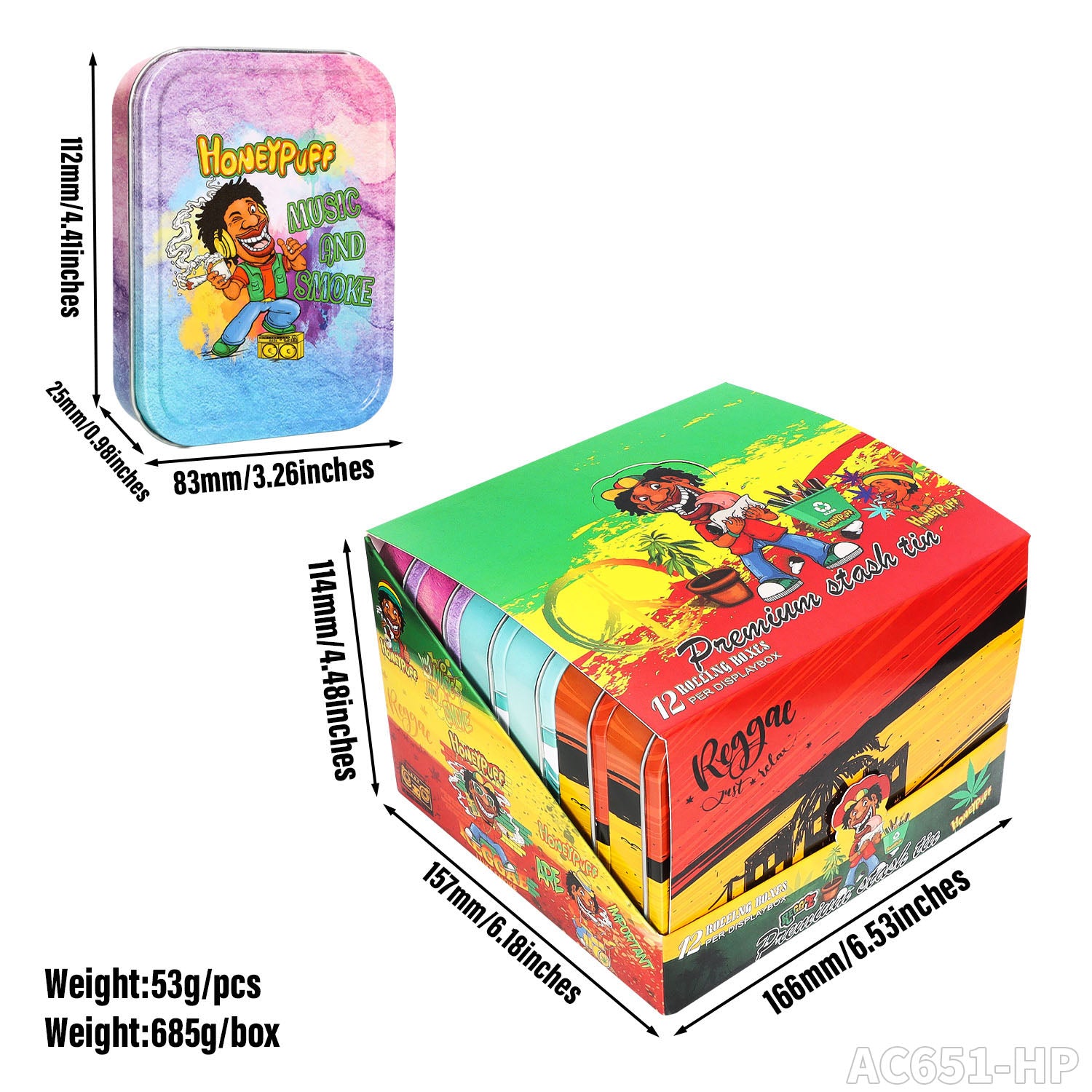 Honeypuff 102 x 83 mm tragbarer Weißblech-Tabak aus Metall, mehrfarbige Kräuterbox, Zigarettenzubehör