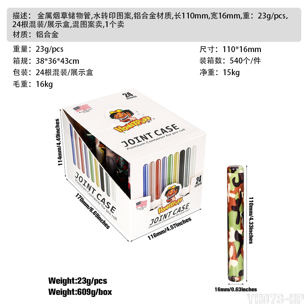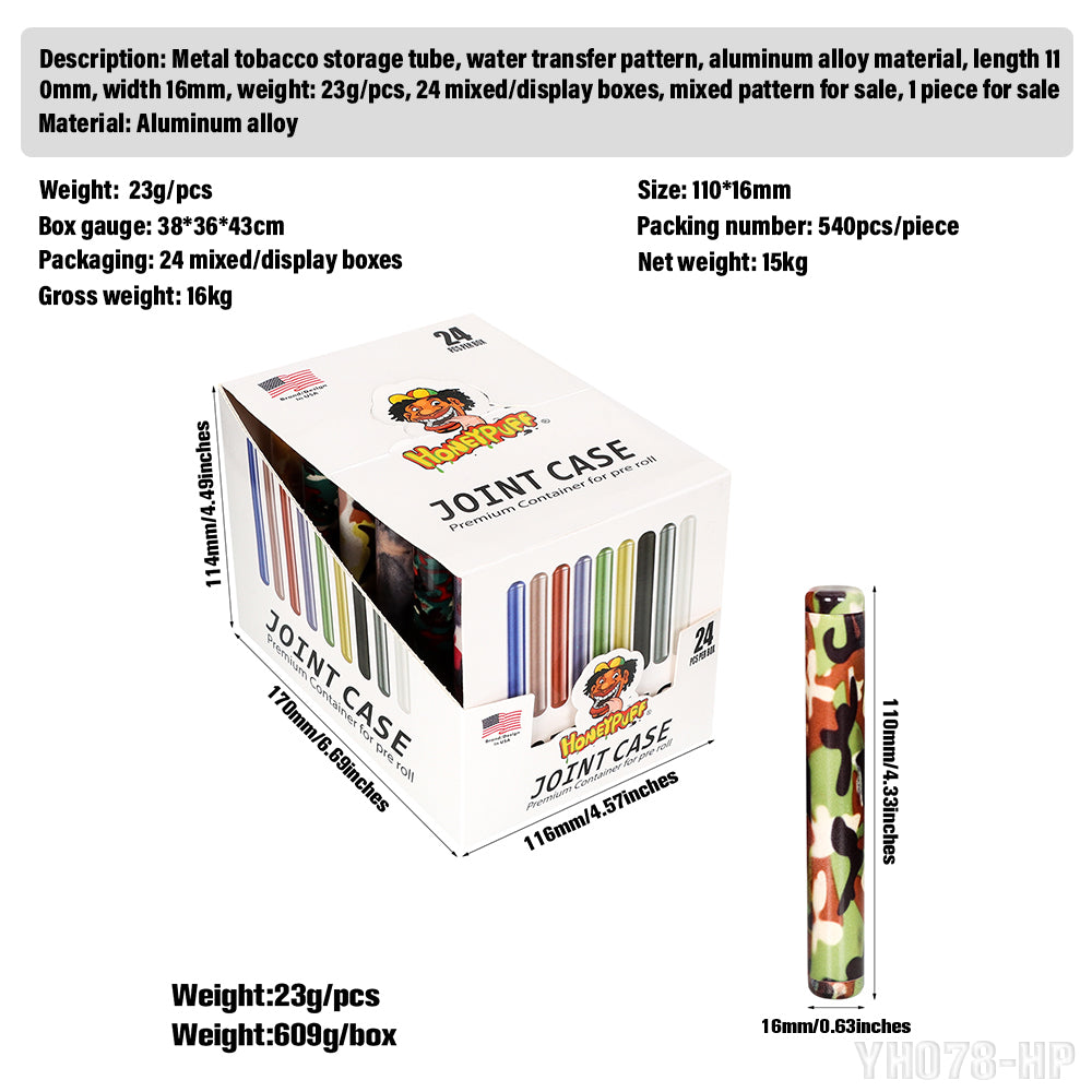 HONEYPUFF 110 mm Jointhalter aus Aluminiumlegierung, geruchsdichter Zigarettenhalter, 24 Stück/Box
