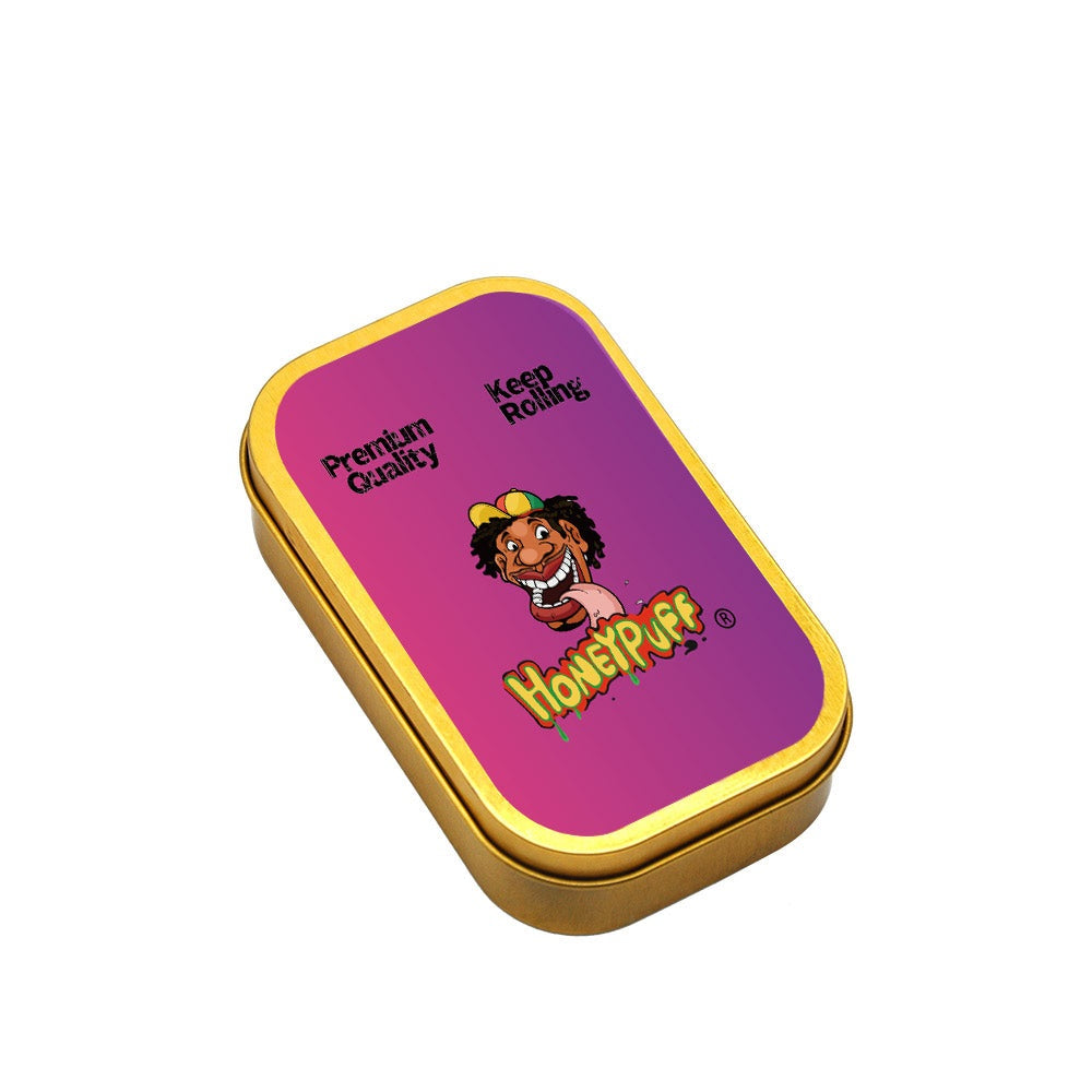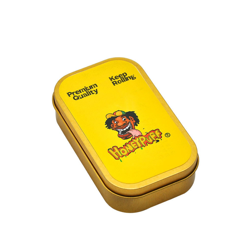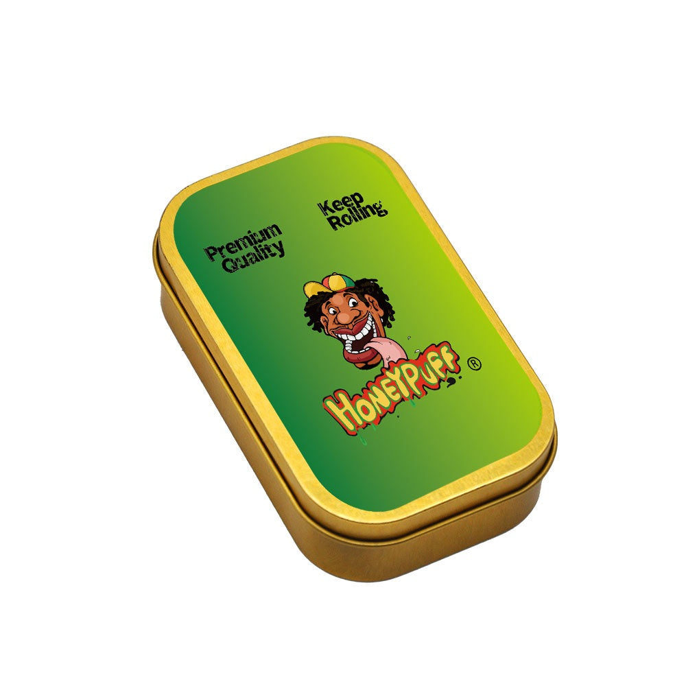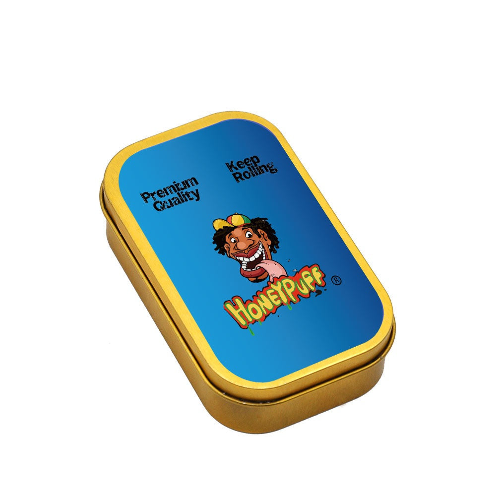 HONEYPUFF 97 x 56 mm Tabak-Metalldose, goldfarbenes Metall-Kräuteretui, tragbare Metalldose