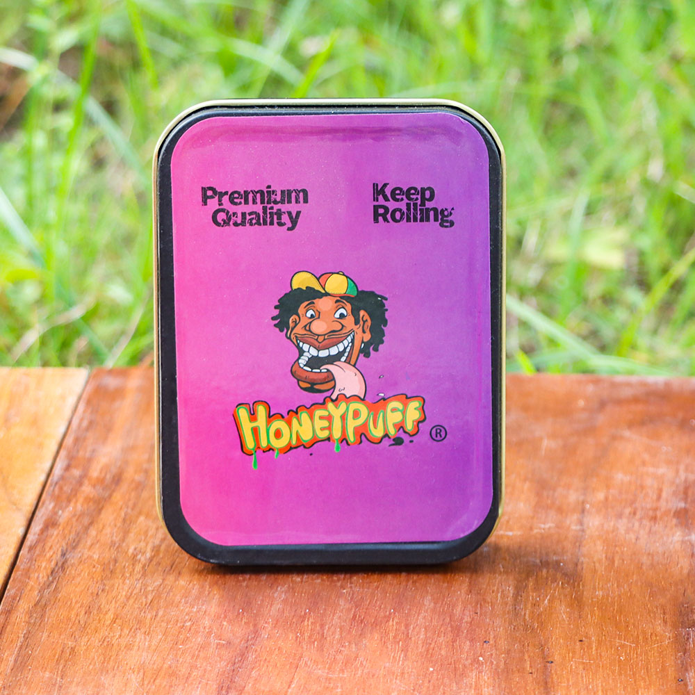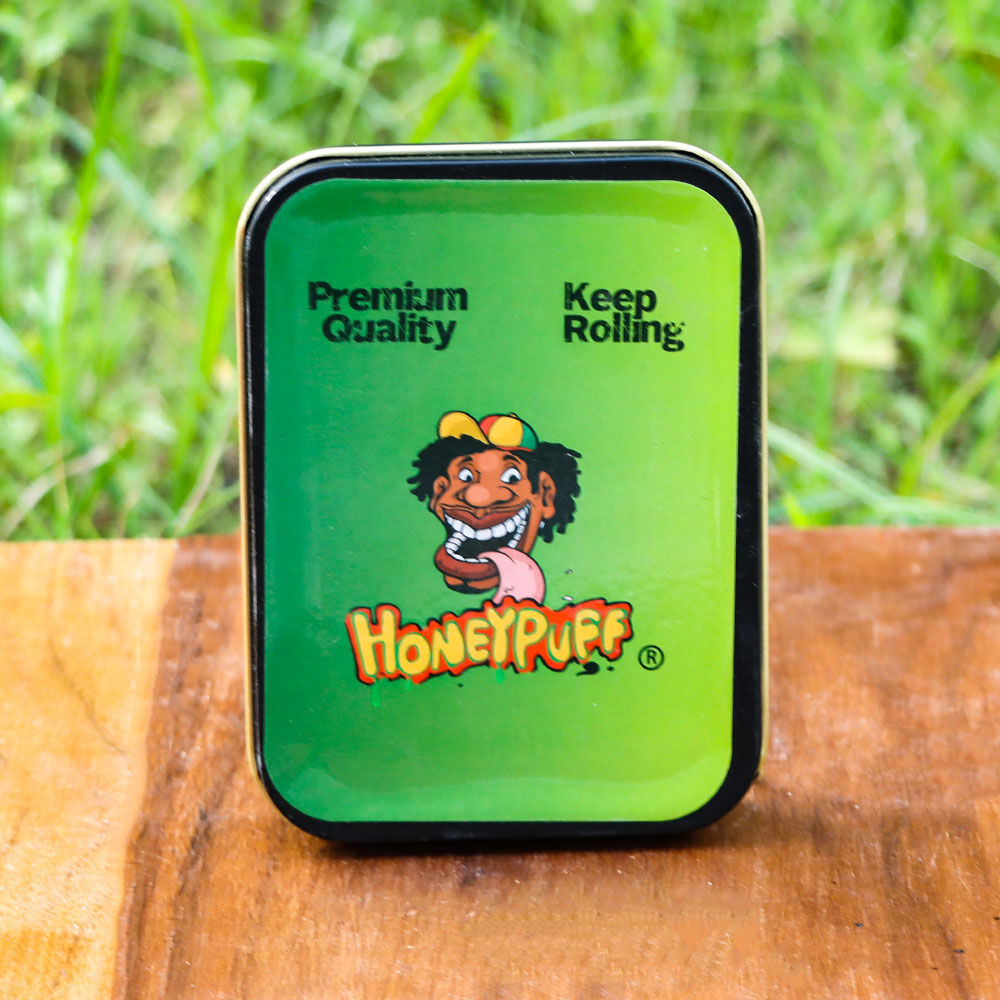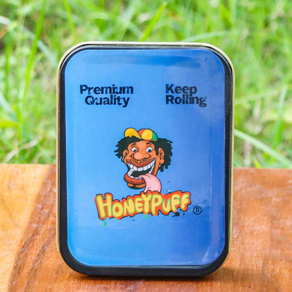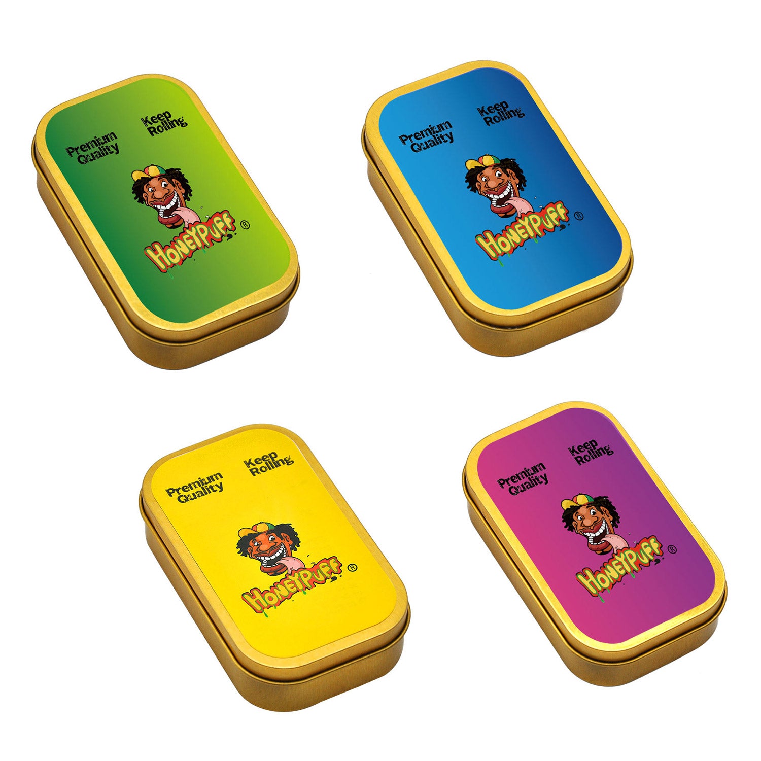 HONEYPUFF 97 x 56 mm Tabak-Metalldose, goldfarbenes Metall-Kräuteretui, tragbare Metalldose