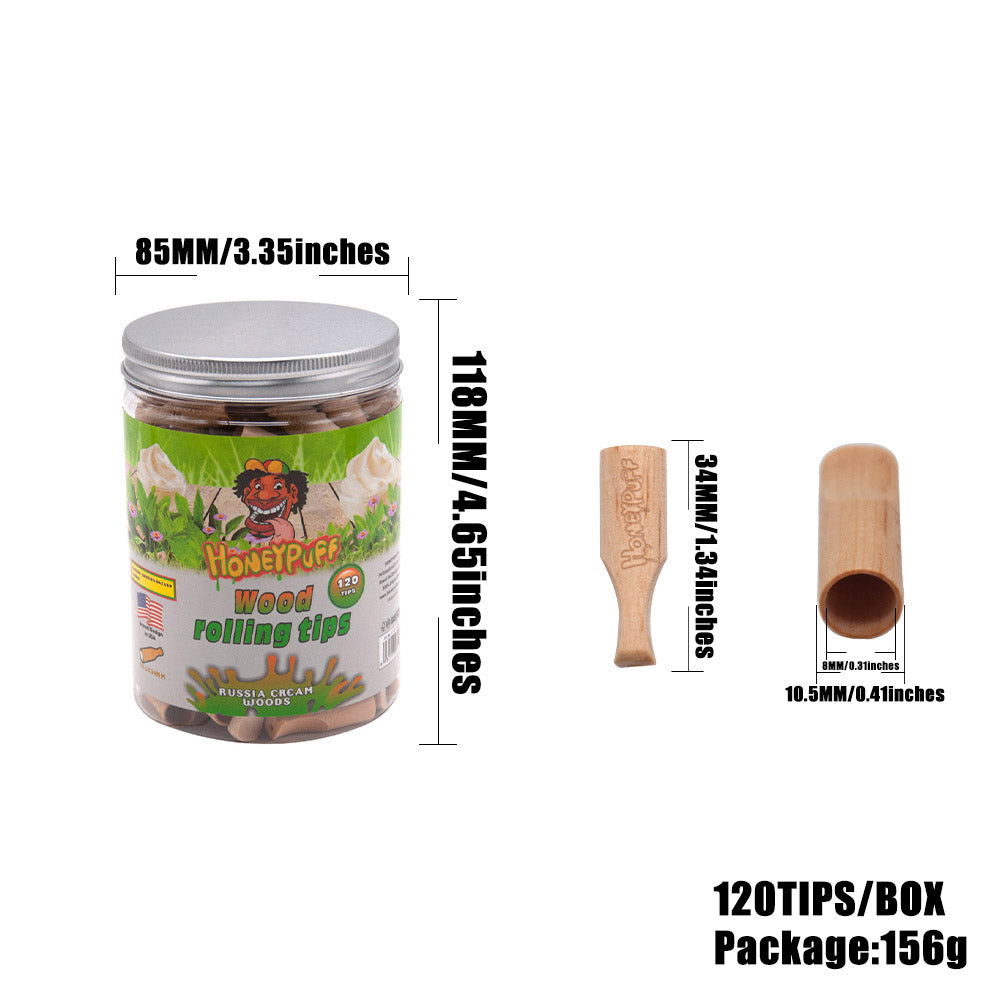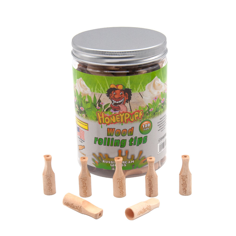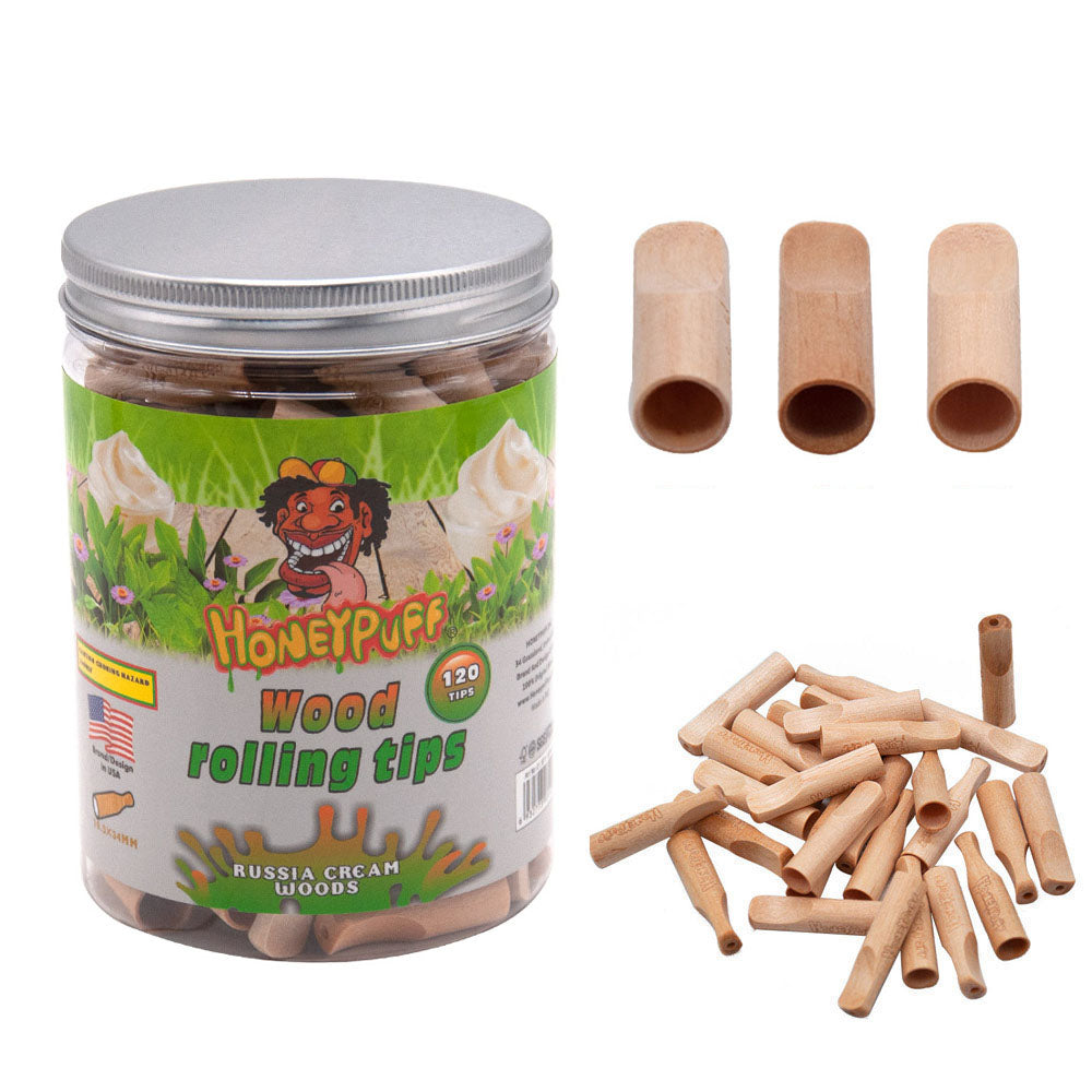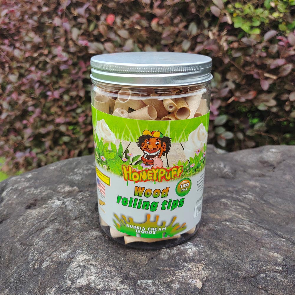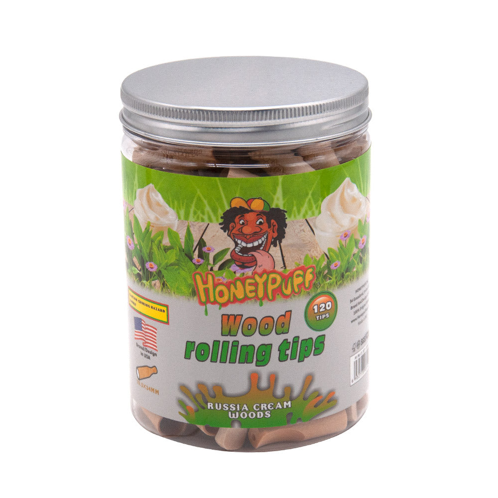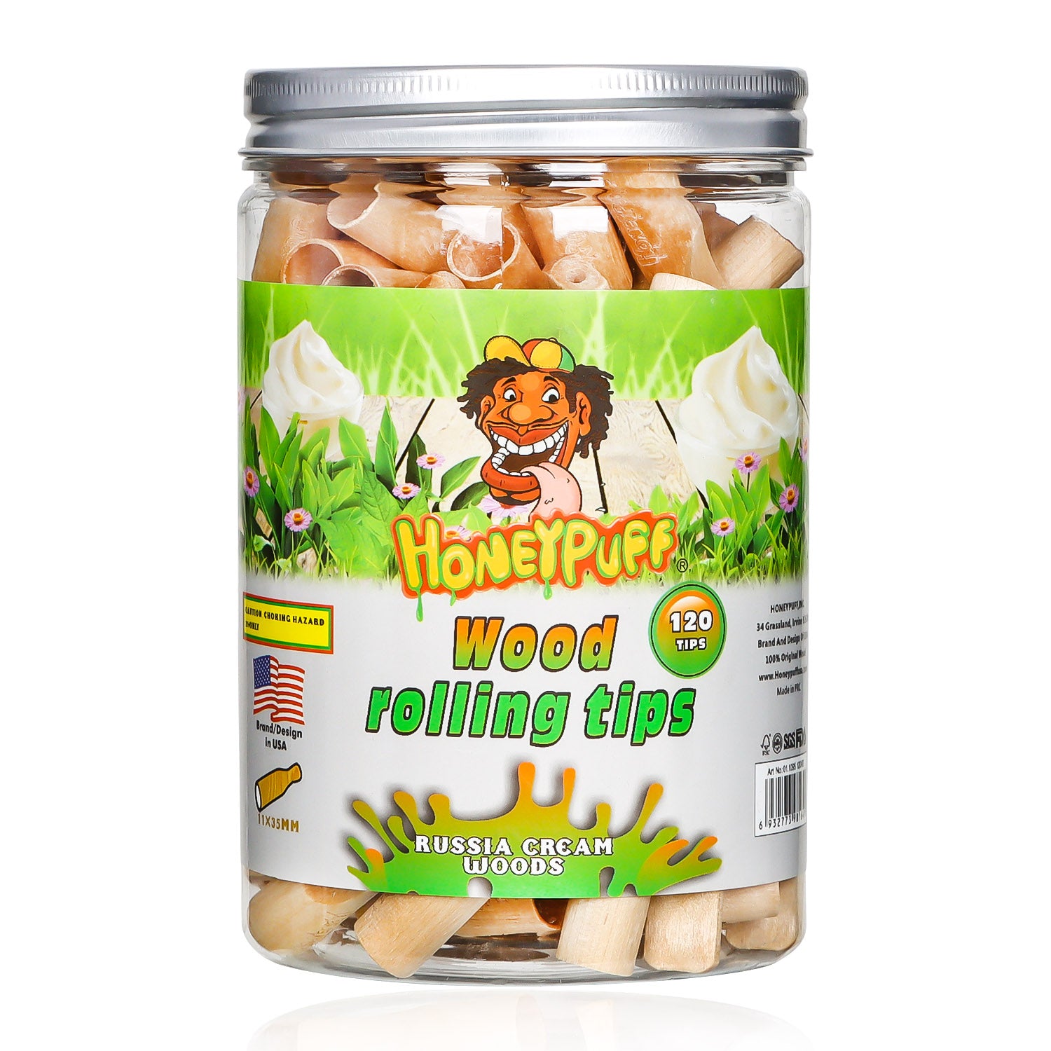 HONEYPUFF Russia Cream aromatisierte Holzfiltertips zum Rollen, 34 mm Zigarettenspitze, 120 Tips/Glas