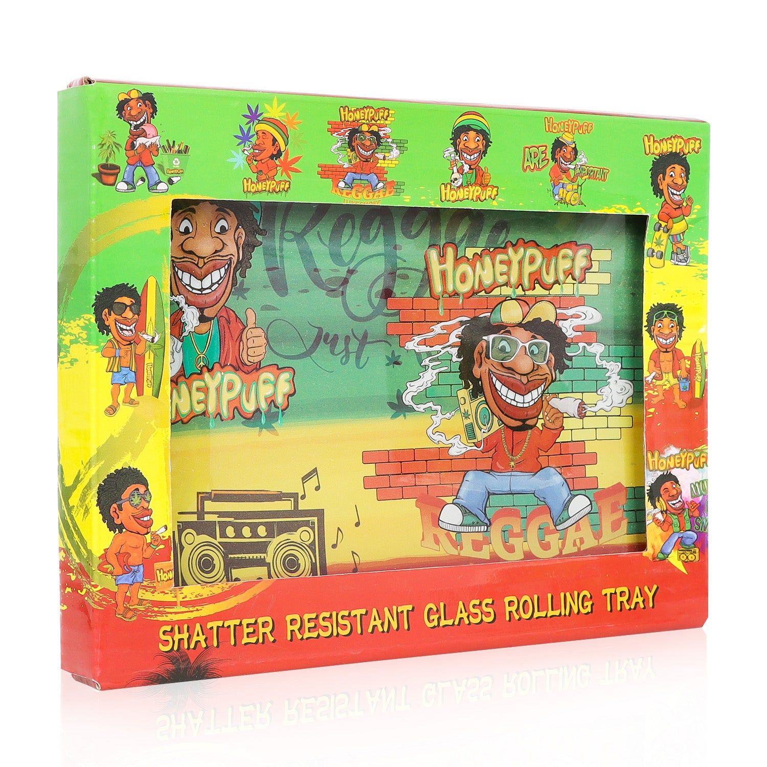 HONEYPUFF Glas-Rolltablett, bruchsicheres Zigaretten-Rolltablett, Zigarettenpapier-Tablett im Rasta-Stil, Zigaretten-Rolltablett in den Größen 6,3 x 4,7 Zoll