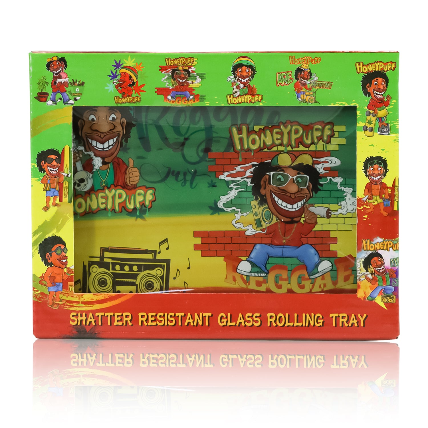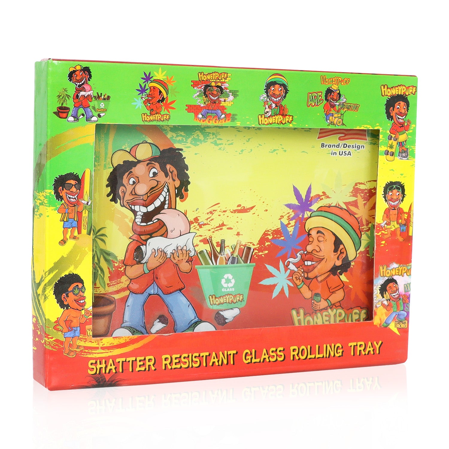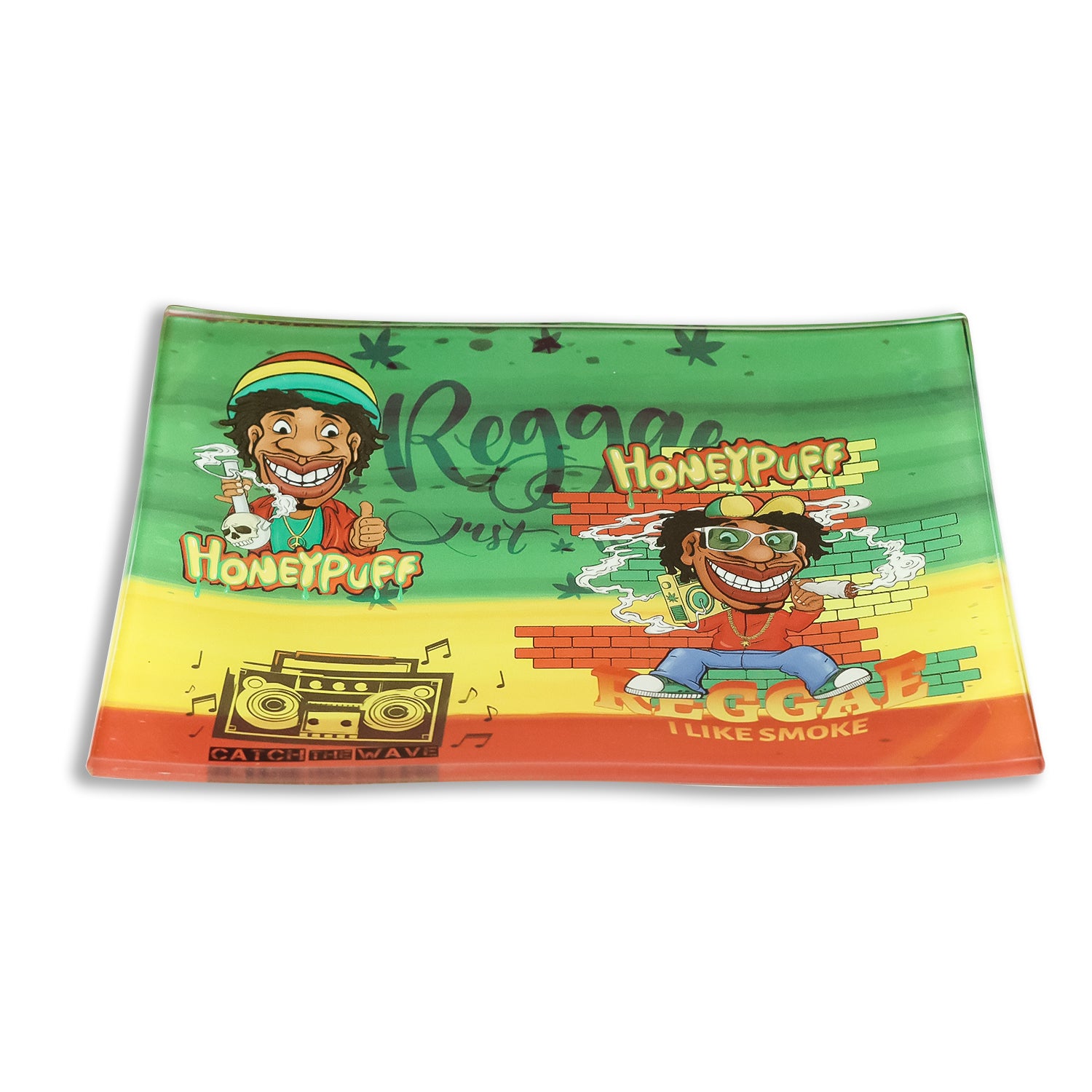 HONEYPUFF Glas-Rolltablett, bruchsicheres Zigaretten-Rolltablett, Zigarettenpapier-Tablett im Rasta-Stil, Zigaretten-Rolltablett in den Größen 6,3 x 4,7 Zoll
