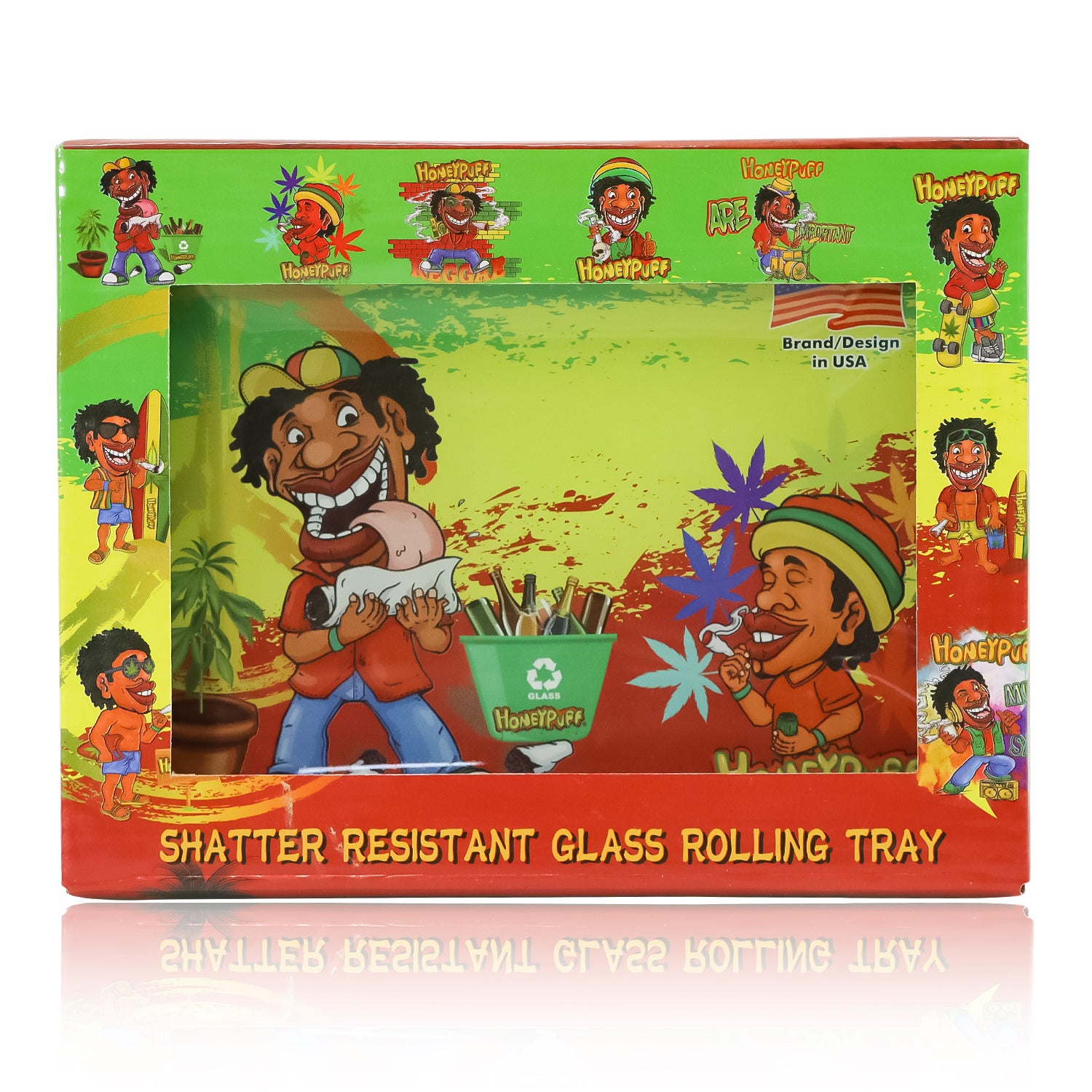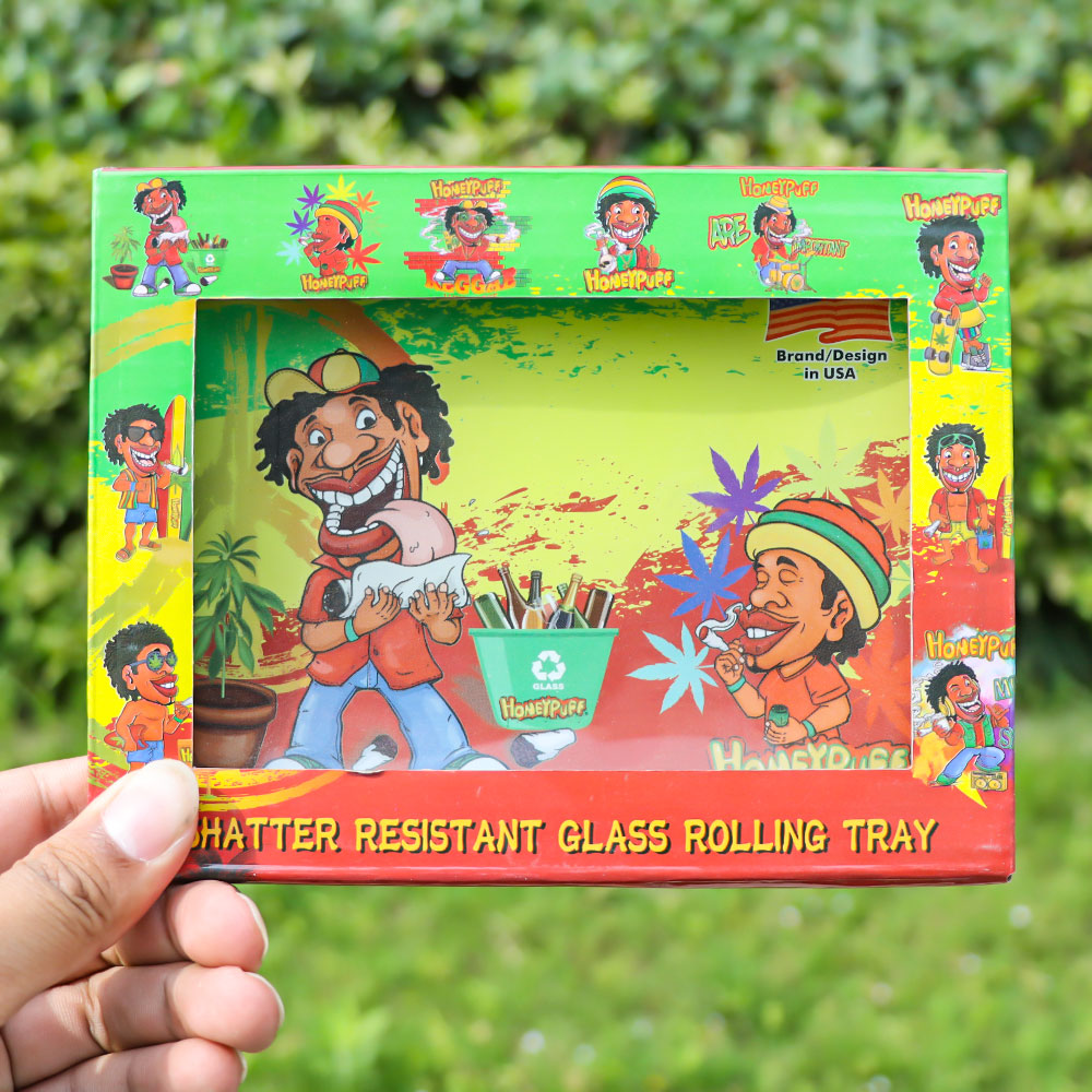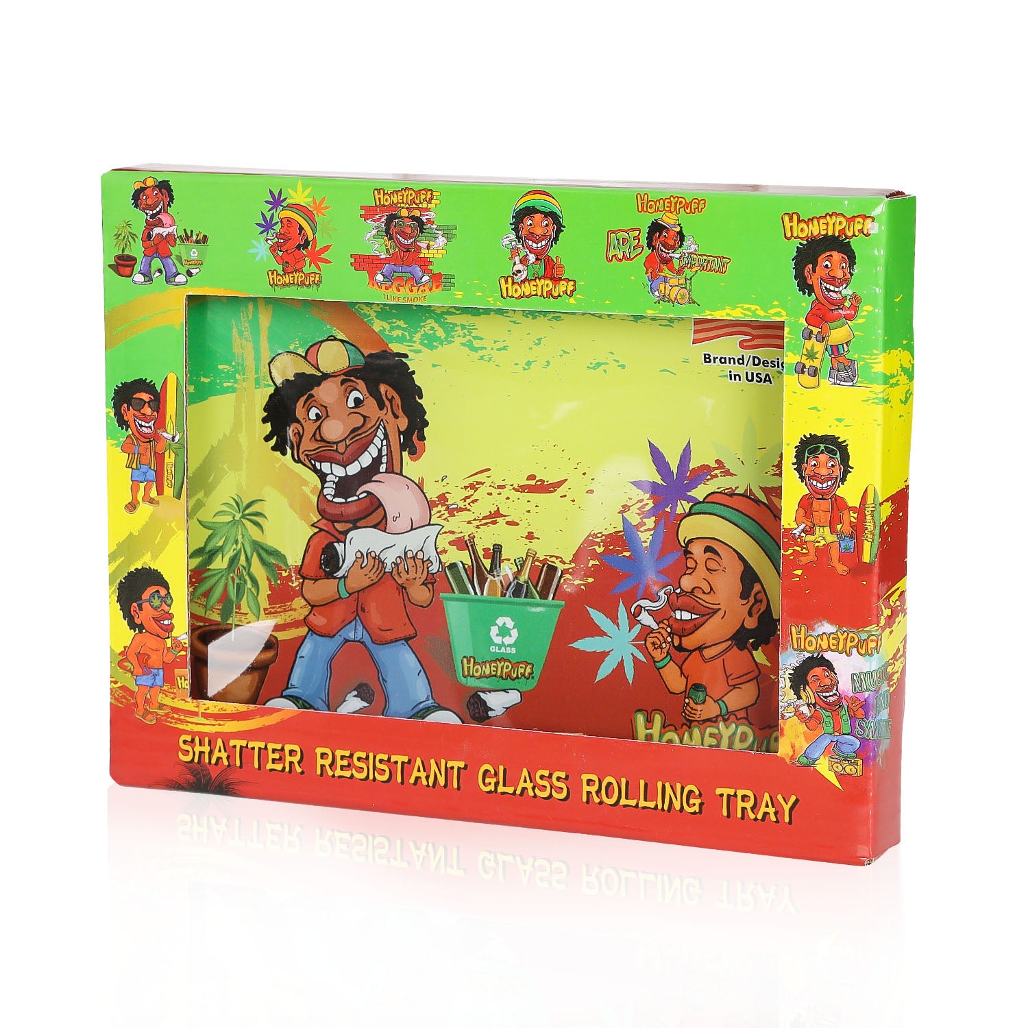 HONEYPUFF Glas-Rolltablett, bruchsicheres Zigaretten-Rolltablett, Zigarettenpapier-Tablett im Rasta-Stil, Zigaretten-Rolltablett in den Größen 6,3 x 4,7 Zoll