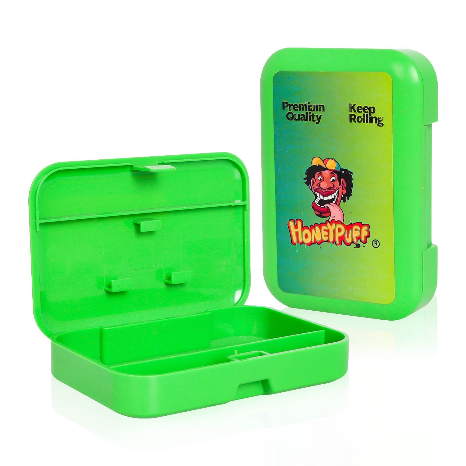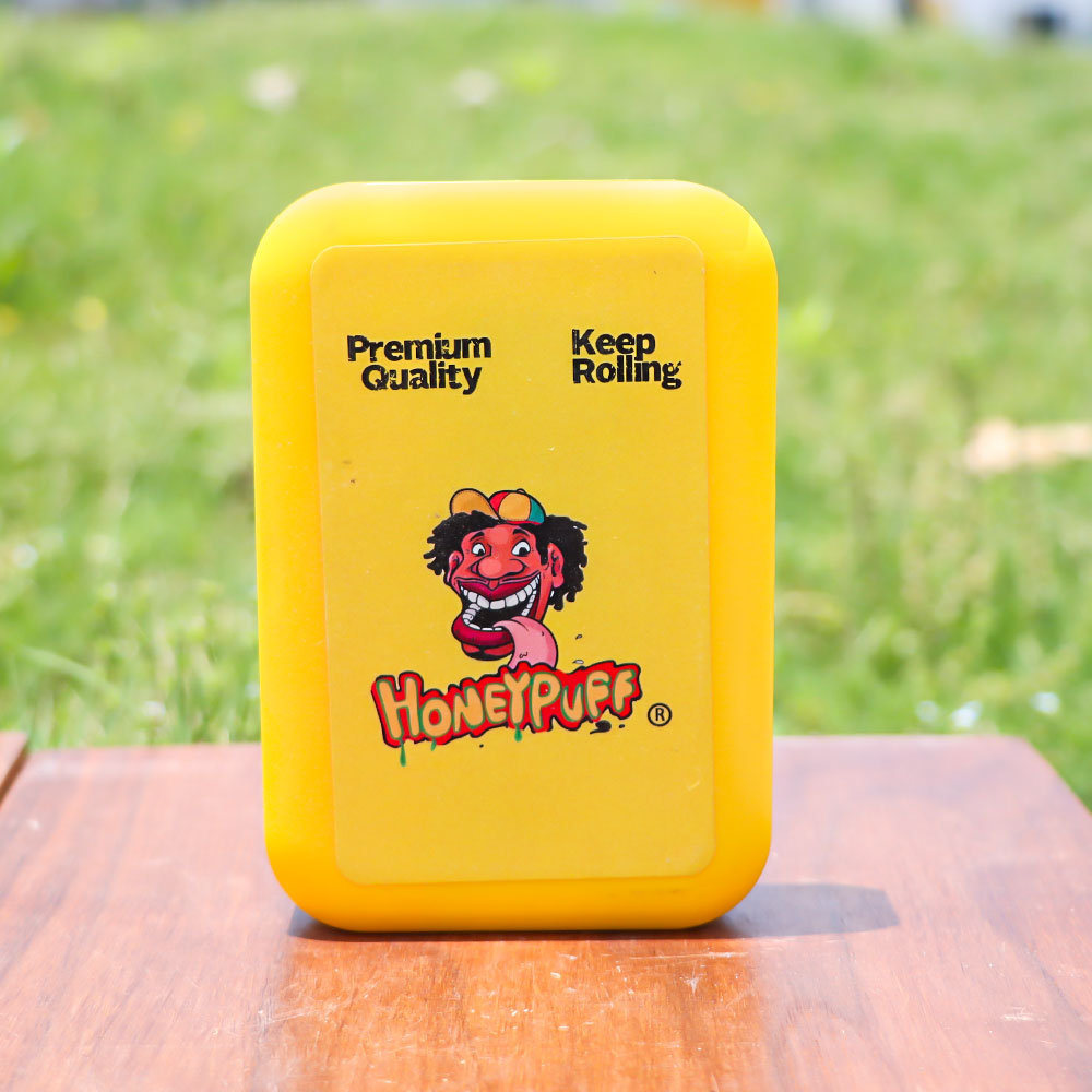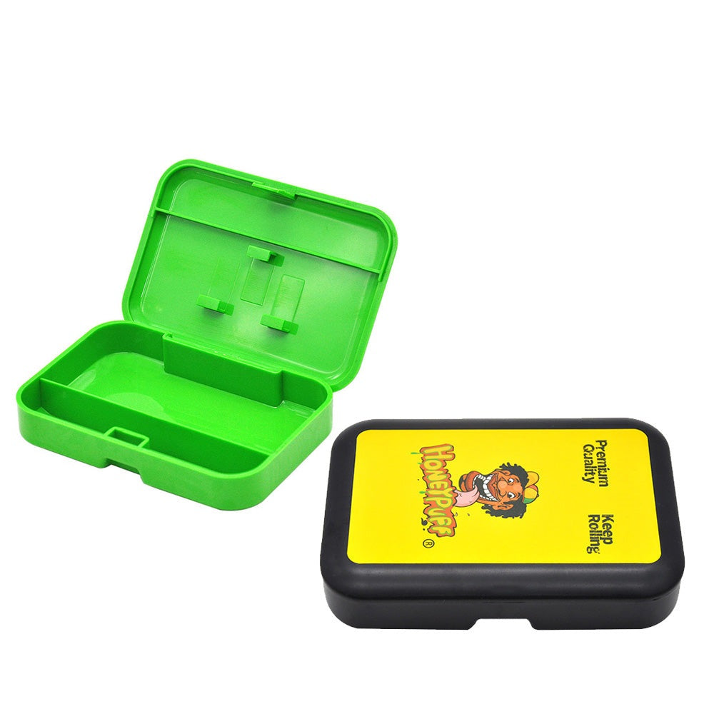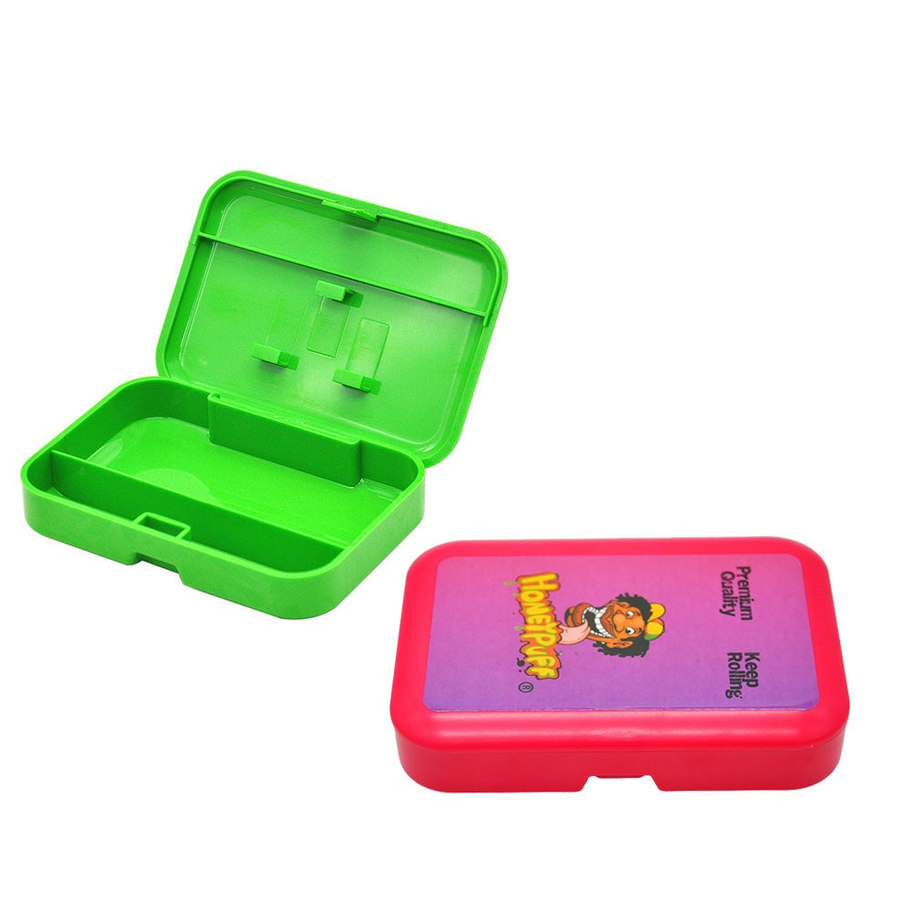 HONEYPUFF Aufbewahrungsbox aus Kunststoff, Klappdeckel mit Büroklammer, Tabak-Aufbewahrungsbox, 110 x 75 mm, Aufbewahrungsbox für Zigaretten