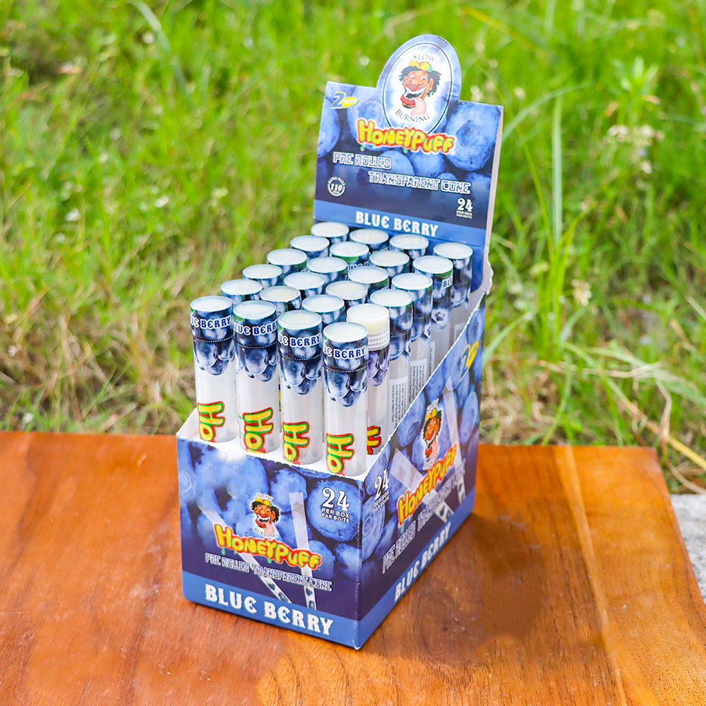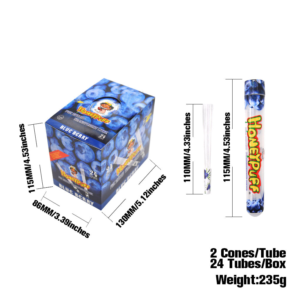 HONEYPUFF Blaubeergeschmack, vorgerollte Tüten, transparente Zigarettenpapiere, vorgerollte Kingsize-Zigarettenpapiere mit Tips, 2 Stück pro Tube