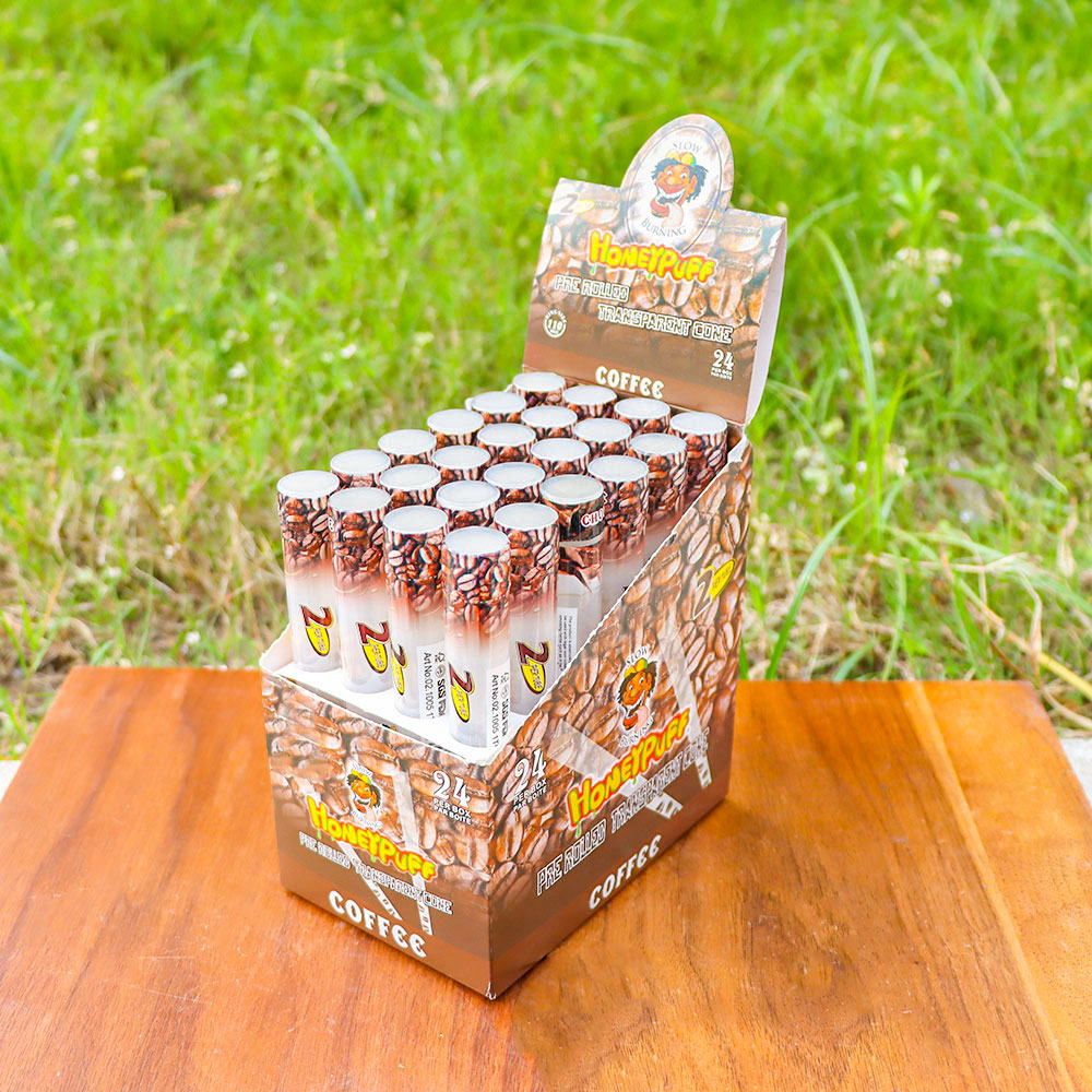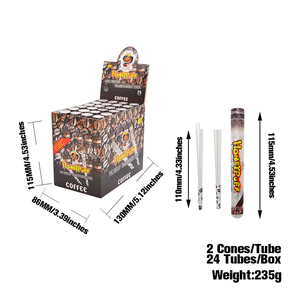 HONEYPUFF Kaffeegeschmack, vorgerollte Tüten, transparente Zigarettenpapiere, vorgerollte Kingsize-Zigarettenpapiere mit Tips, 2 Stück pro Tube