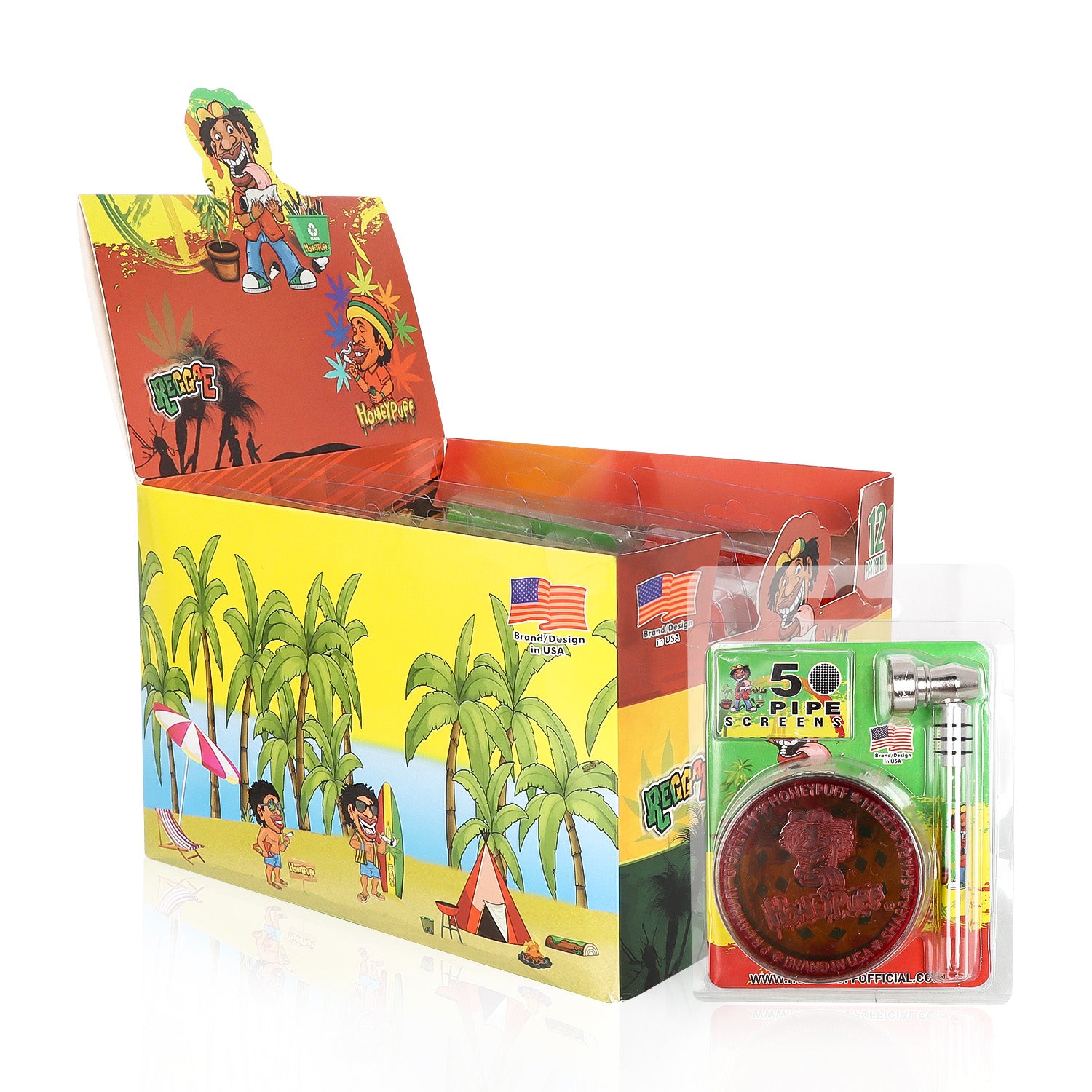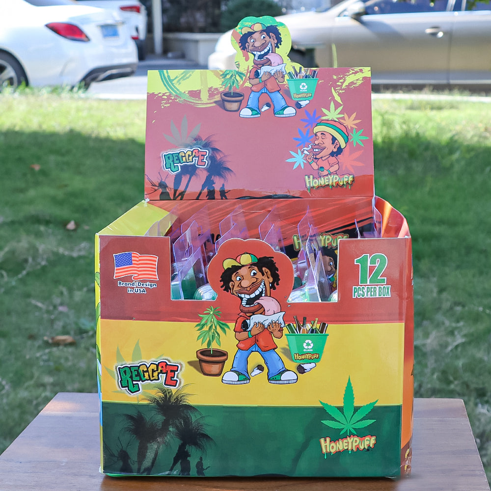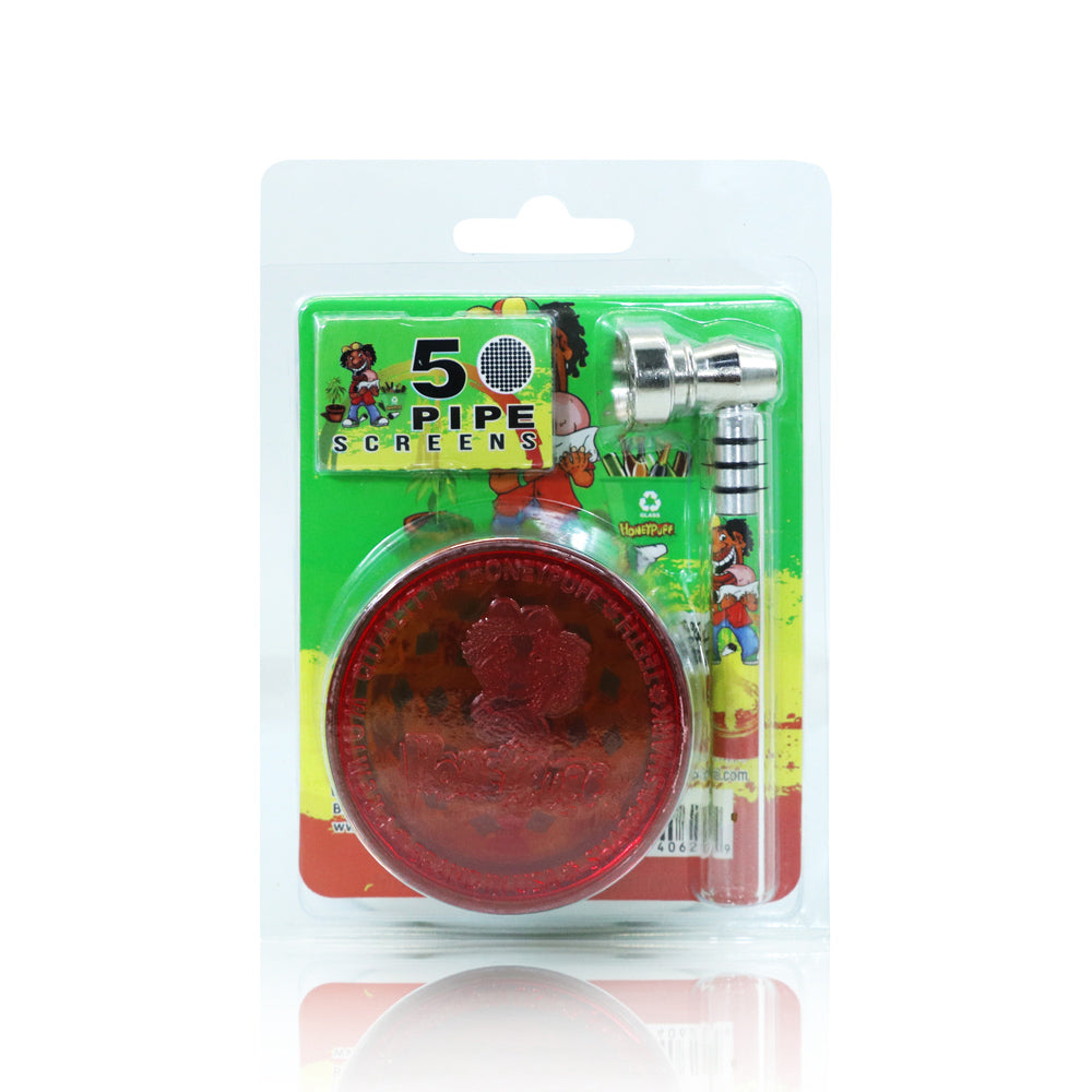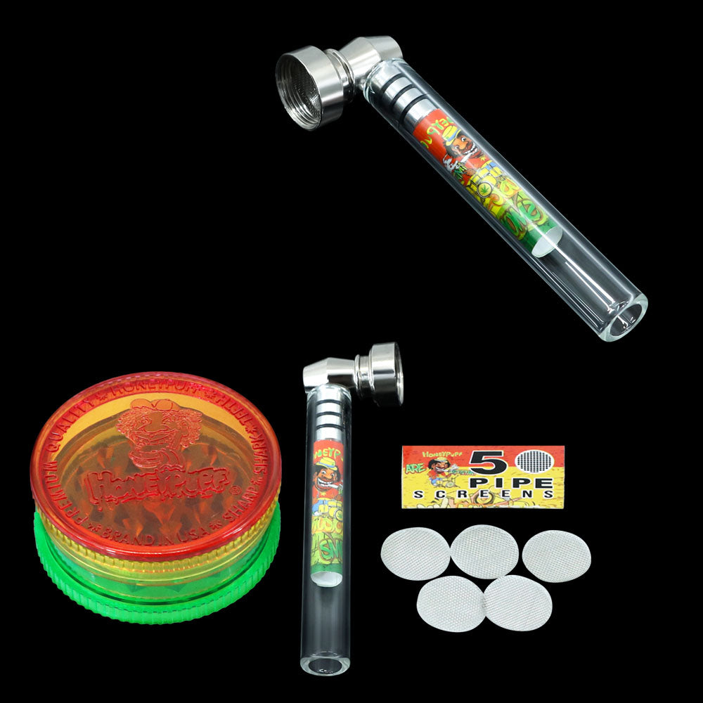 - Das Honey Puff-Rauchpfeifenset umfasst eine Rauchpfeife, eine Kräutermühle und ein Metallsieb in einem Set.