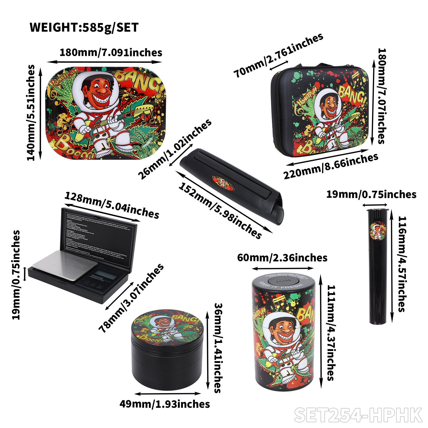 Honeypuff smoking kit with 110mm rolling machine +plastic storage jar+zinc alloy grinder+joint holder+electric scale