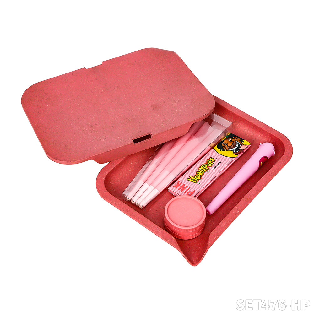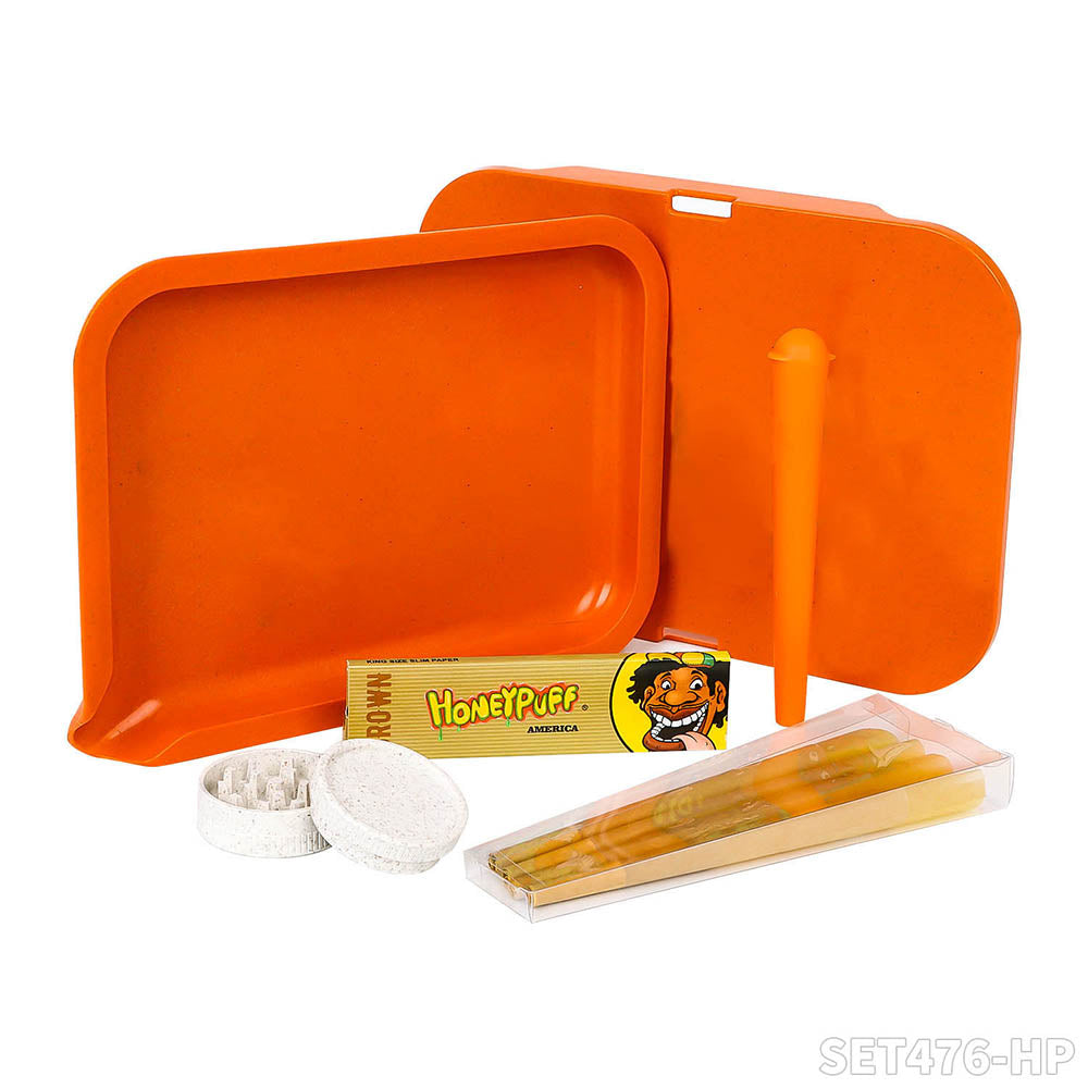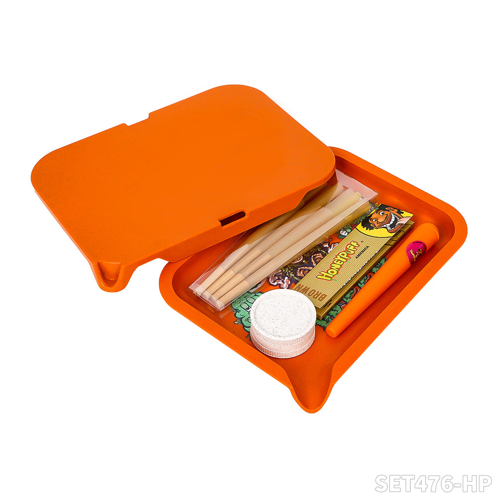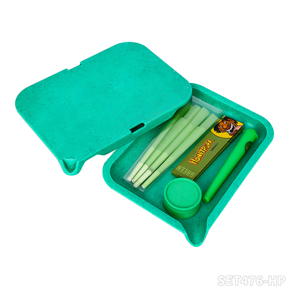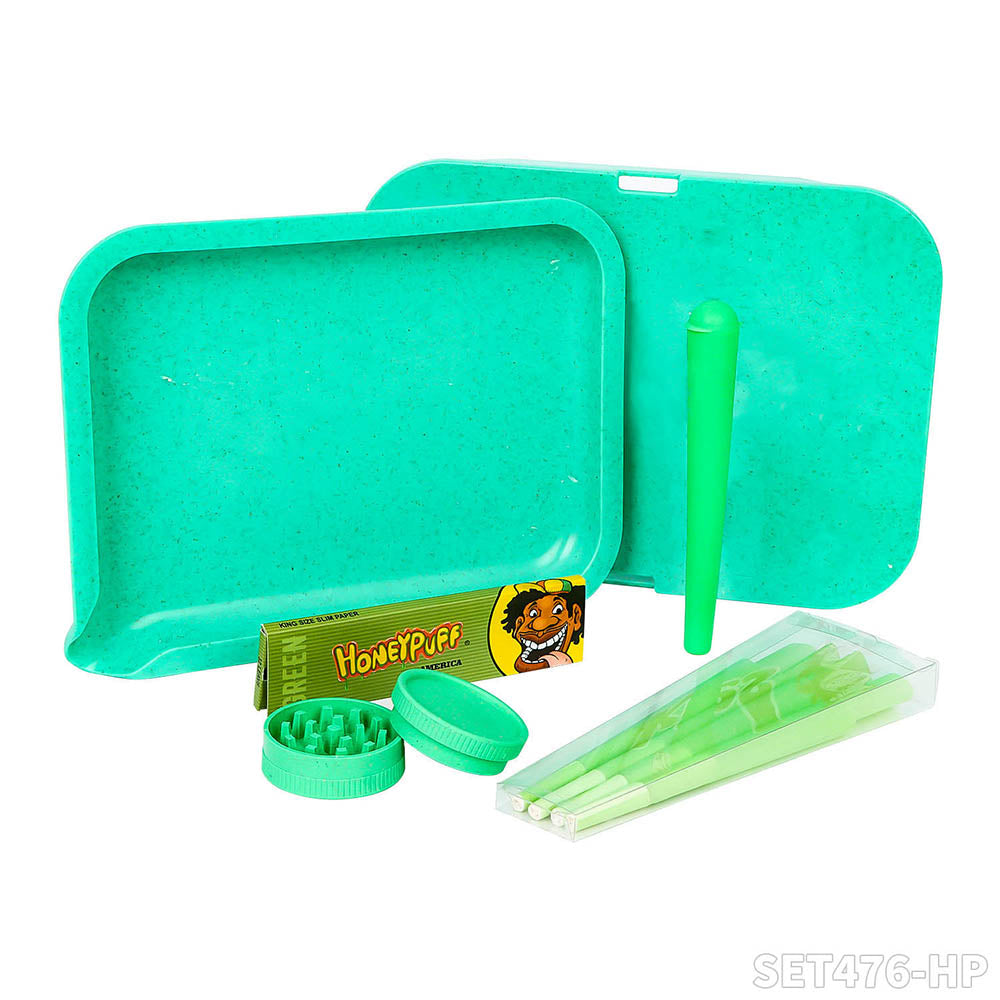 Honeypuff smoking kit with biodegradable rolling tray+1 pack pre-rolled cone+1 pack rolling paper+1 pcs joint holder+biodegradable grinder