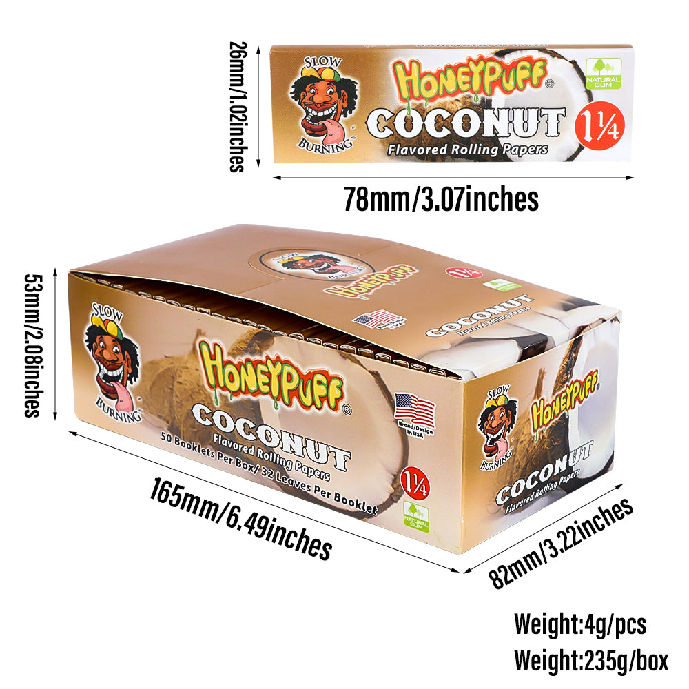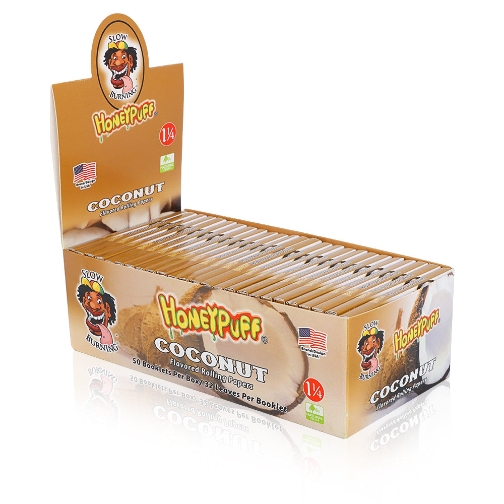 Paquet de 12 feuilles à rouler aromatisées à la noix de coco Honeypuff, format 1 1/4