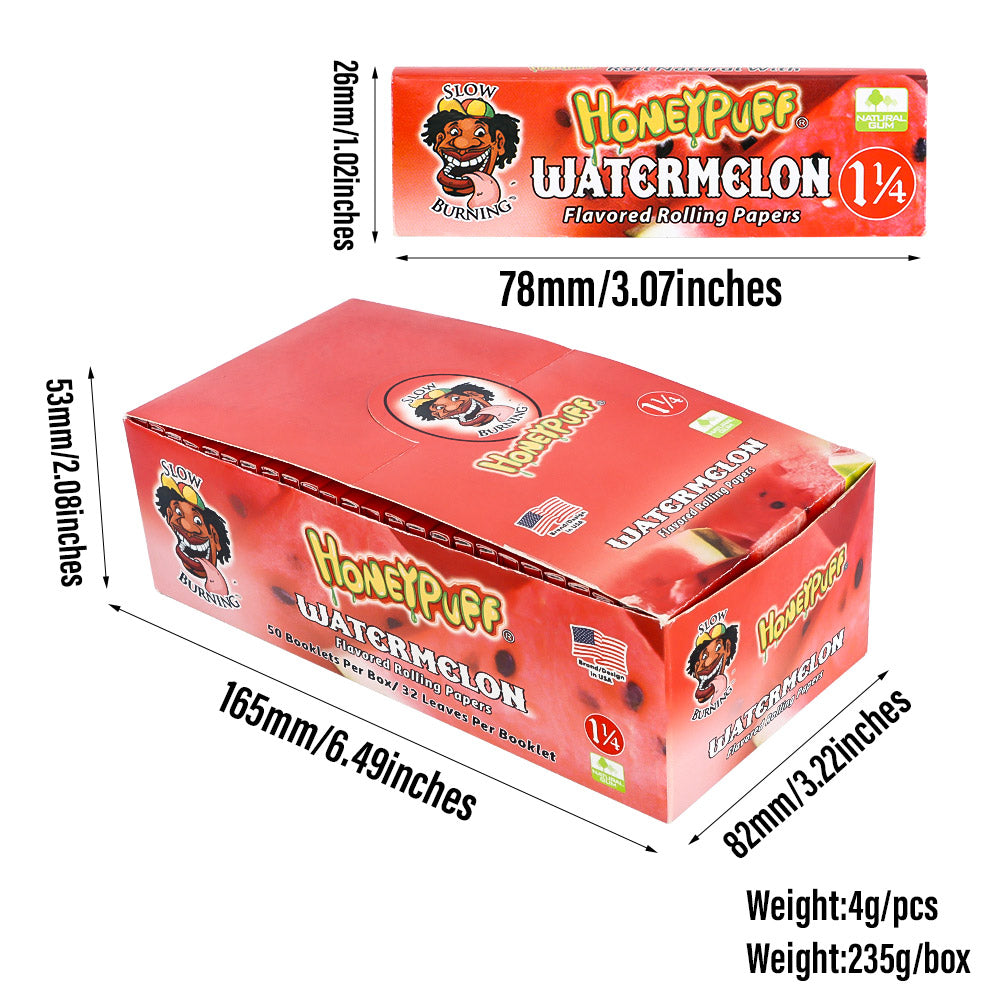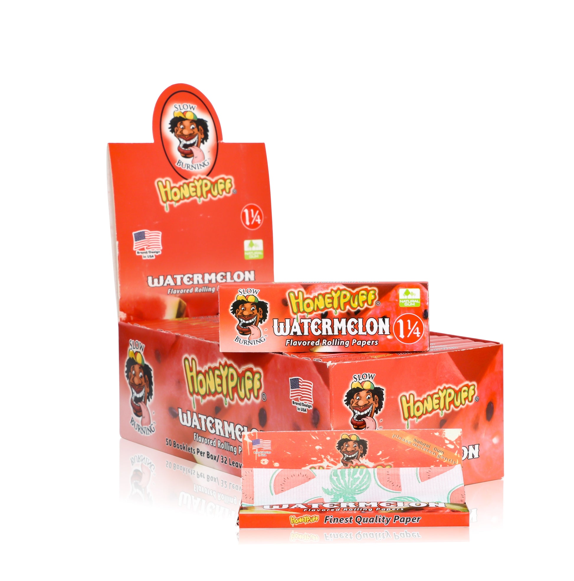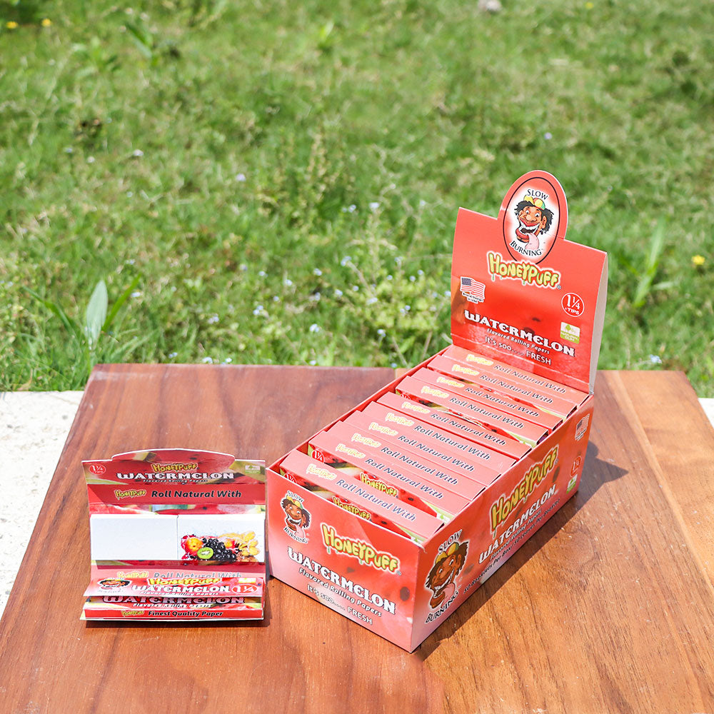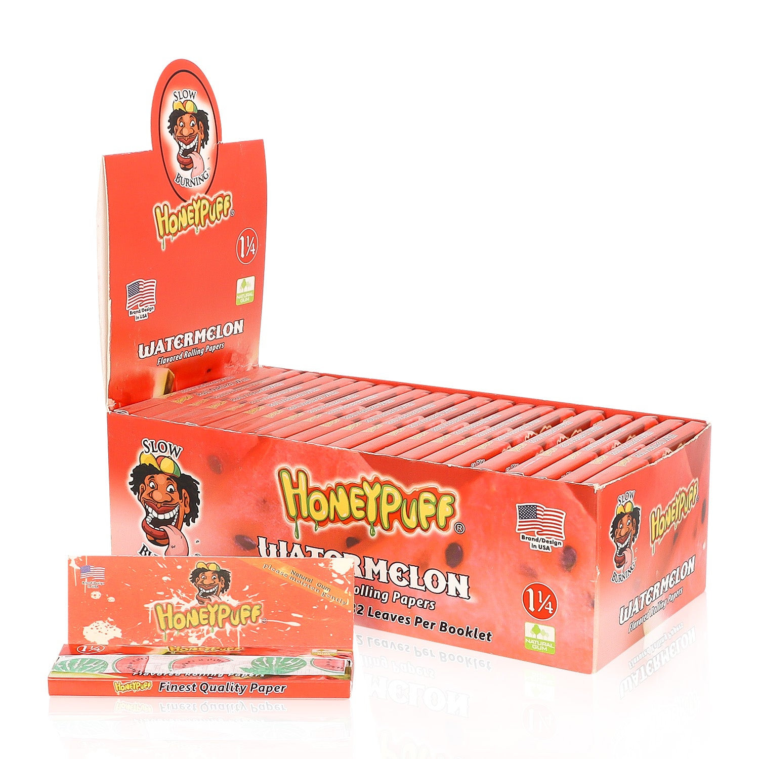 Papiers à rouler aromatisés à la pastèque Honeypuff, format 1 1/4, paquet de 12