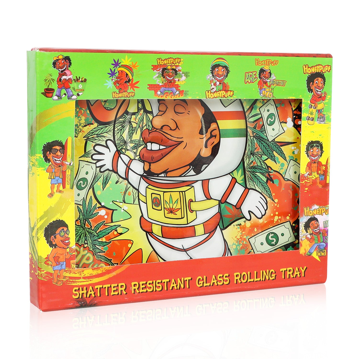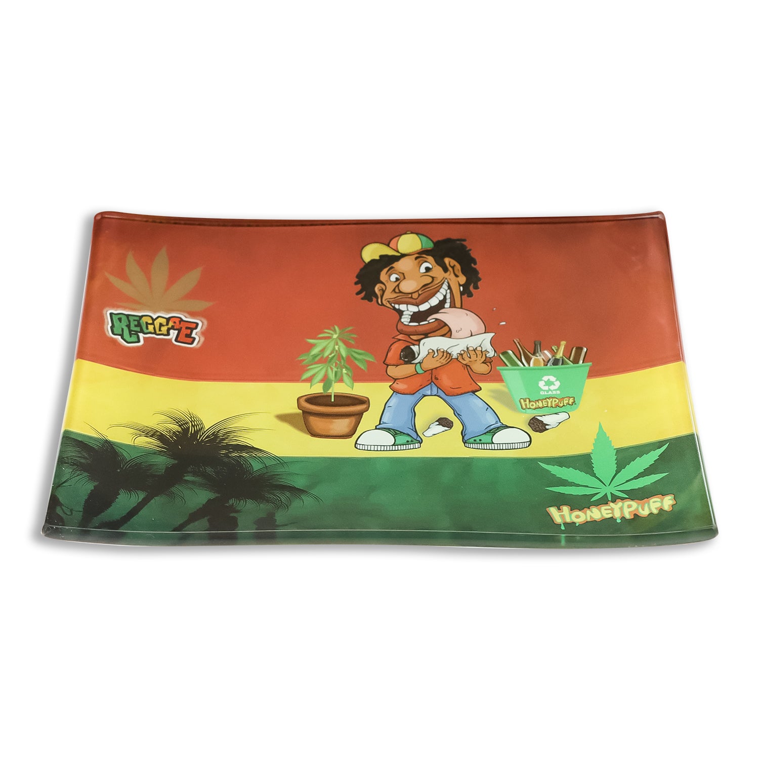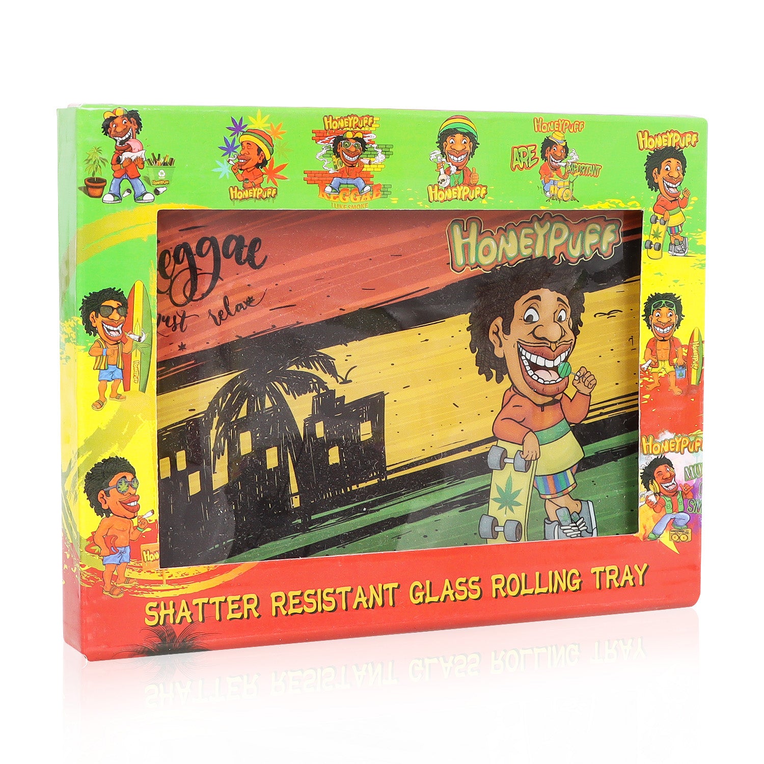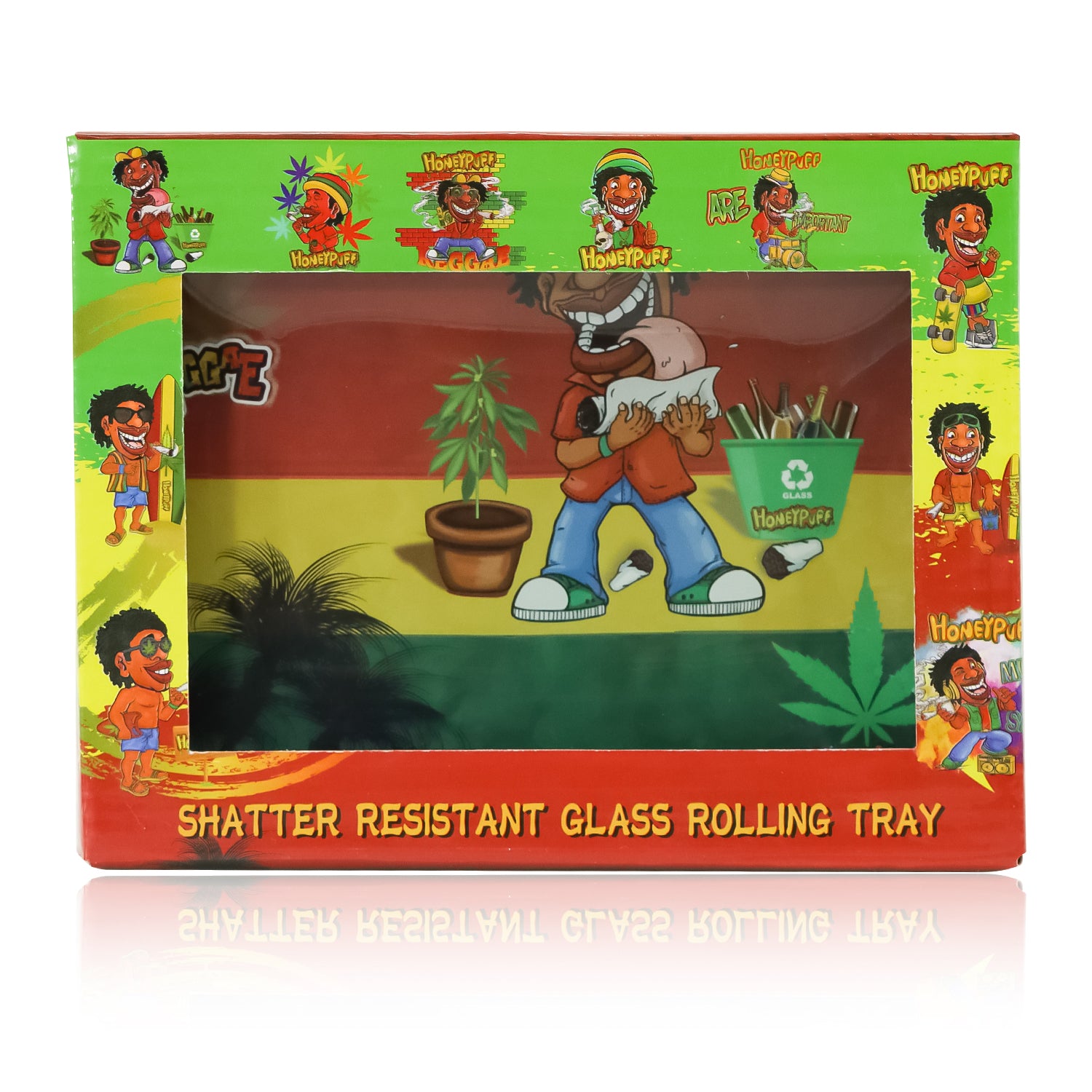 Plateau à rouler en verre Honeypuff, plateau à rouler les cigarettes incassable, plateau à rouler style rasta, plateau à rouler les cigarettes de 6,3" x 4,7"