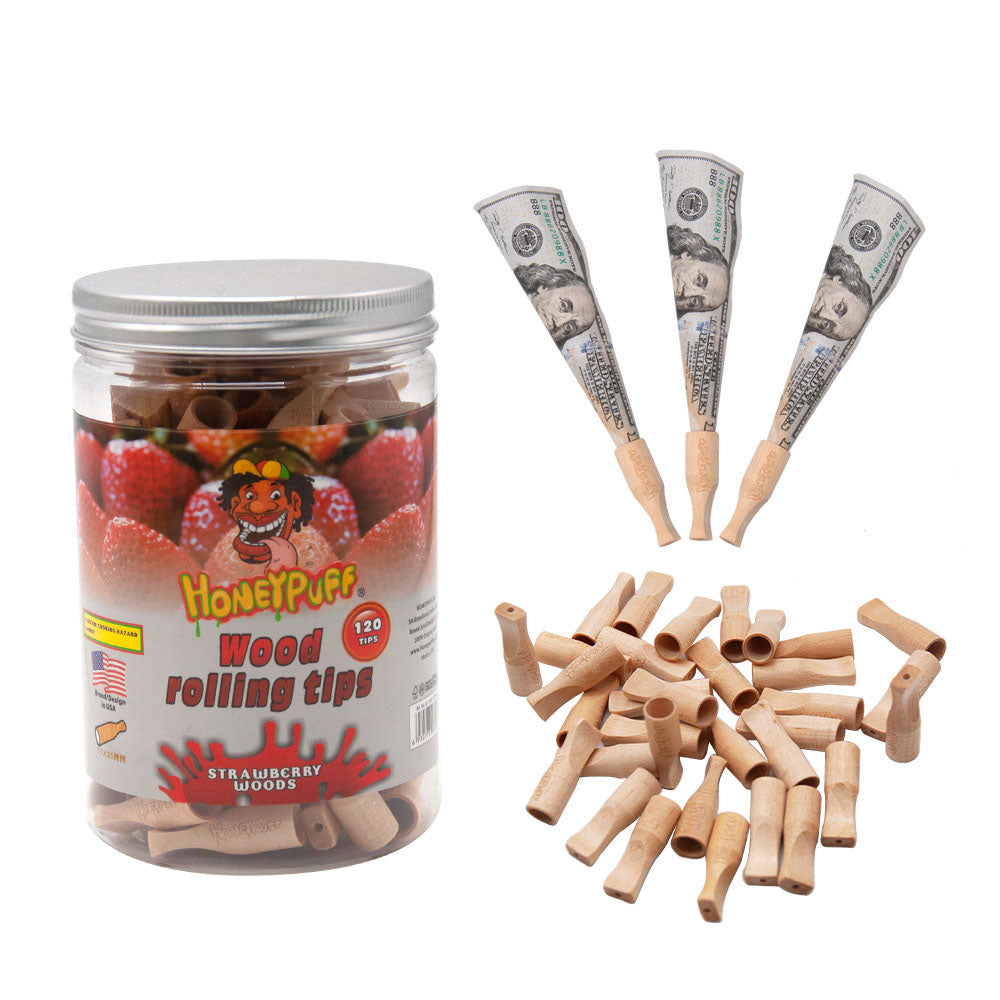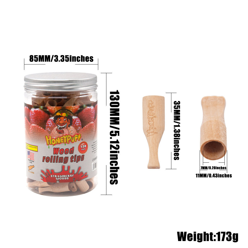 Filtres à cigarettes en bois Honeypuff à la fraise, porte-cigarette de 35 mm, 120 filtres par pot