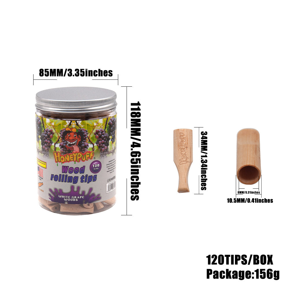 Filtres à cigarettes en bois Honeypuff au goût de raisin, porte-cigarette de 34 mm, 120 filtres par pot