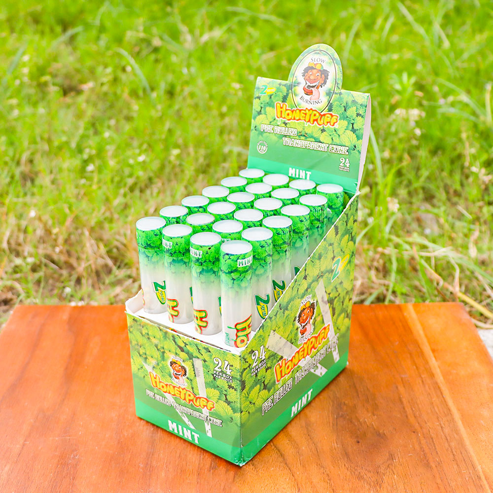 Cônes pré-roulés à la menthe Honeypuff, papier à rouler pré-roulé King Size avec embouts, papier roulé transparent et à combustion lente, 2 pièces par tube
