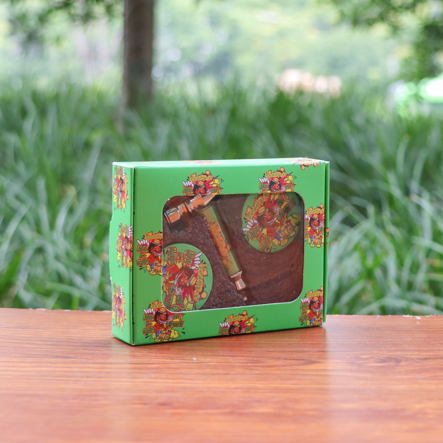HONEYPUFF Green Package Tobacco Pipe Kit, Glass Smoking Pipe With Metal Blow & 4 Lay Tobacco Grinder