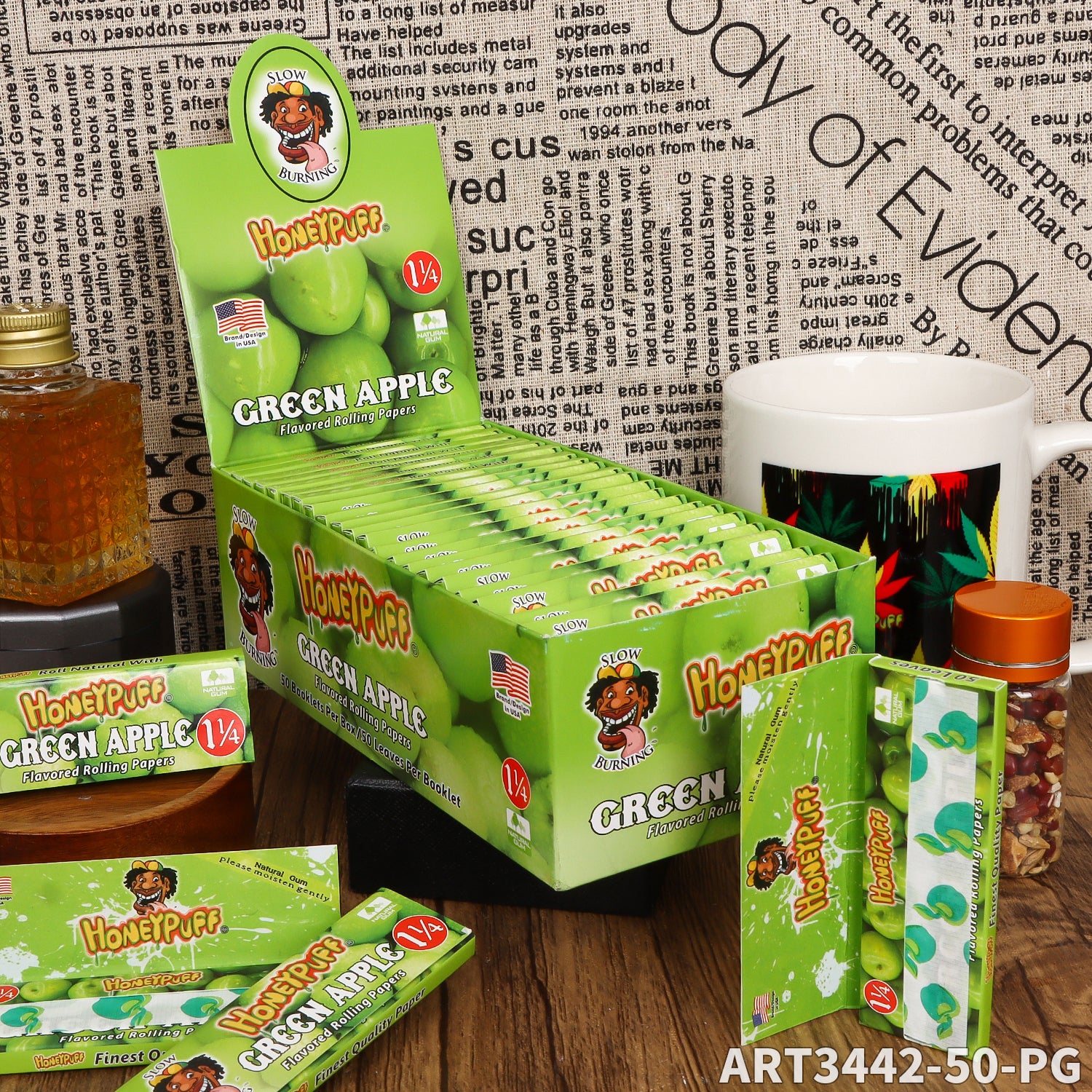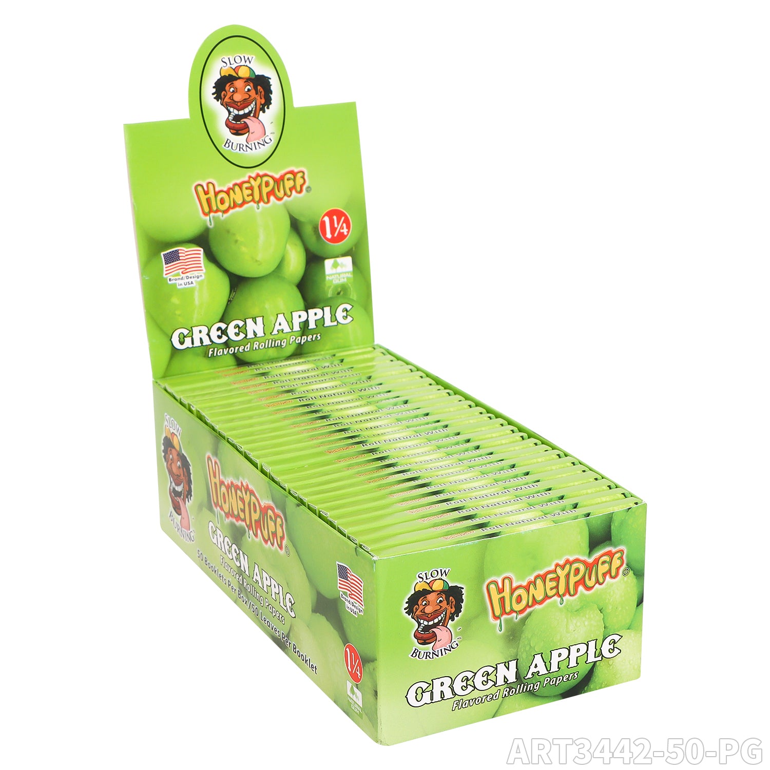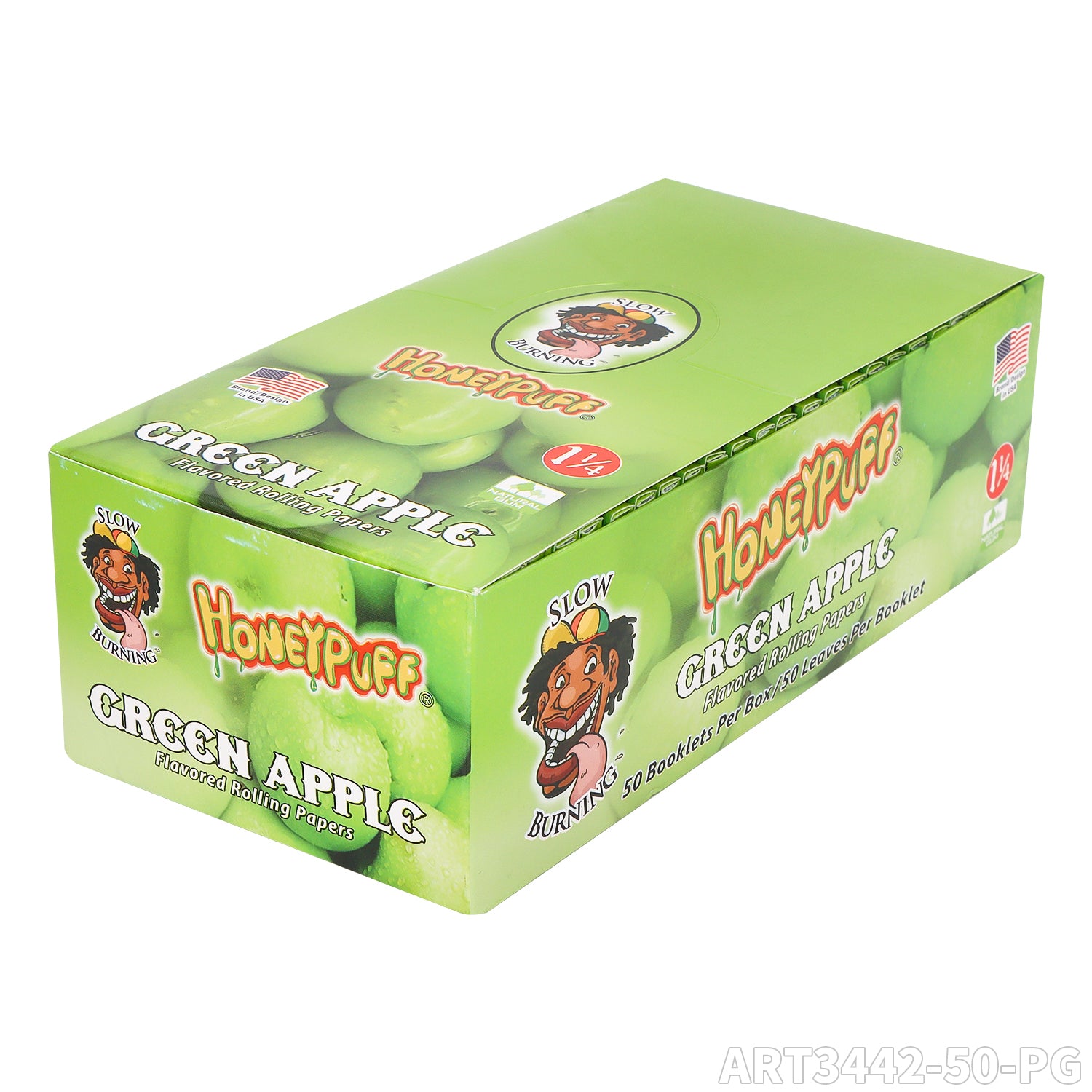 HONEYPUFF 1 1/4 Size Apple Flavored Rolling Papers, Slow Burning Cigarette Rolling Papers (50 PCS)