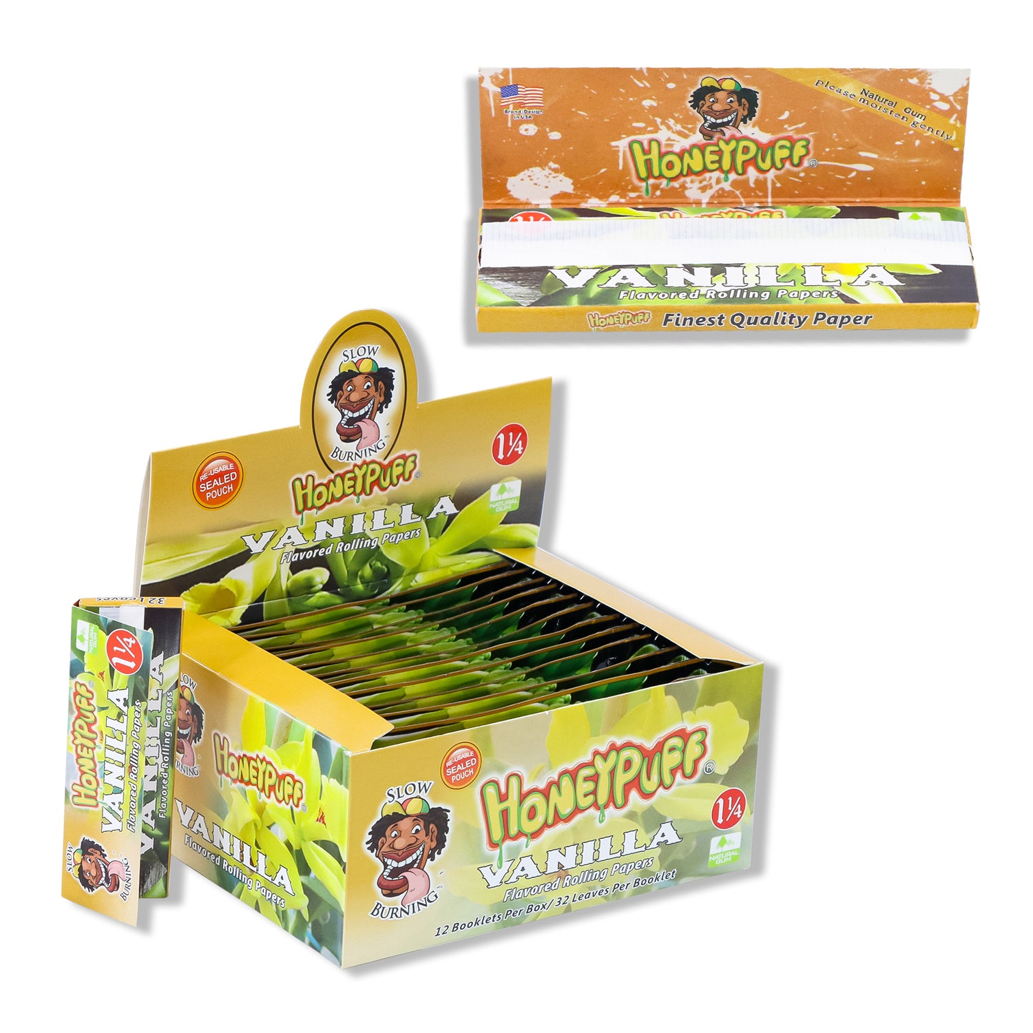 HONEYPUFF 1 1/4 Size Vanilla Flavored Rolling Papers, Slow Burning Cigarette Rolling Papers (50 PCS)