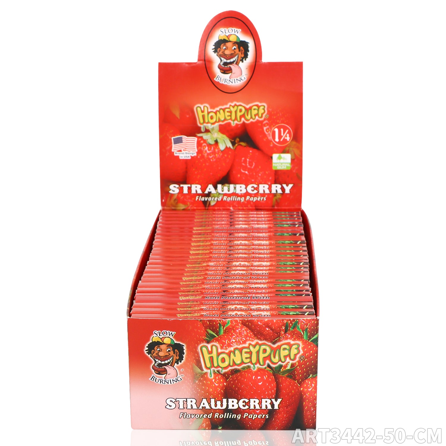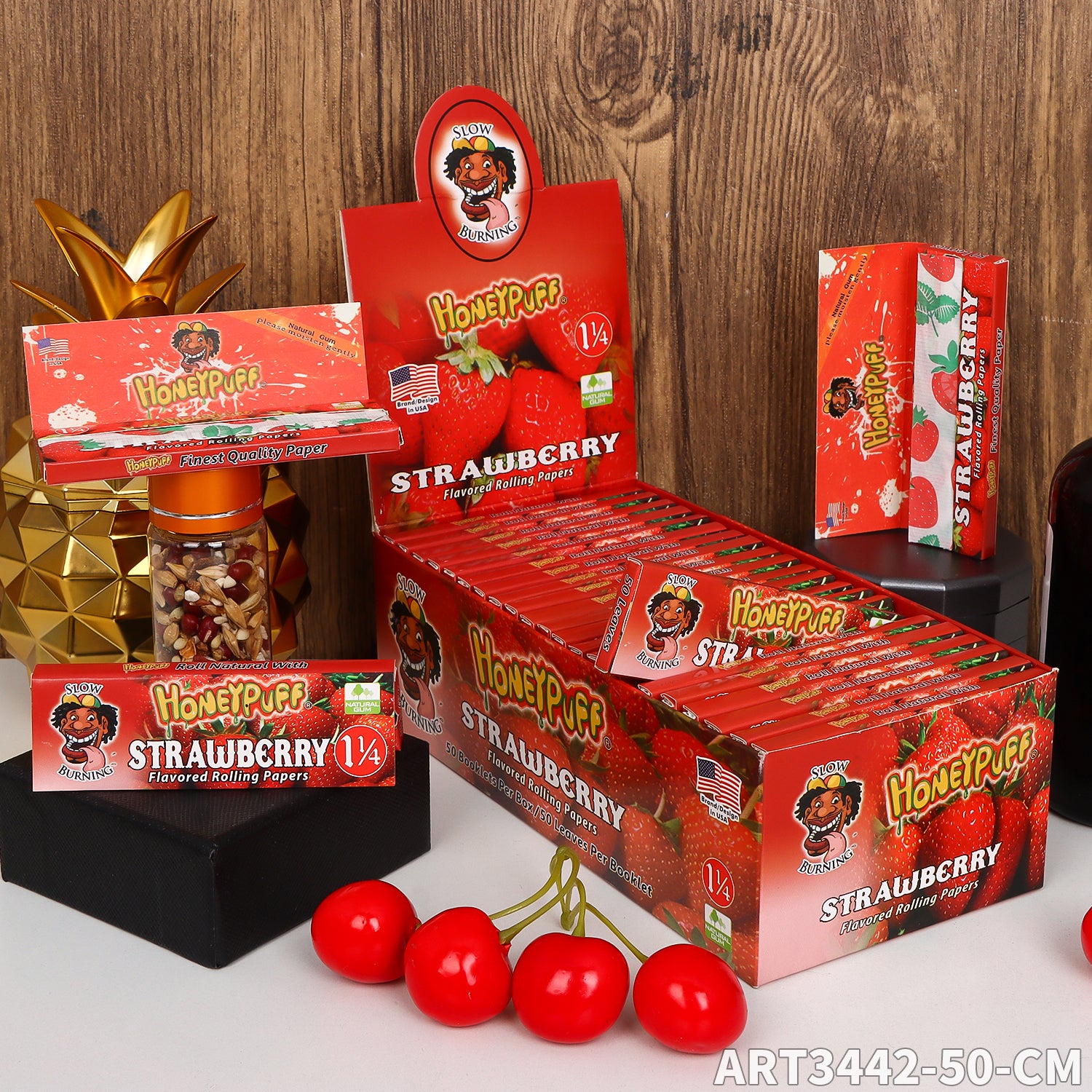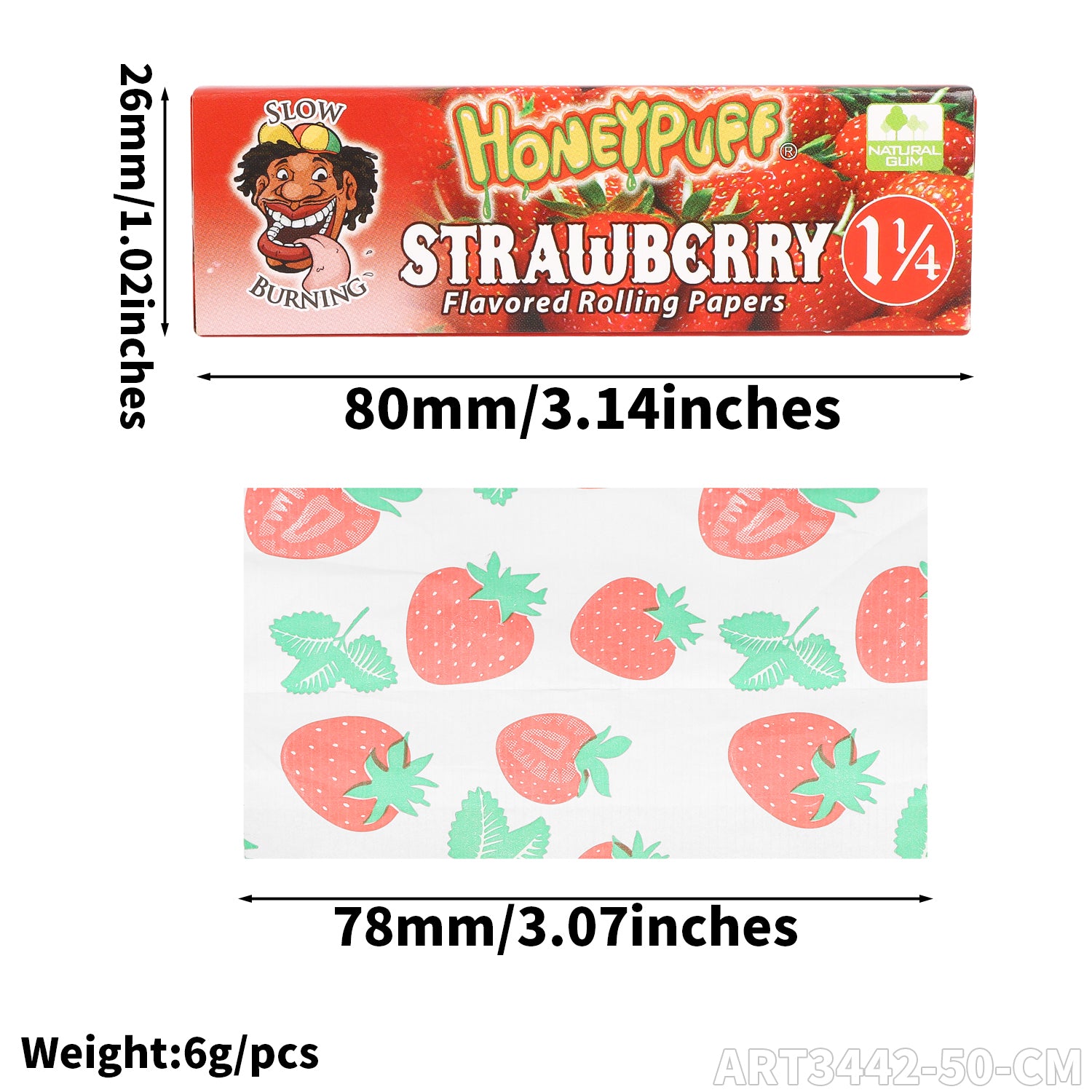 HONEYPUFF 1 1/4 Size Strawberry Flavored Rolling Papers, Slow Burning Cigarette Rolling Papers (50 PCS)