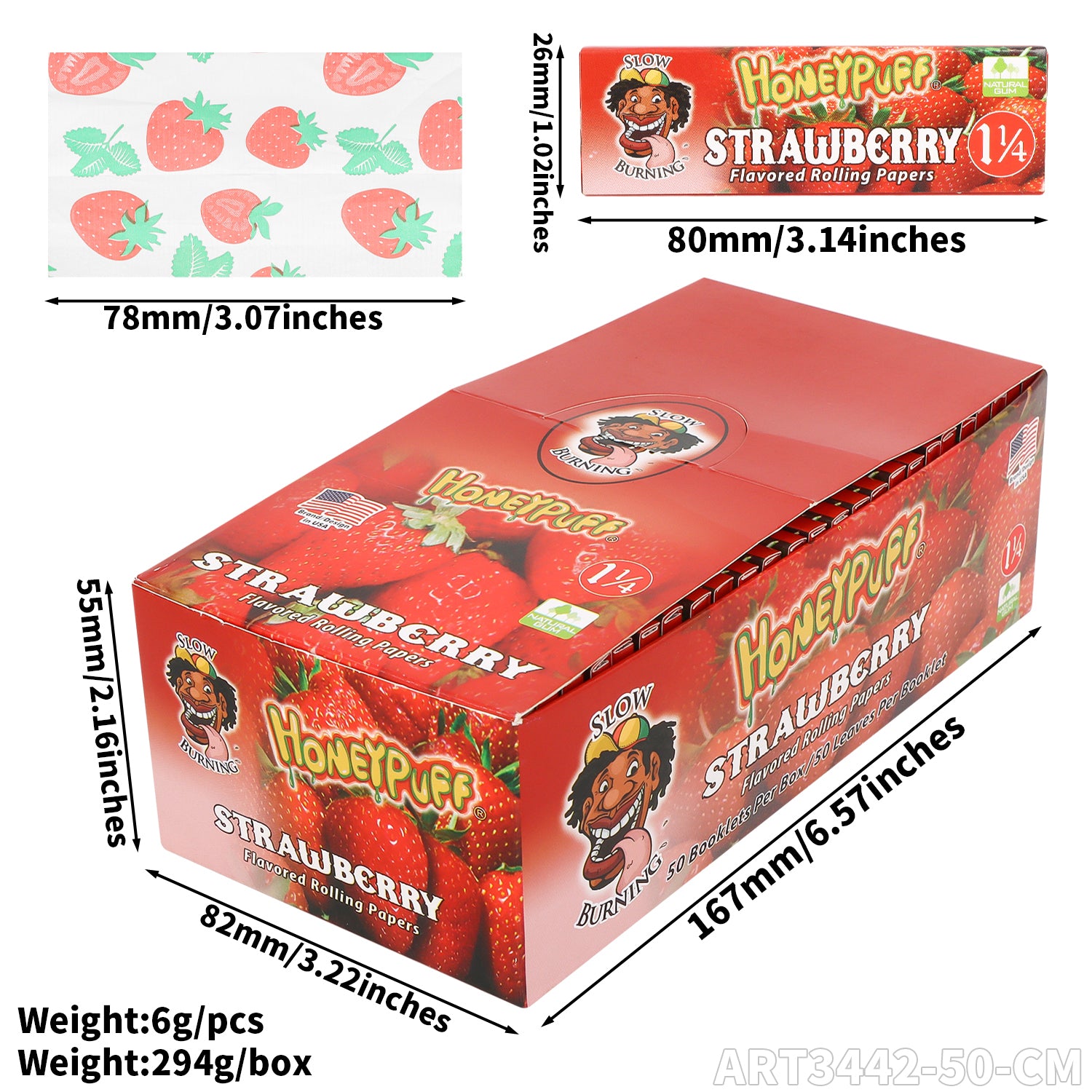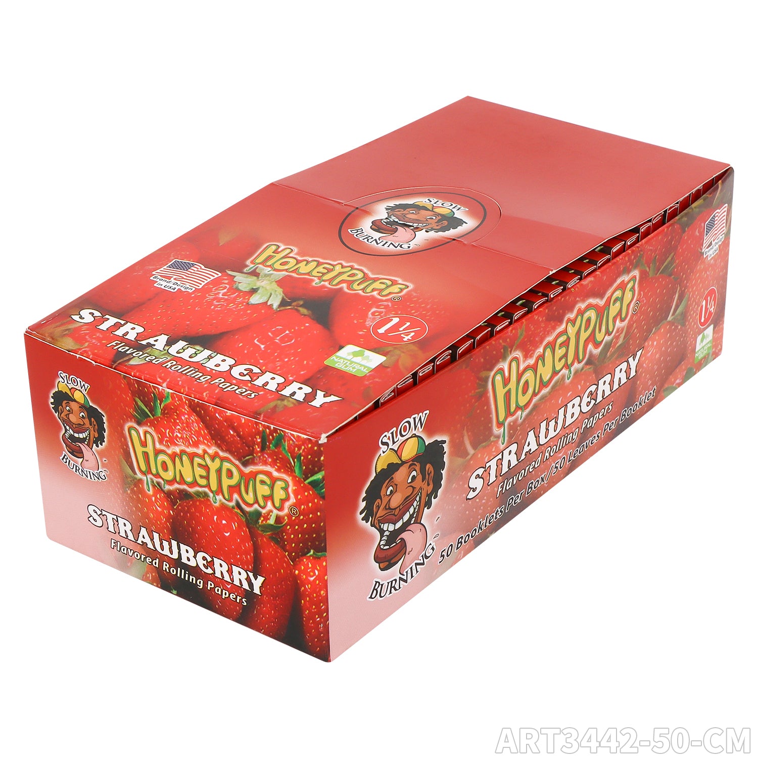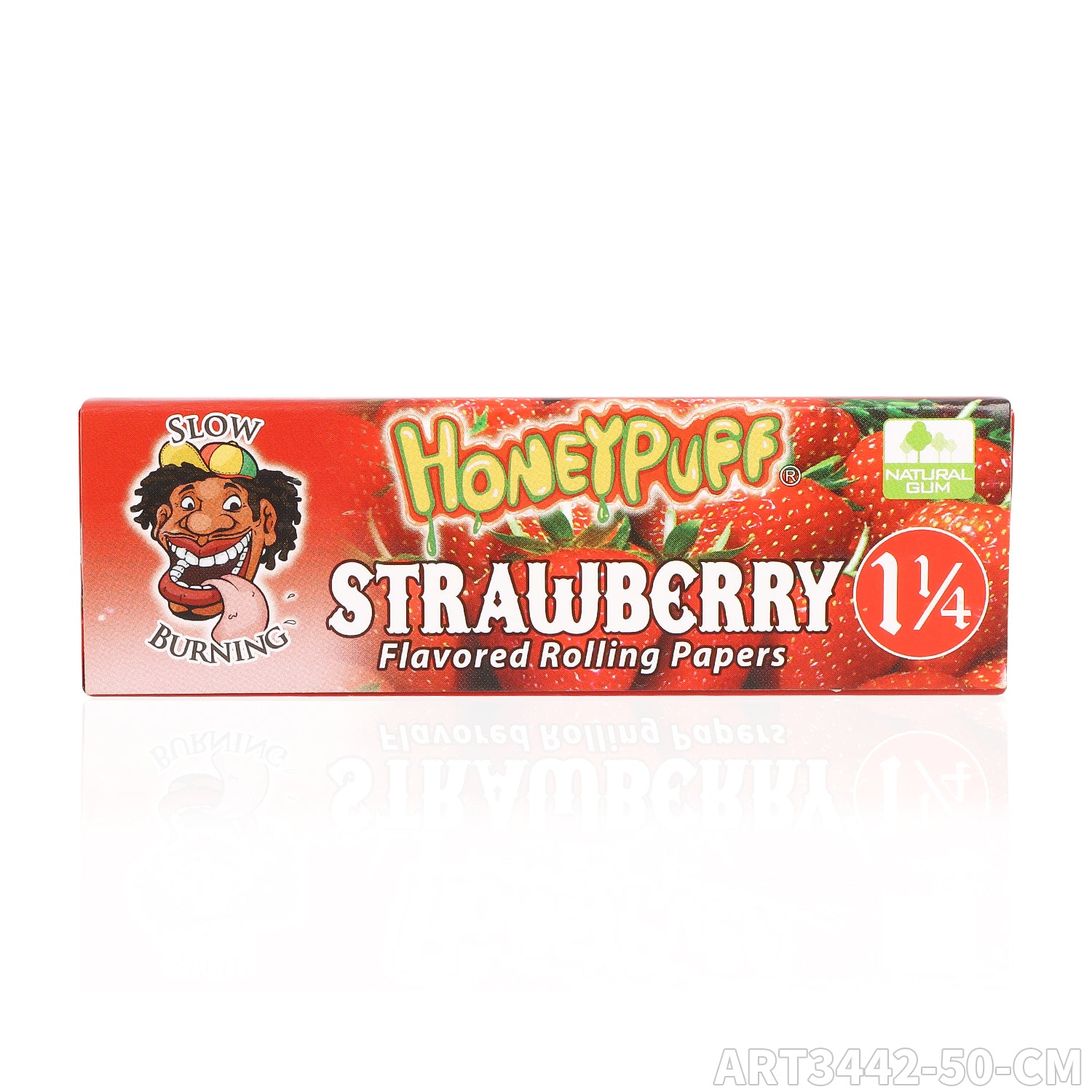 HONEYPUFF 1 1/4 Size Strawberry Flavored Rolling Papers, Slow Burning Cigarette Rolling Papers (50 PCS)