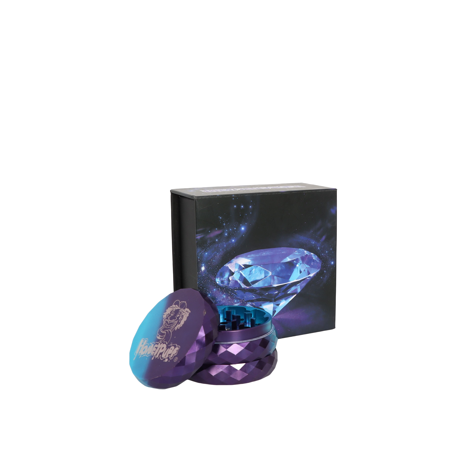 - Satisfaction gift. The spice grinder have a beautiful color blue purple gradient, easy use and portable. Packed with beautiful box, and use diamond design. Suit for lady and cool man. It is a perfect gift for wife or husband.