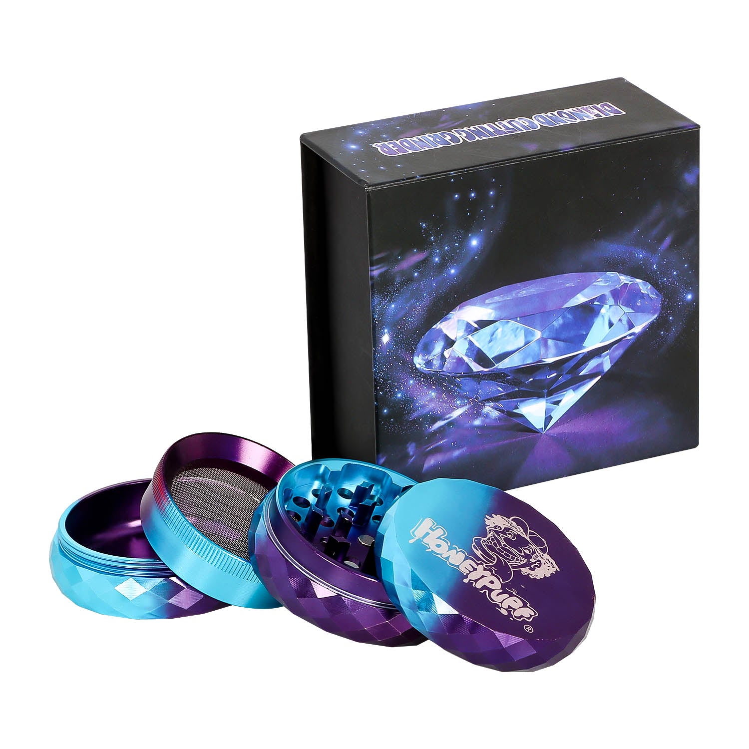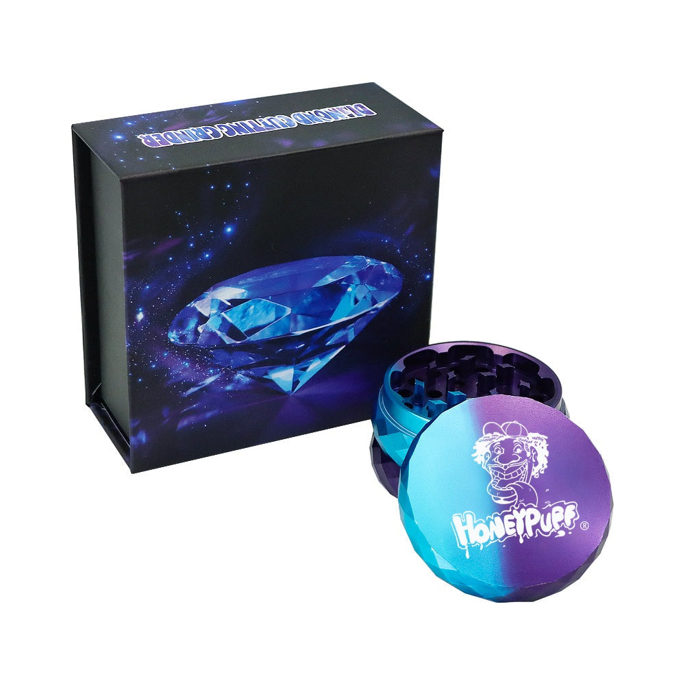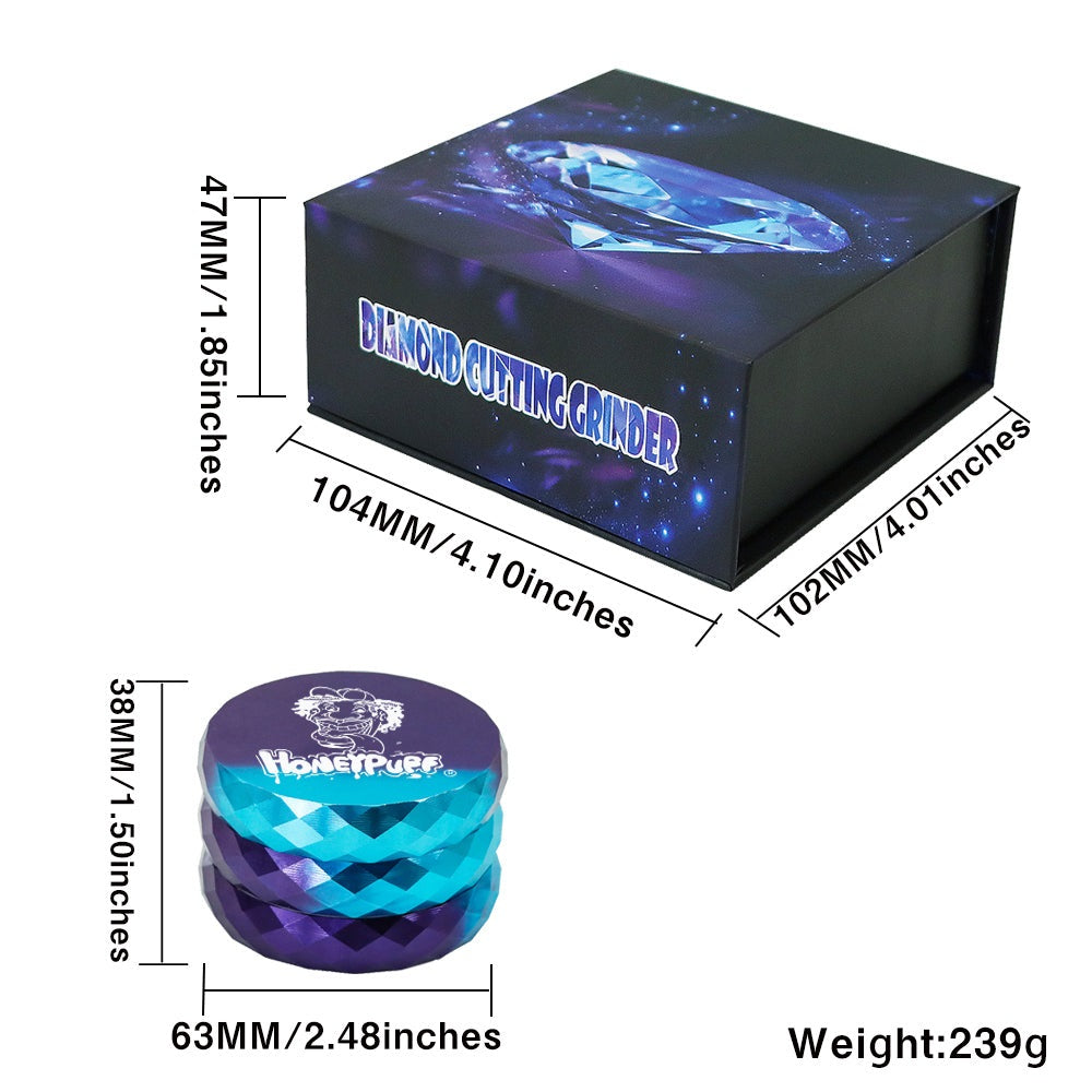 HONEYPUFF Diamond Design Zinc Alloy Herb Grinder, 63 mm 4 Layers Metal Tobacco Grinder, Beautiful Color Weed Grinder