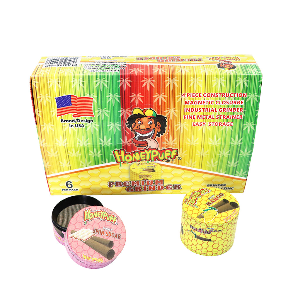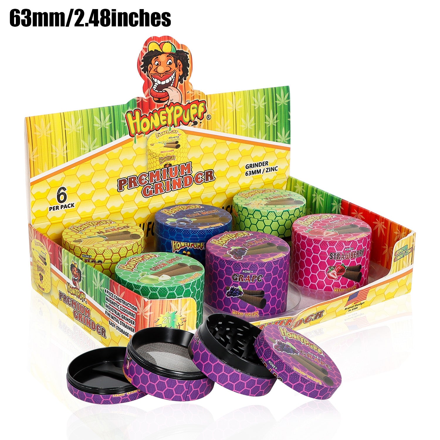 HONEYPUFF 4 Lay Zinc Metal Tobacco Grinder, 63 mm Herb Grinder, Easy Clean Herb Grinders