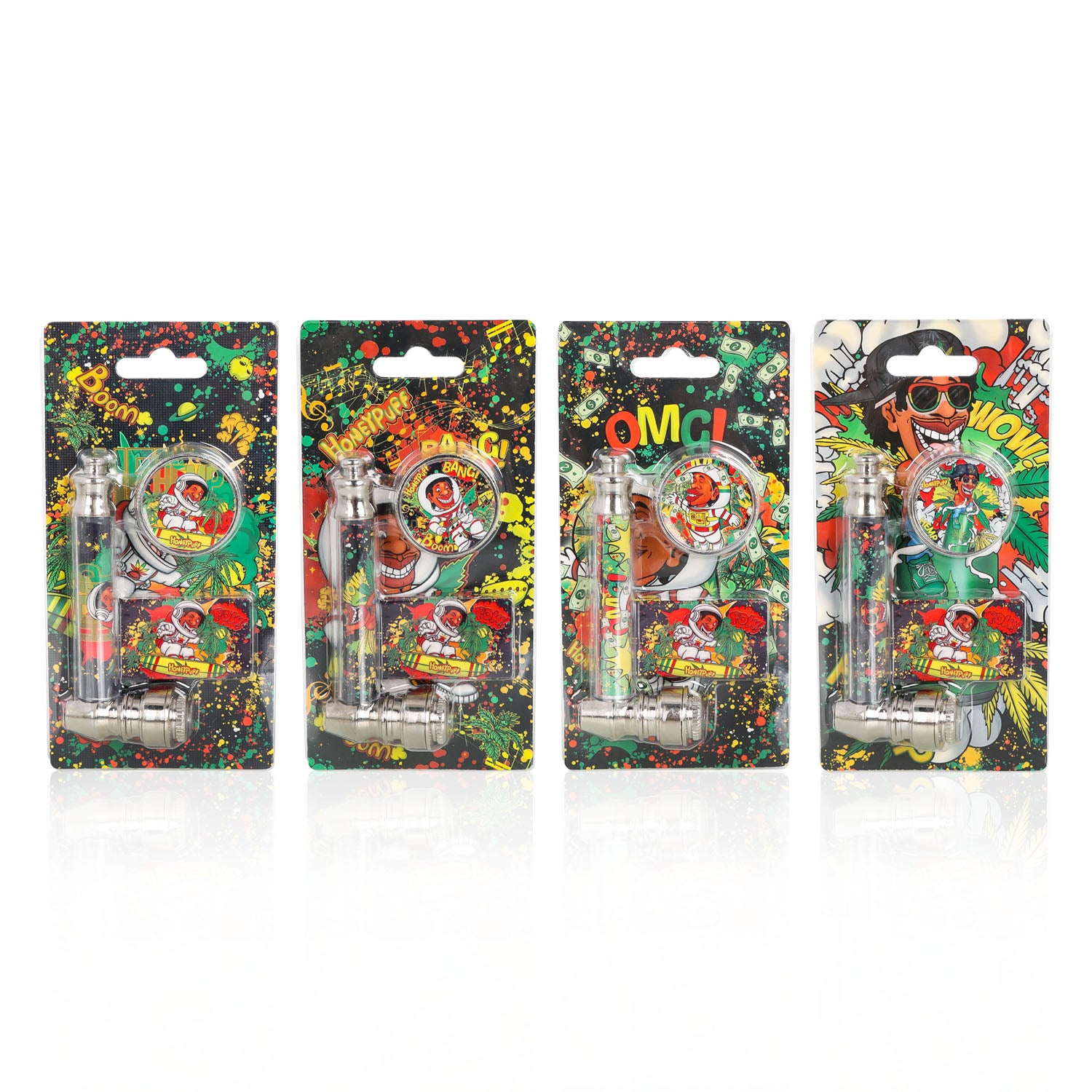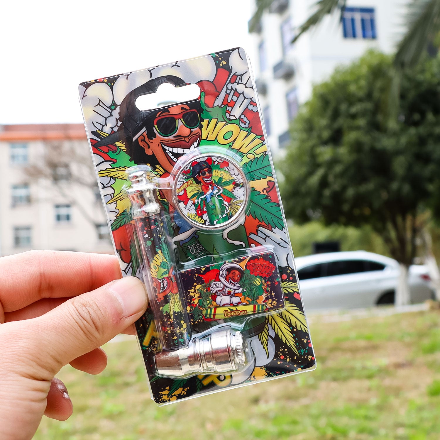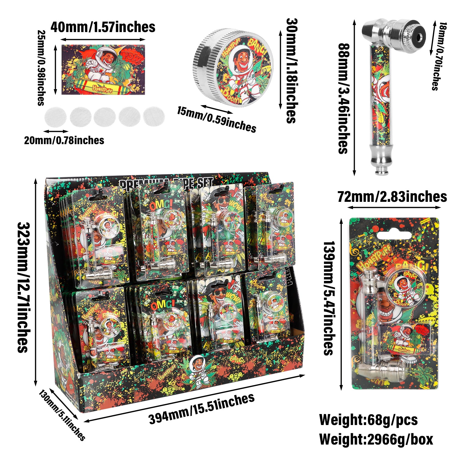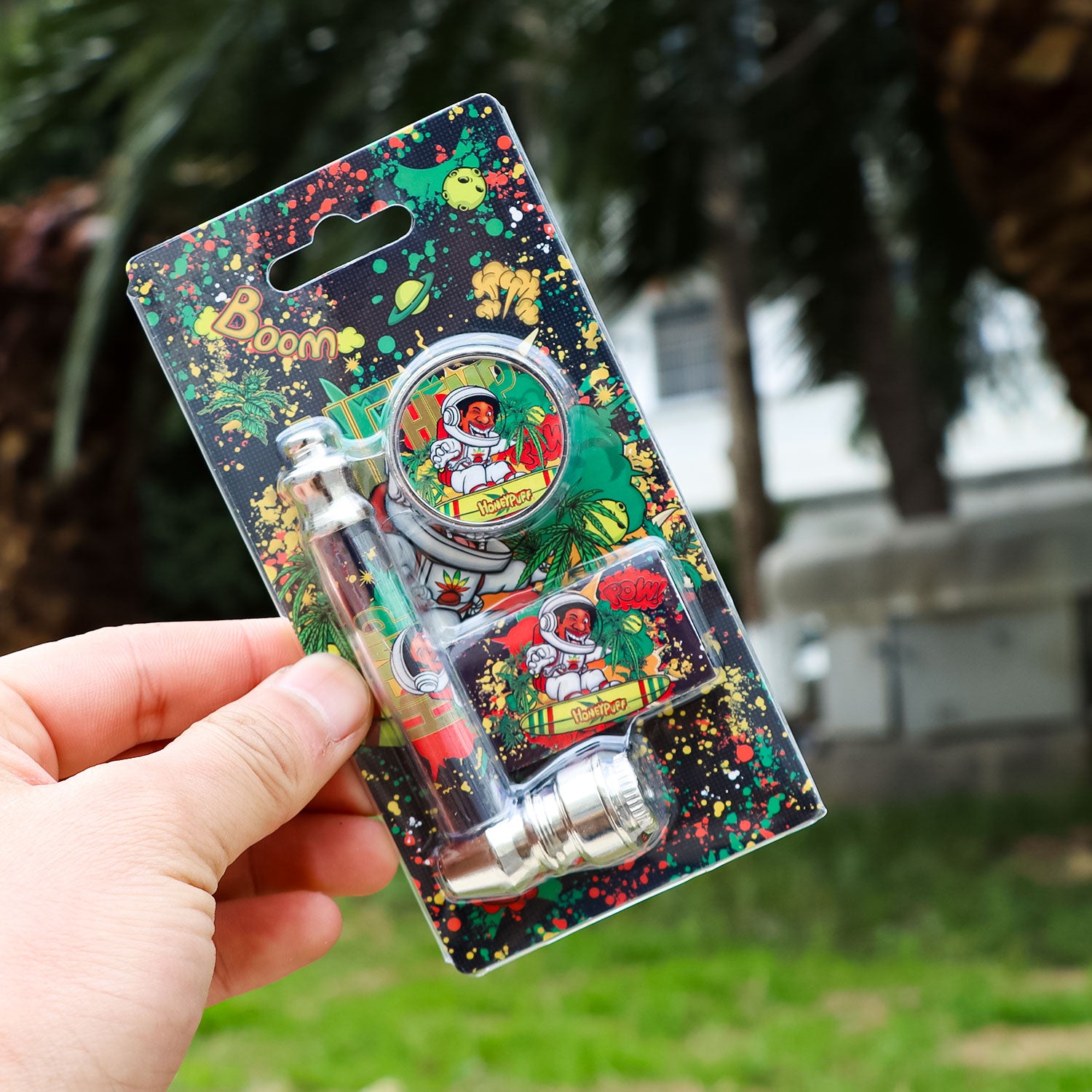 Honey Puff smoking pipe set include smoking pipe, herb grinder and metal screen in a sit.