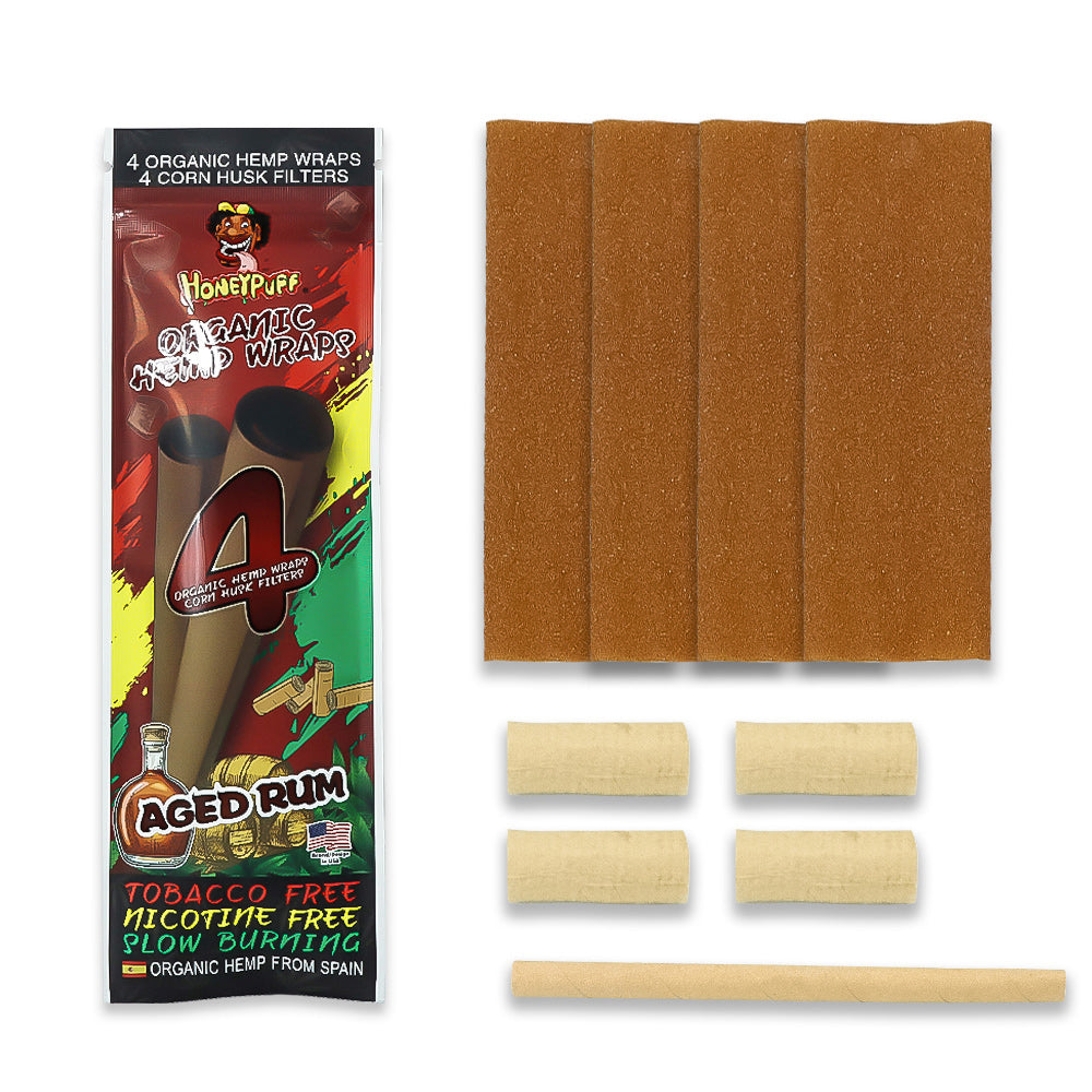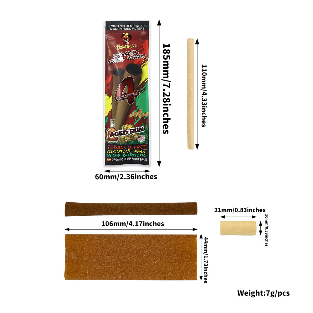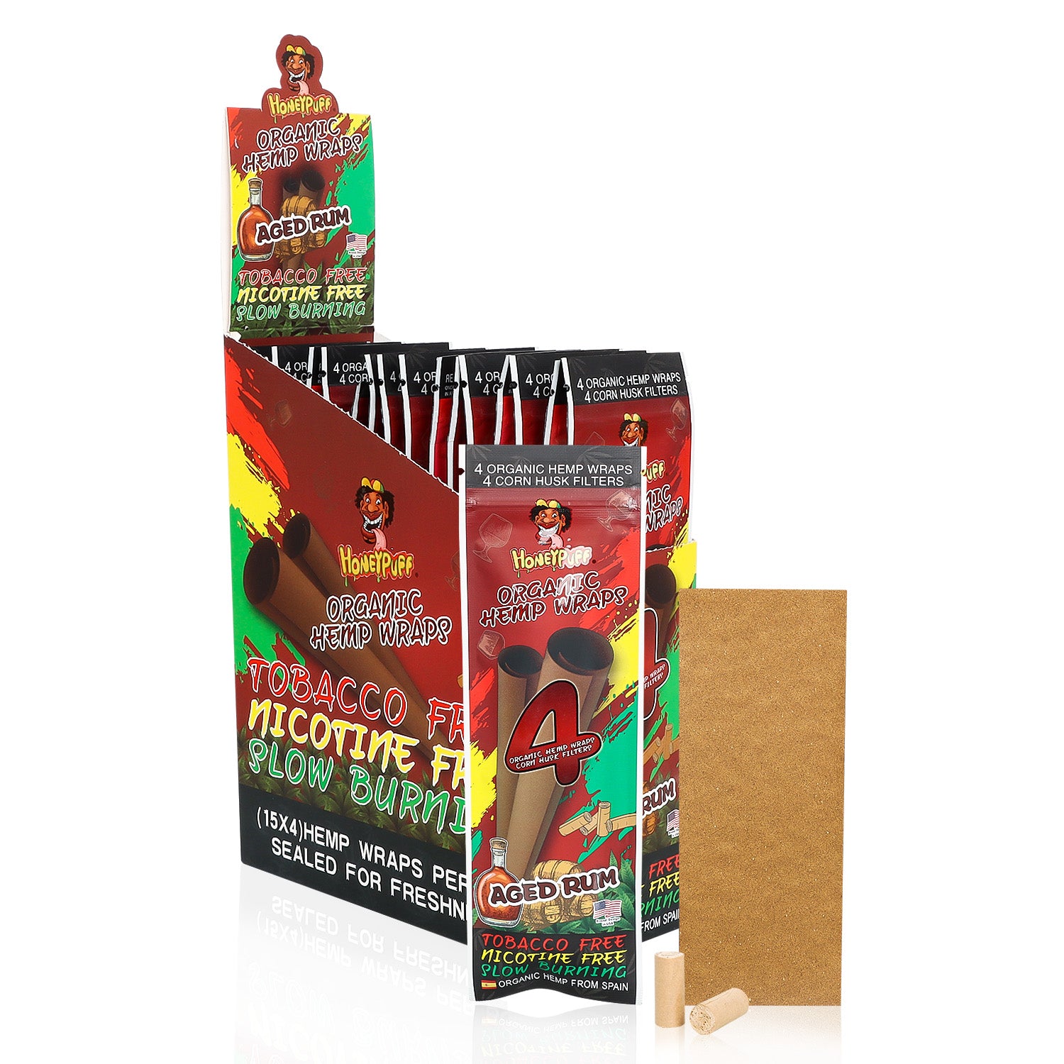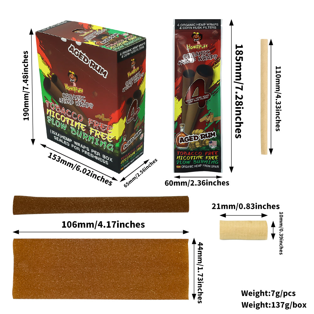 HONEYPUFF Aged Rum Flavors Rolling Papers, King Size Cigarette Rolling Paper with Tips, Slow Burning Rolling Paper & Biodegradable, 4 Pieces / Pack 15 Pack / Box