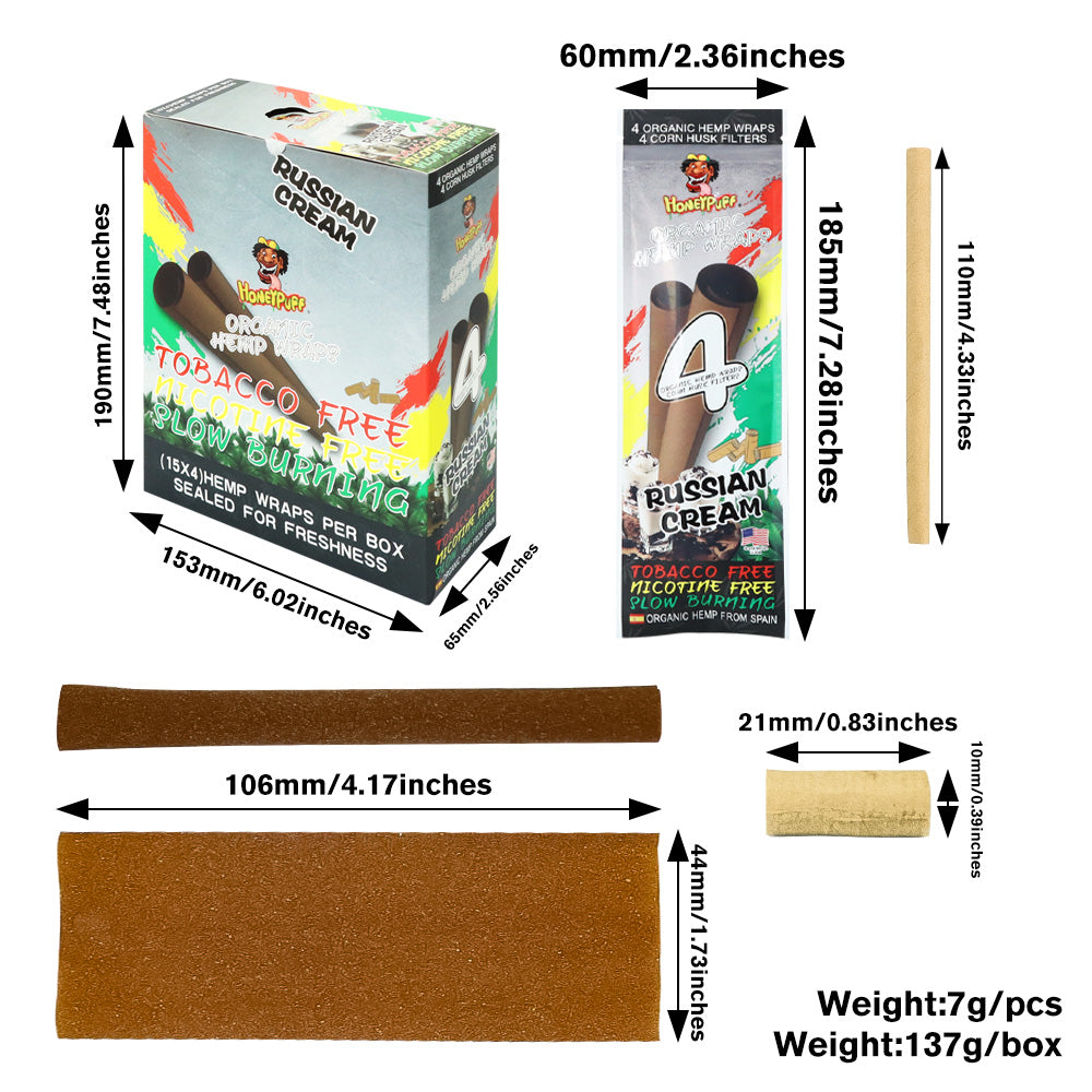 HONEYPUFF Russian Cream Flavors Rolling Papers, King Size Cigarette Rolling Paper with Tips, Slow Burning Rolling Paper & Biodegradable, 4 Pieces / Pack 15 Pack / Box