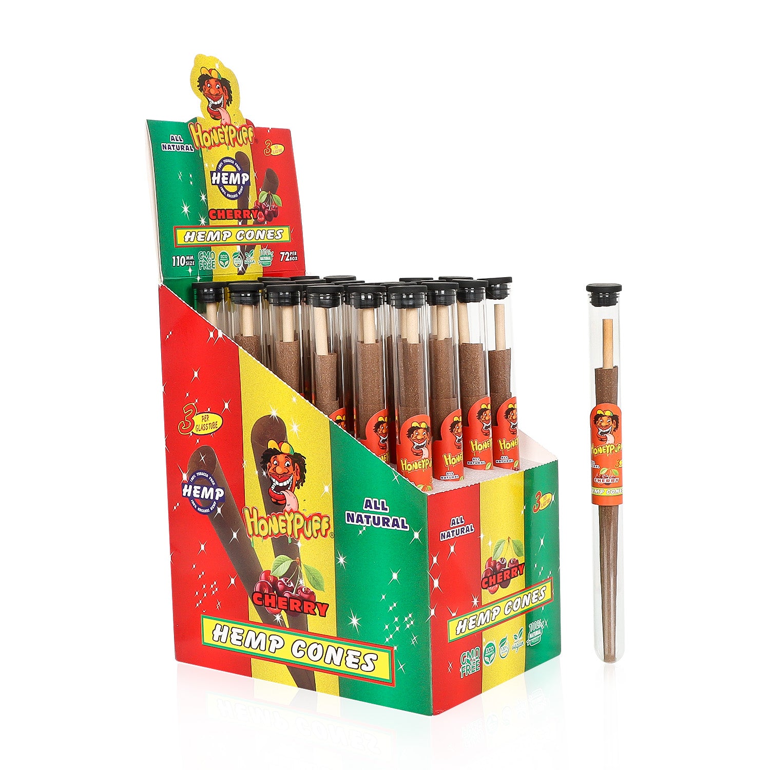HONEYPUFF Cherry Flavors Pre Rolled Cones with Tips, King Size Pre Rolled Rolling Paper, Natural Rolling Papers & Glass Cigarette Holder, 3Cone/Tube 24Tubes/Box