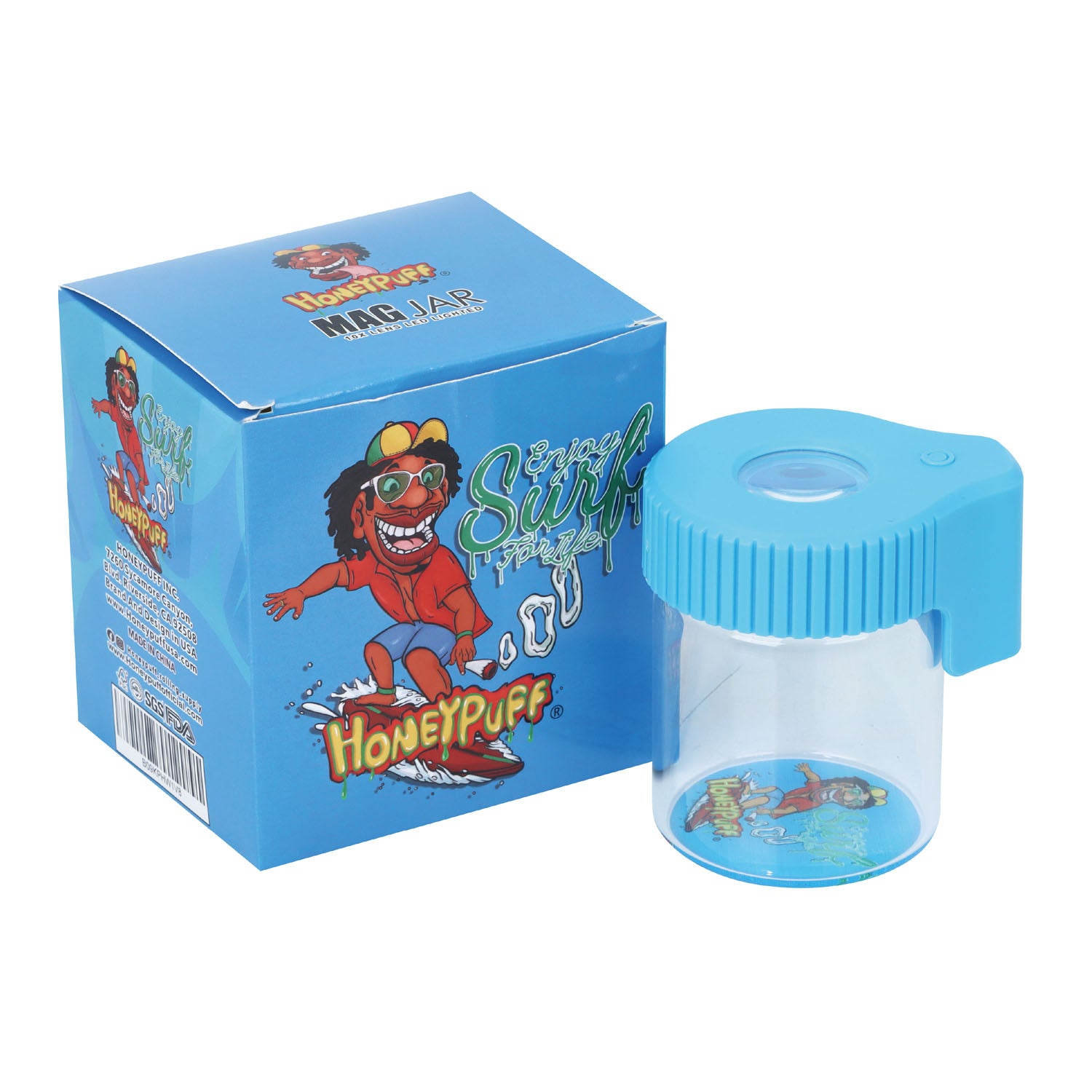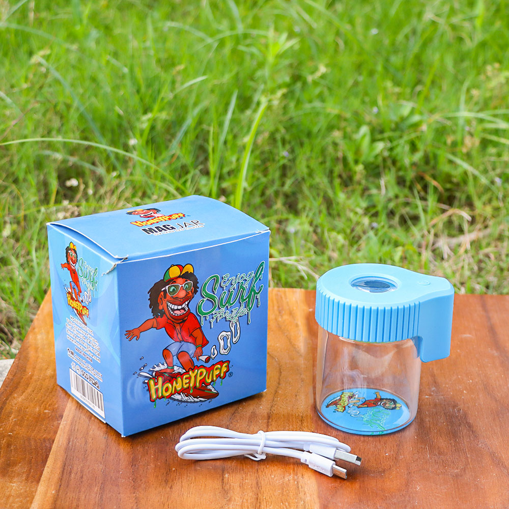 HONEYPUFF Light-Up Led Storage Jar, Air Tight & Magnifying View Jar, Blue Color Jar Lid, Rechargeable Glass Jar Container 155 ml