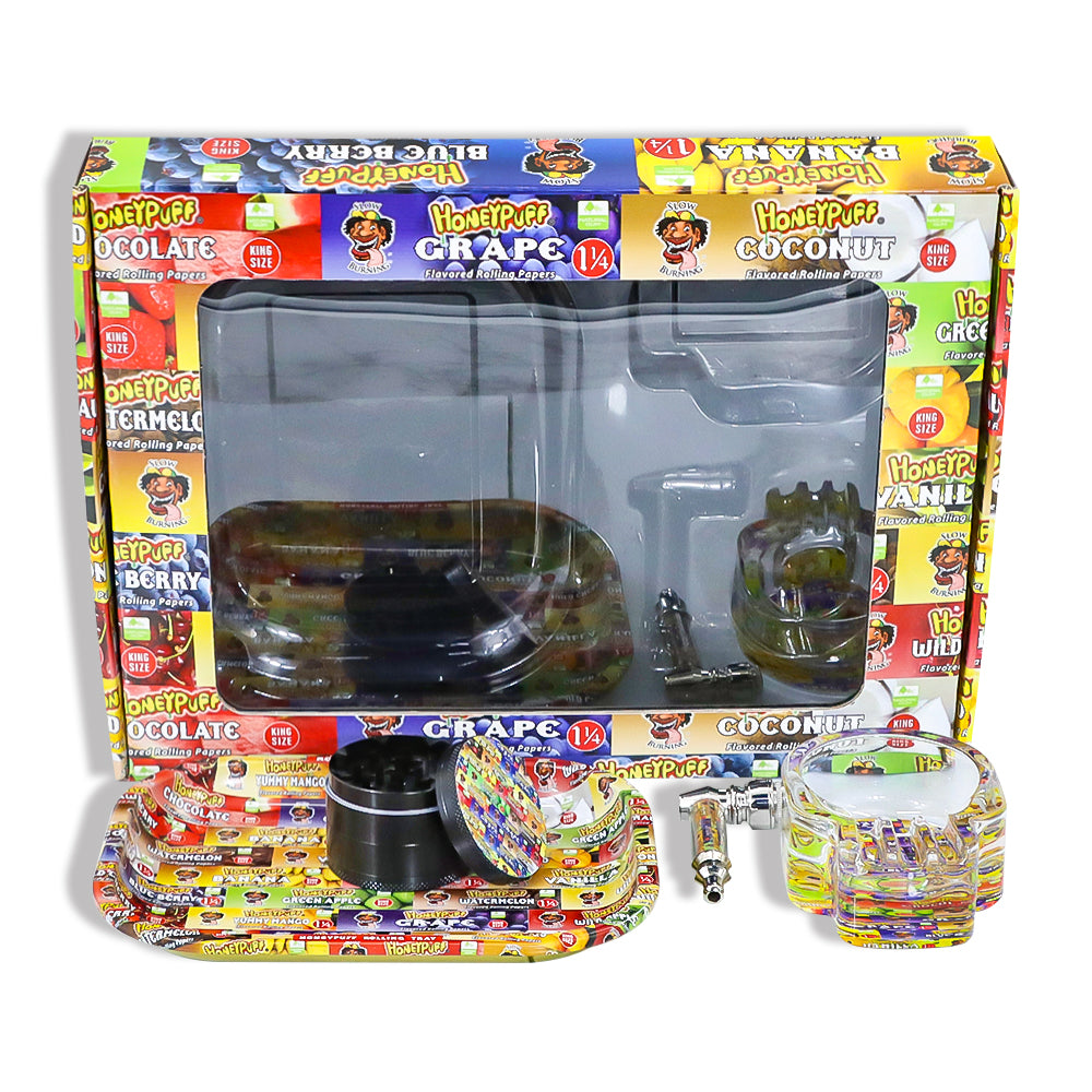 HONEYPUFF brand hot selling pipe zinc alloy grinder glass ashtray plate set cigarette store accessories