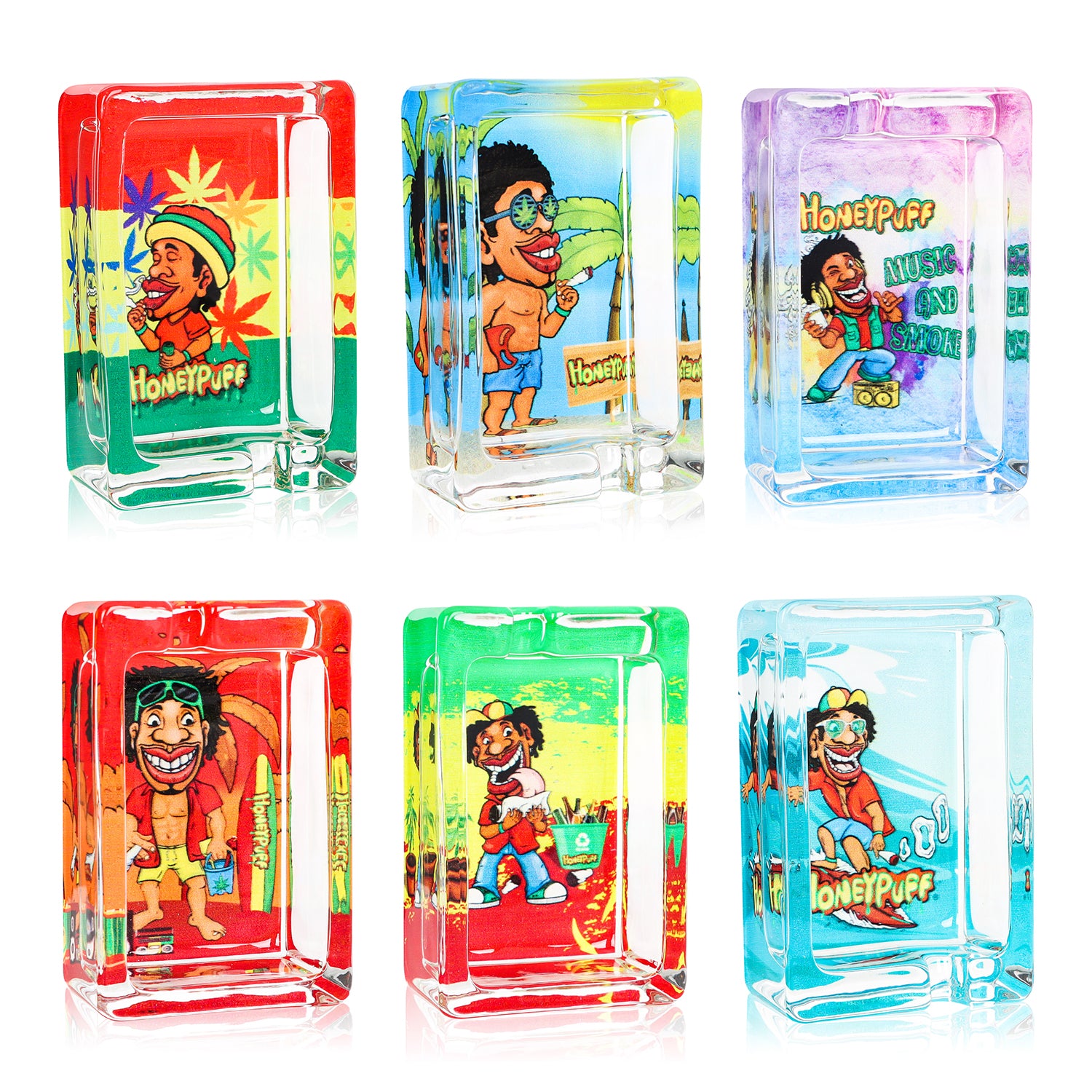 HONEYPUFF brand Mexican style square glass color design 86 * 57mm high-quality ashtray
