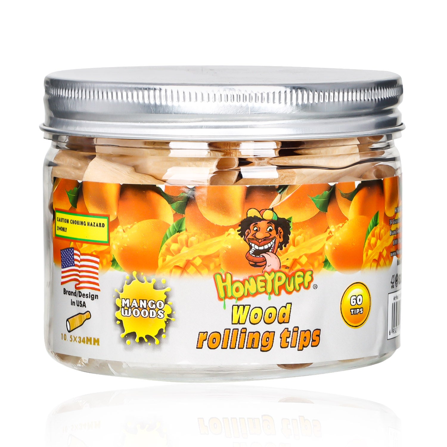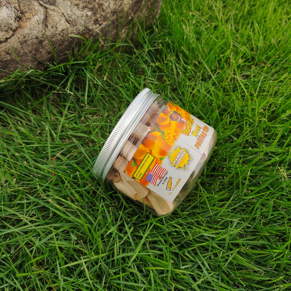 HONEYPUFF Mango Flavored Wood Rolling Filter Tips, 34 mm Cigarette Holder, 60 Tips / Jar