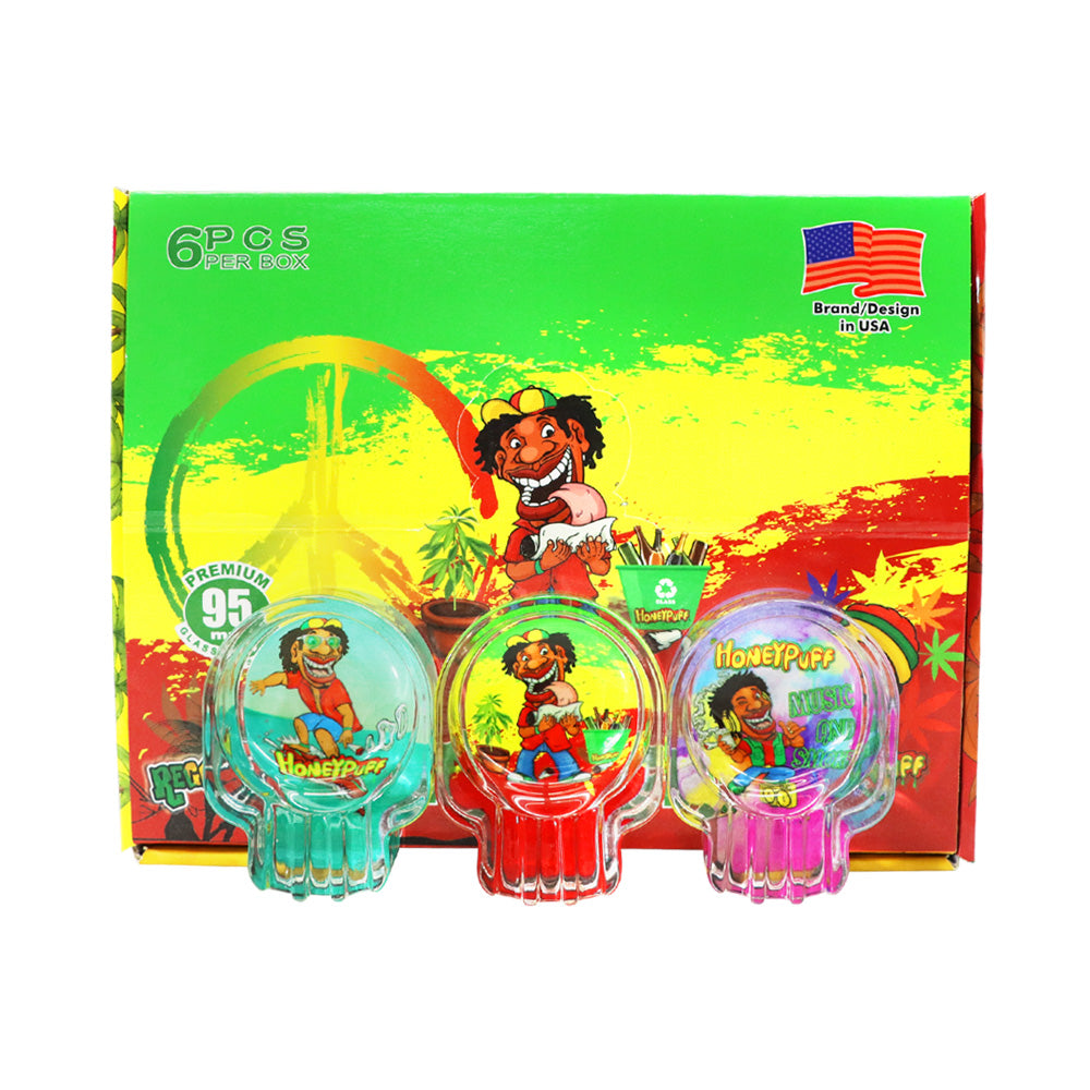HONEYPUFF decorated skull shape clear glass ashtray, 105*30mm portable round ashtray, desktop ashtray, smoking accessories