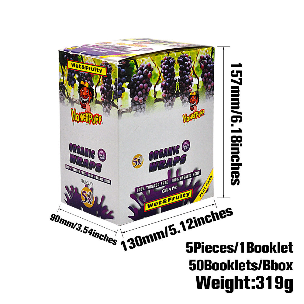 HONEYPUFF Grape Flavored Rolling Papers, King Size Cigarette Rolling Paper & Resealable Zip Pack, 5 Pieces / Pack 50 Packs / Box