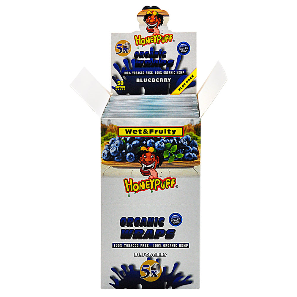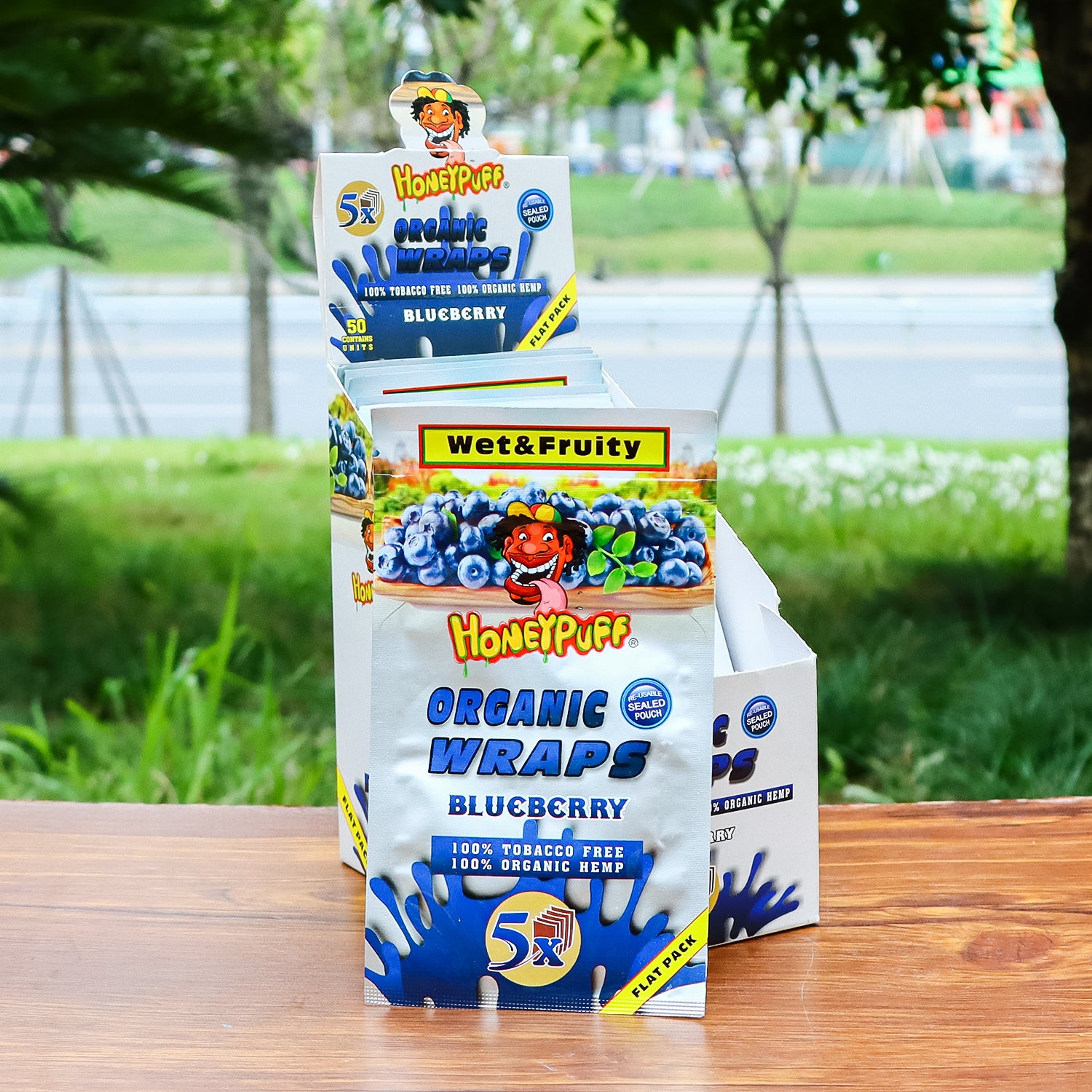 HONEYPUFF Blueberry Flavored Rolling Papers, King Size Cigarette Rolling Paper & Resealable Zip Pack, 5 Pieces / Pack 50 Packs / Box