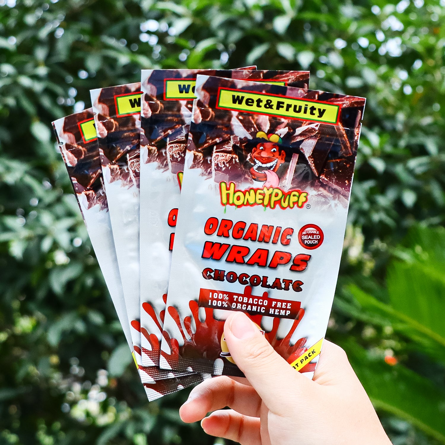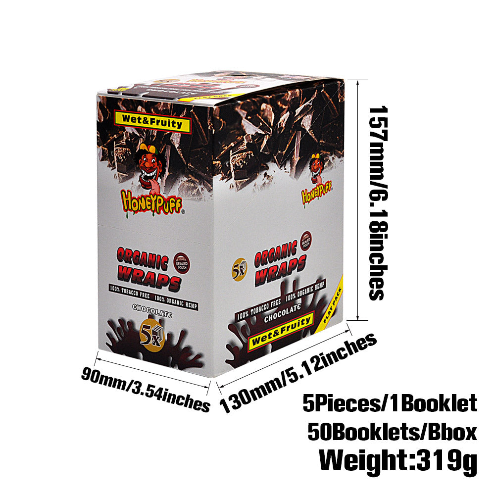 HONEYPUFF Chocolate Flavored Rolling Papers, King Size Cigarette Rolling Paper & Resealable Zip Pack, 5 Pieces / Pack 50 Packs / Box