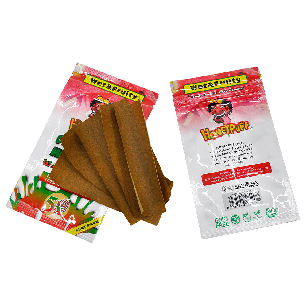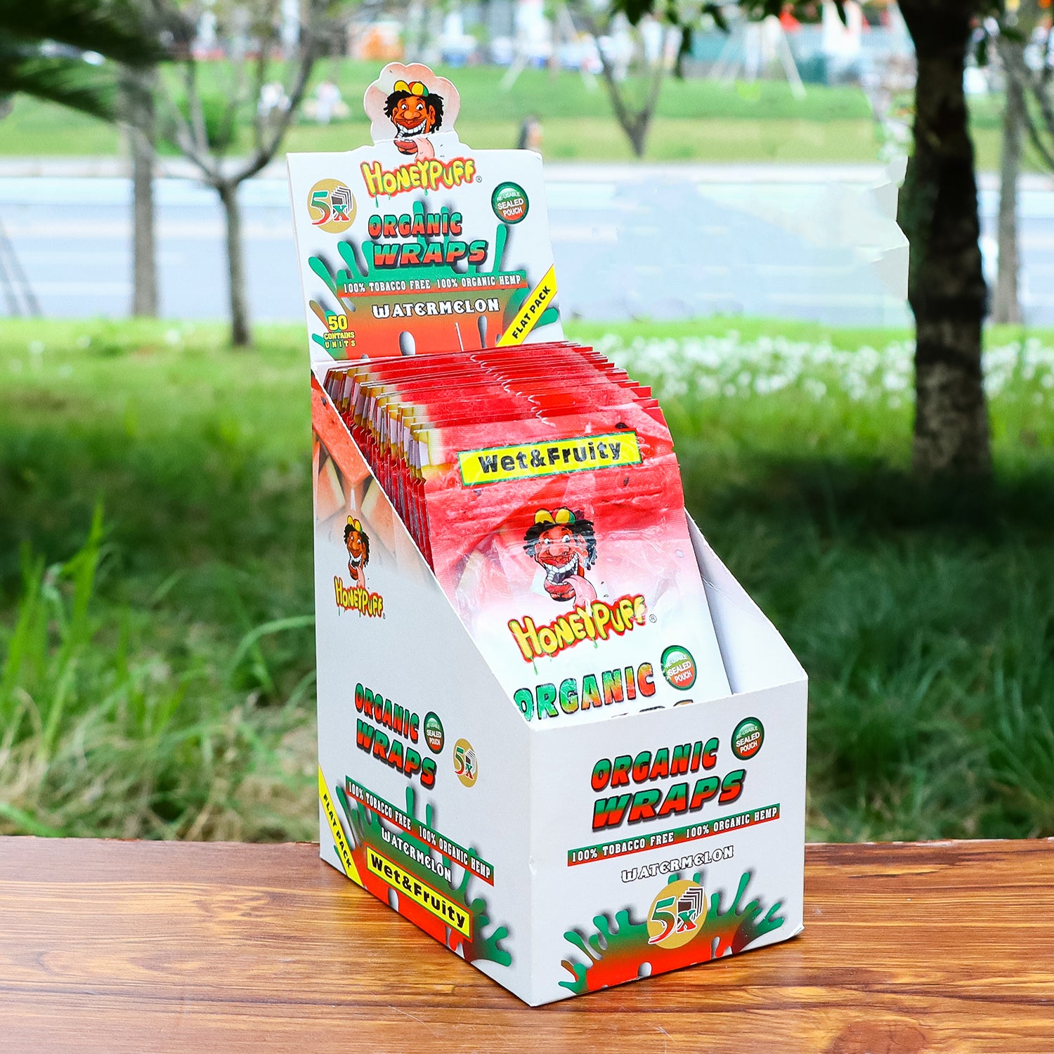 HONEYPUFF Watermelon Flavored Rolling Papers, King Size Cigarette Rolling Paper & Resealable Zip Pack, 5 Pieces / Pack 50 Packs / Box