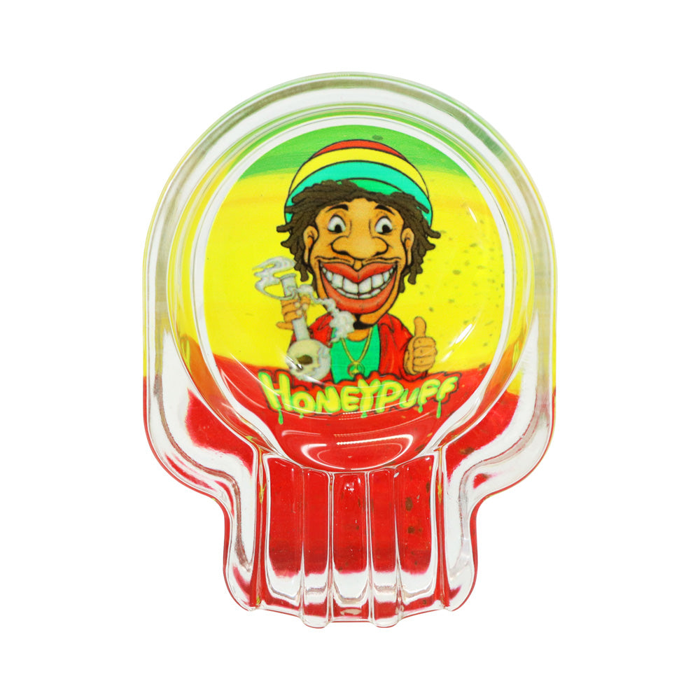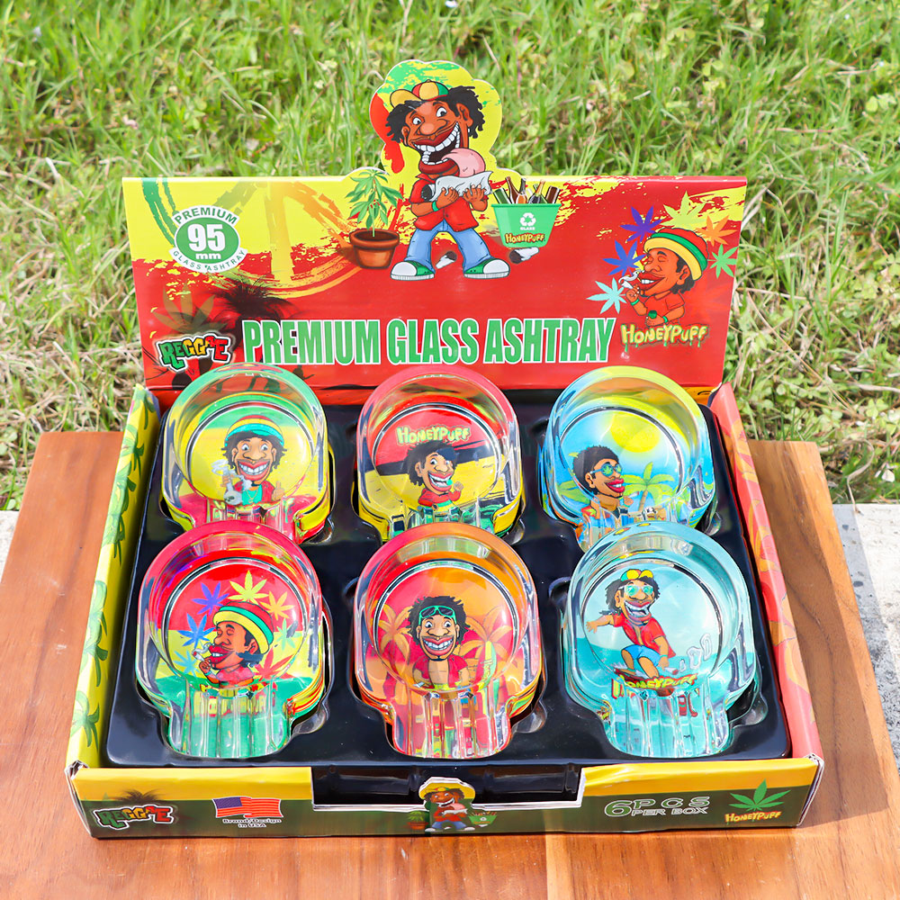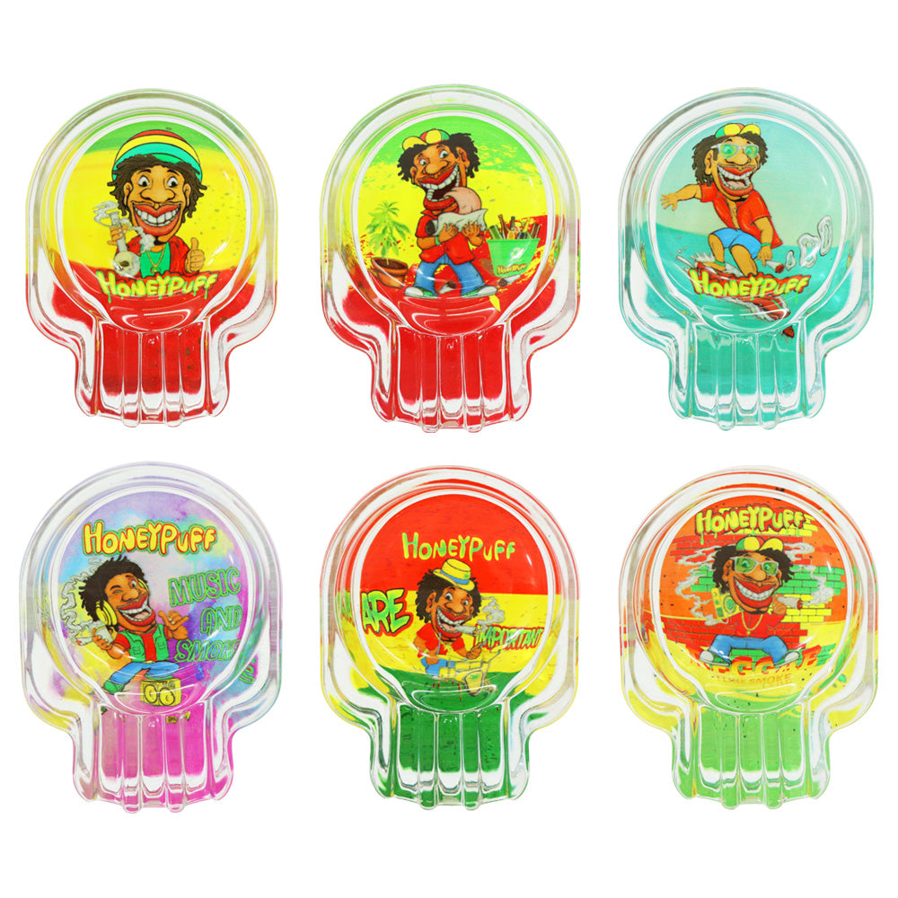 HONEYPUFF Skull Glass Ashtray, Three Cigarette Holders Ash Tray, Easy Clean Glass Cigarette Ashtray, 6 PCS