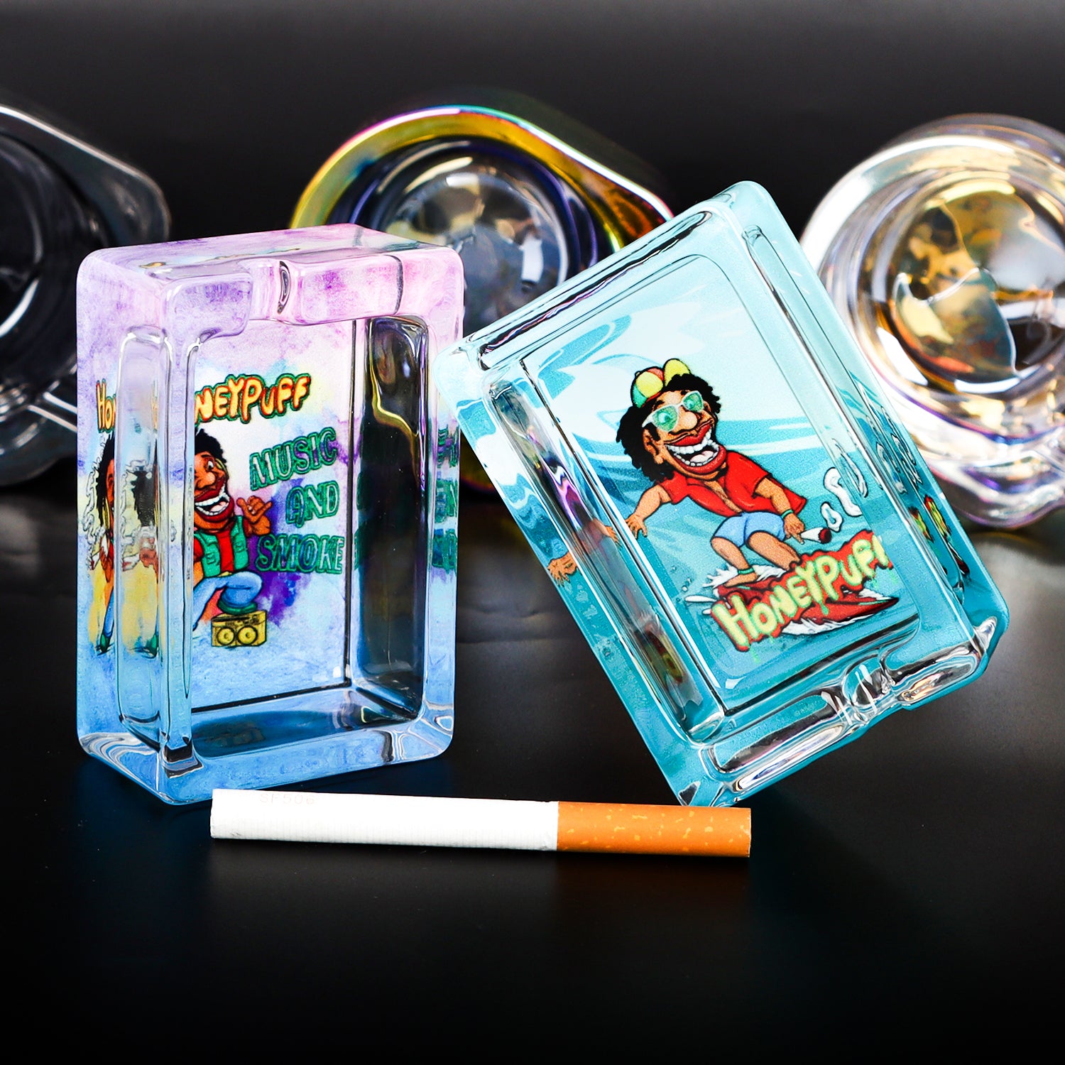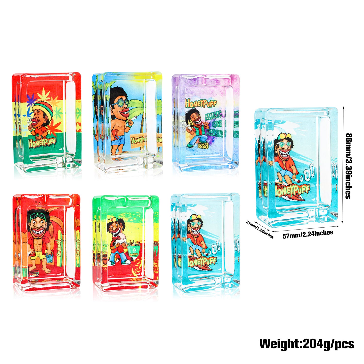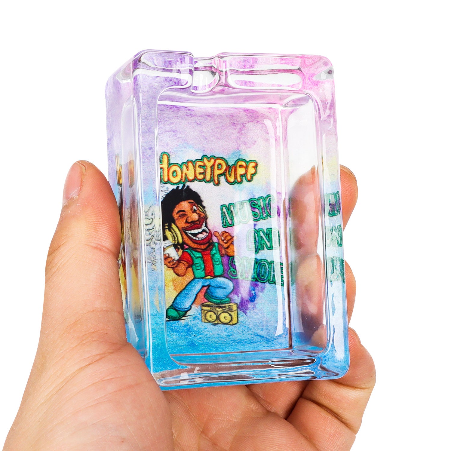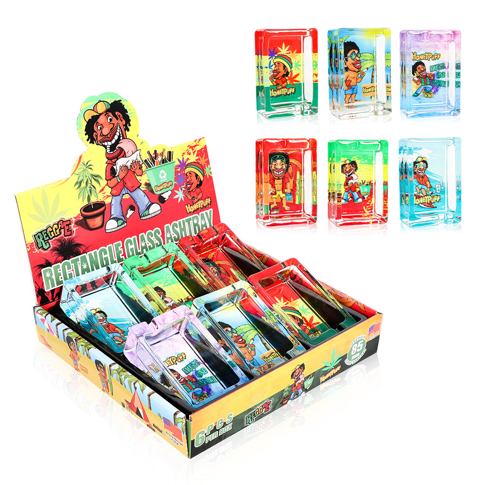 HONEYPUFF 86 mm Rectangle Shape Glass Ashtray, Decorative Ash Tray, Portable Cigarette Ashtray with Cigarette Holder