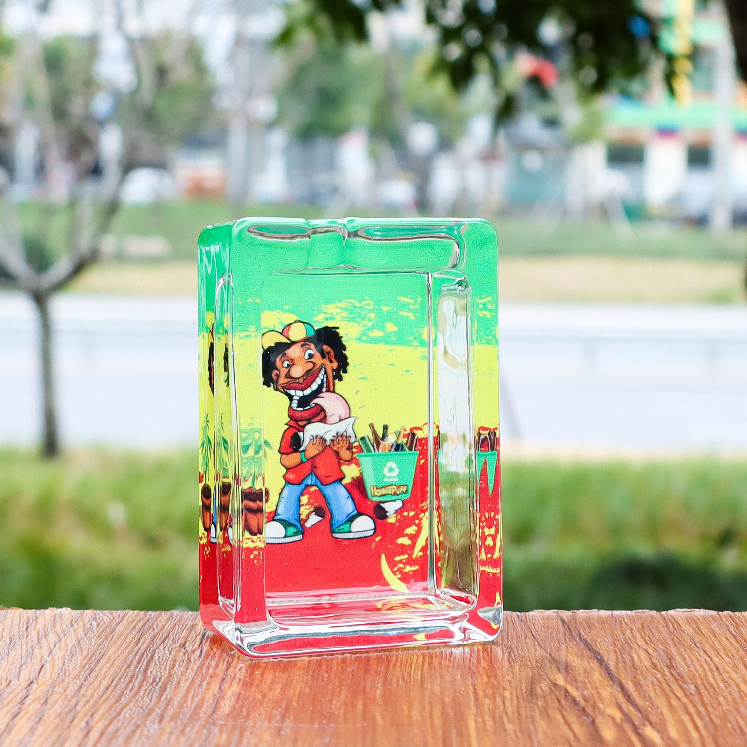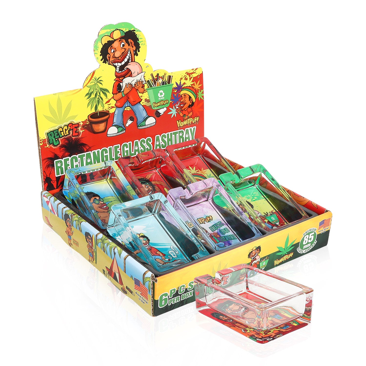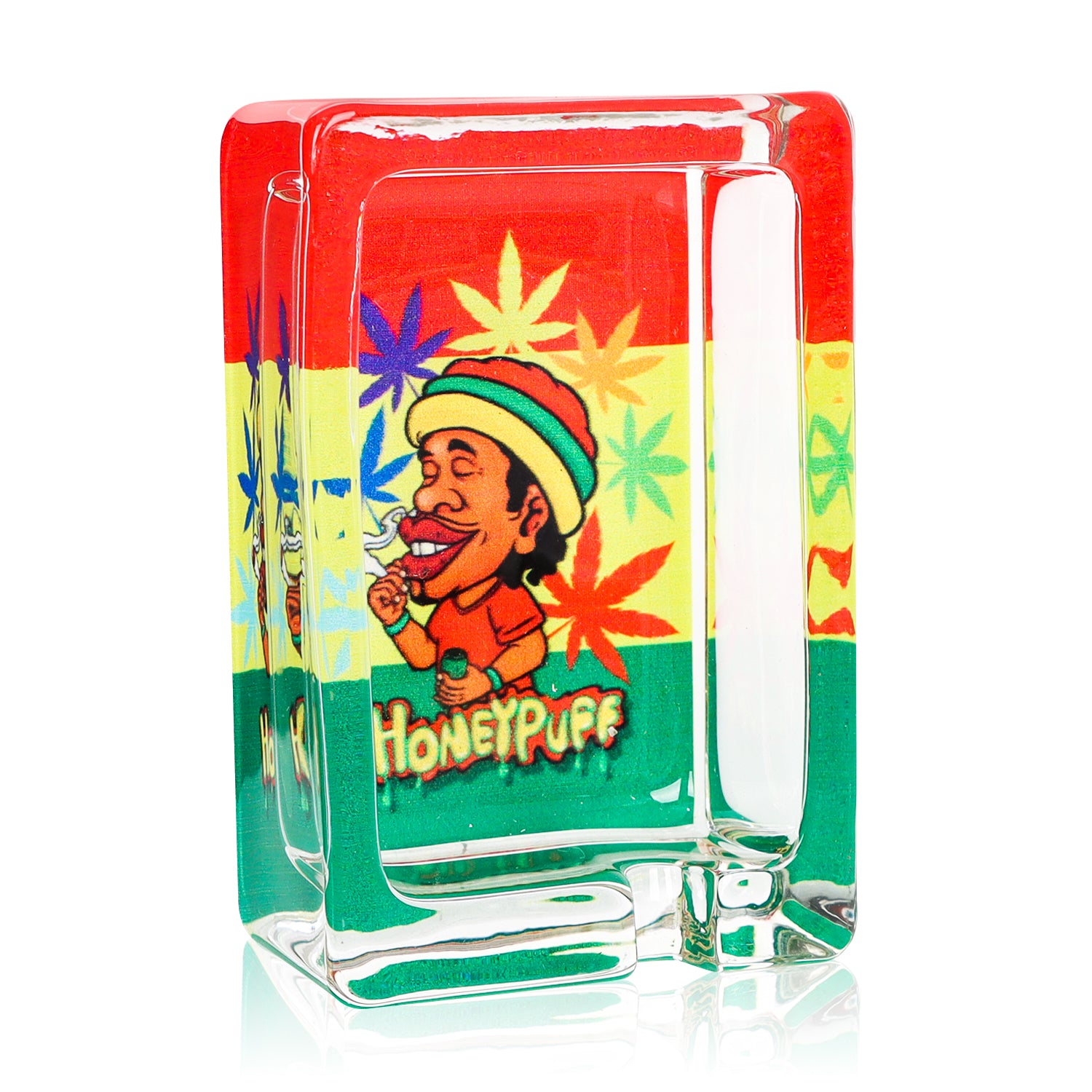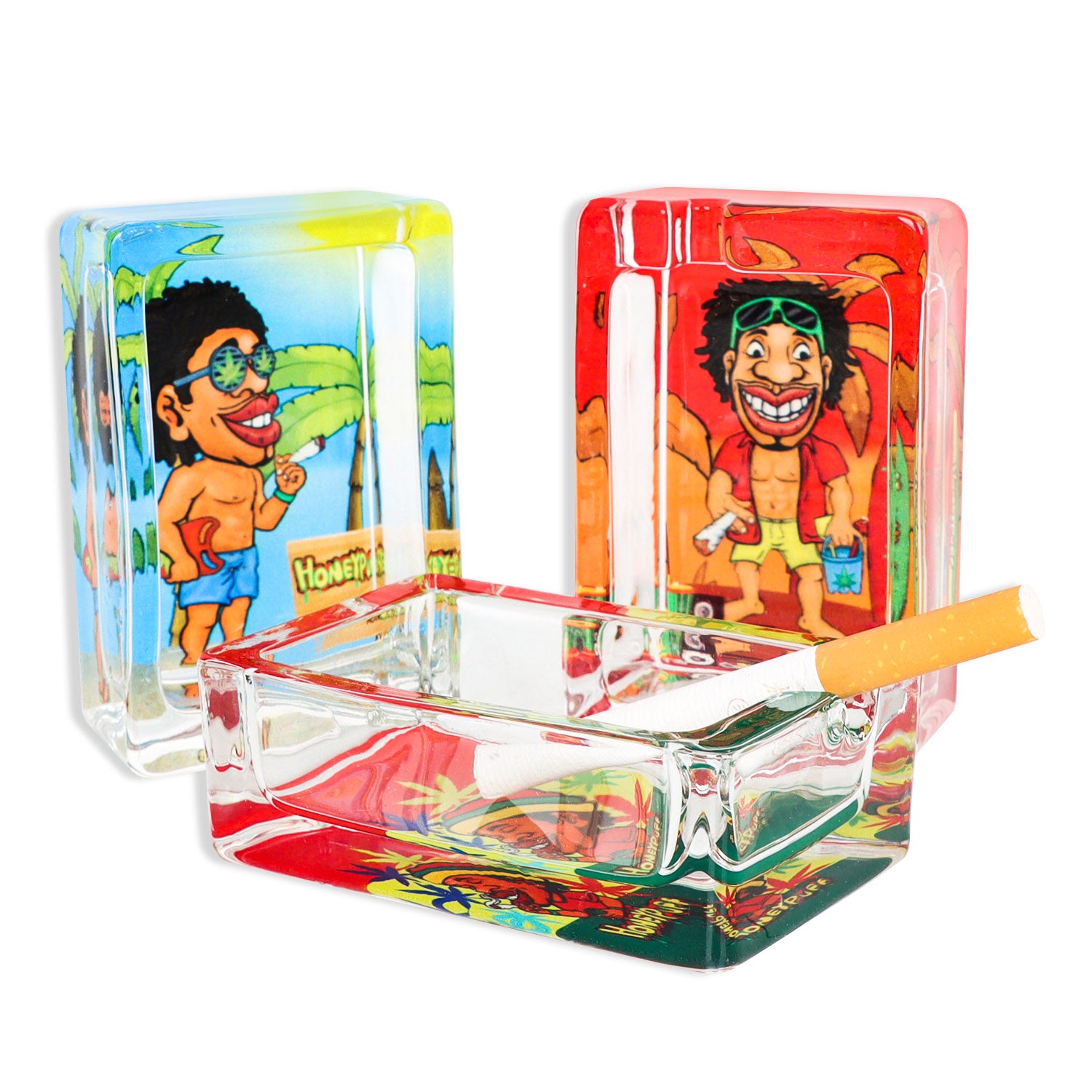 HONEYPUFF 86 mm Rectangle Shape Glass Ashtray, Decorative Ash Tray, Portable Cigarette Ashtray with Cigarette Holder