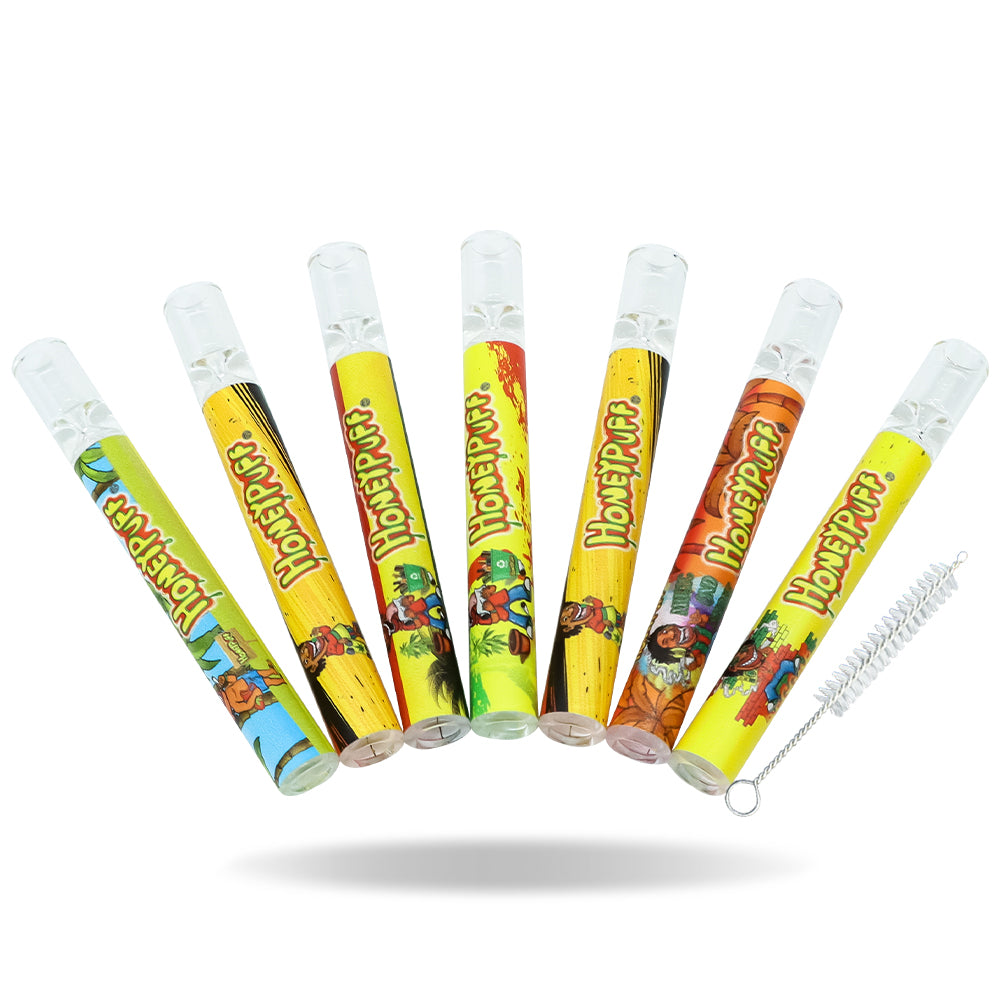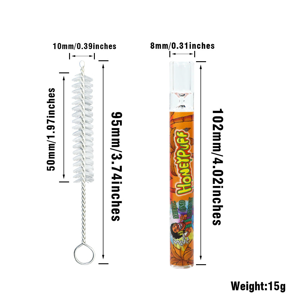 - [Perfect gift]: Interesting HoneyPuff paint in UV printing safty and high temperature resistance very firm and stable. It intersting paint in the glass tobacco pipe, make it identiy and increase intreasting of smoking experience. Good gift for family or friend. The compact size glass pipe is fit outside trips, famliy gatherings, office breaks.